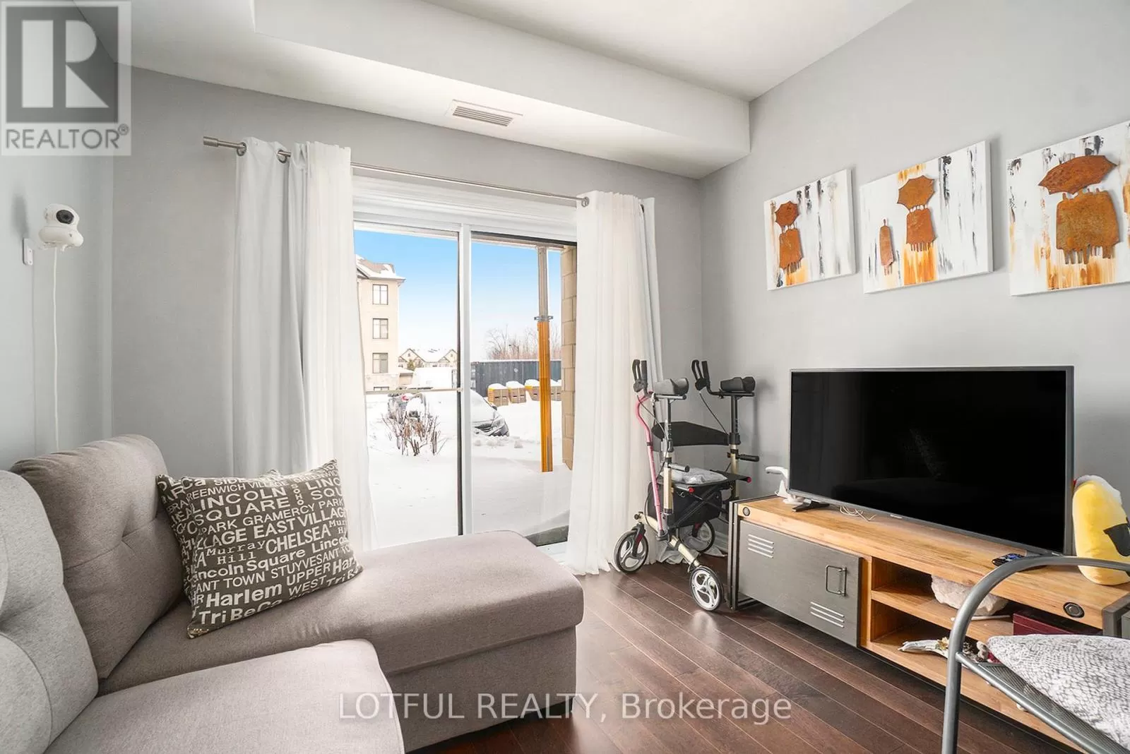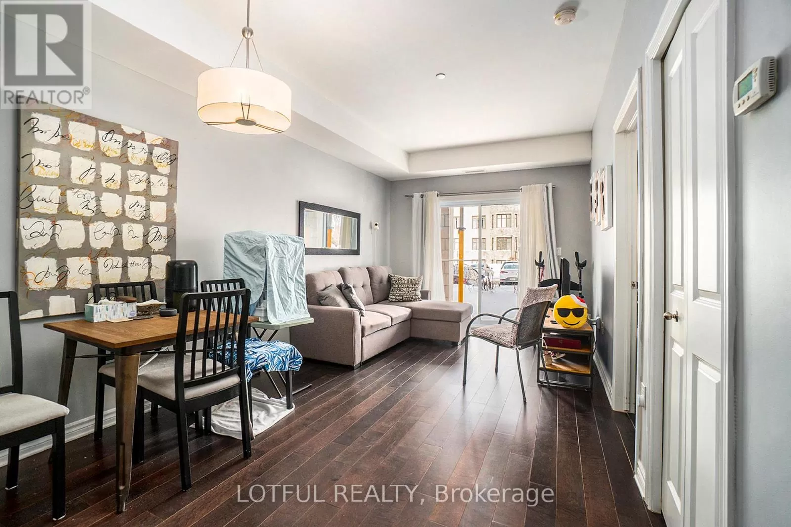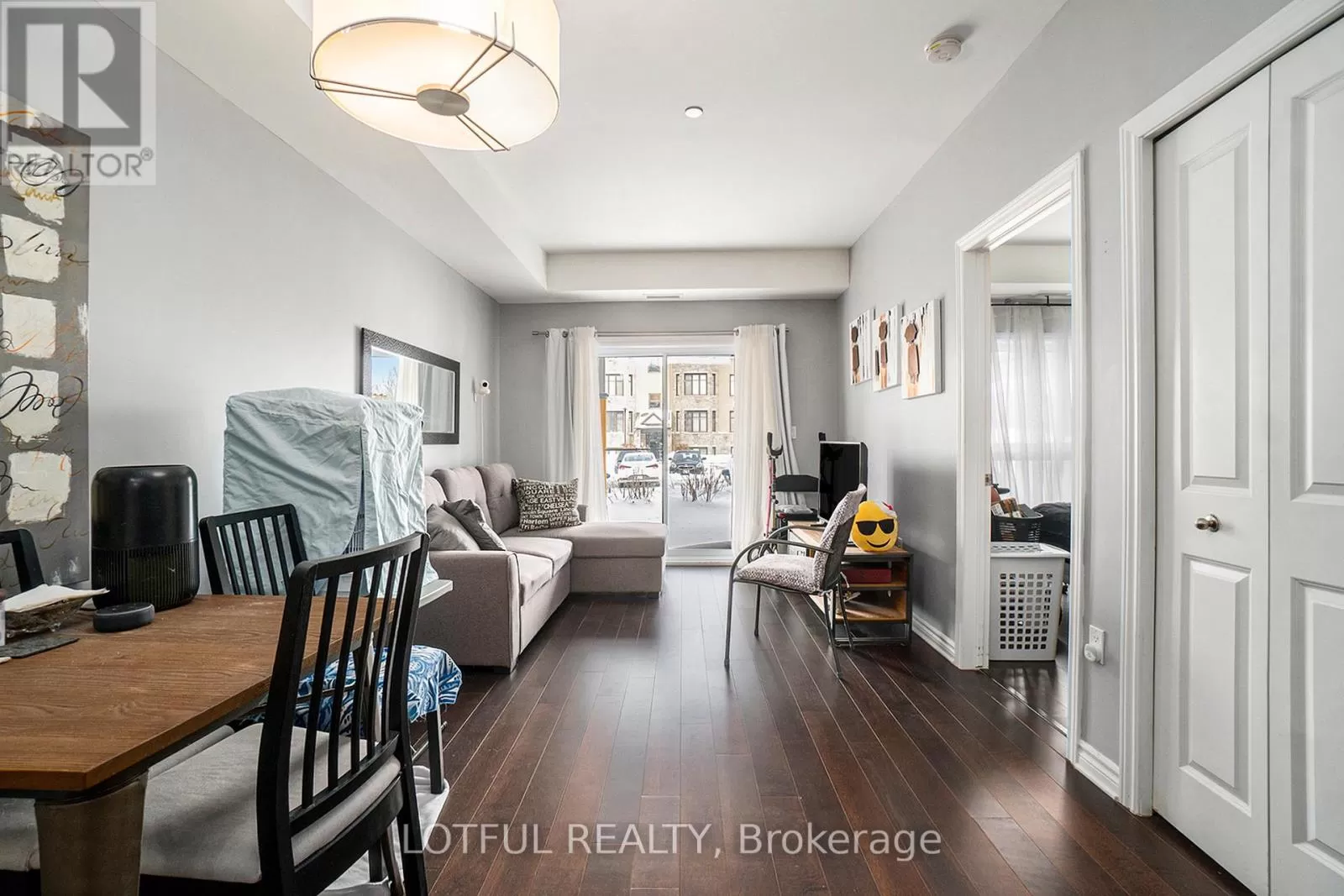 Cross Streets: Tenth Line - East on Jeanne D'Arc Blvd N. ** Directions: From Trim Rd turn left on North Service Rd, the left on Prestige Circle. Nestled near the Ottawa River in the prestigious community of Petrie's Landing, this elegant condo offers a sophisticated, maintenance-free lifestyle. Step into the luxurious lobby, where elevators await to take you to this sun-filled 1-bedroom + den retreat. Designed with an airy open-concept layout, this home features gleaming hardwood and ceramic flooring throughout. The stylish kitchen boasts granite countertops, stainless steel appliances, and ample cabinetry. The living and dining area is bathed in natural light, with sliding doors leading to a beautifully landscaped private patio perfect for relaxing or entertaining. The spacious primary bedroom offers a walk-in closet, while the versatile den serves as an ideal home office or guest space. A spa-like 4-piece bathroom impresses with a soaker tub and separate glass-enclosed shower. Additional conveniences include a dedicated parking space and storage locker. Enjoy an unbeatable location just steps from scenic trails, green spaces, and Petrie Islands waterfront. With all amenities nearby and the future LRT within close reach, downtown Ottawa is just a short 15-minute commute away (id:27476)
