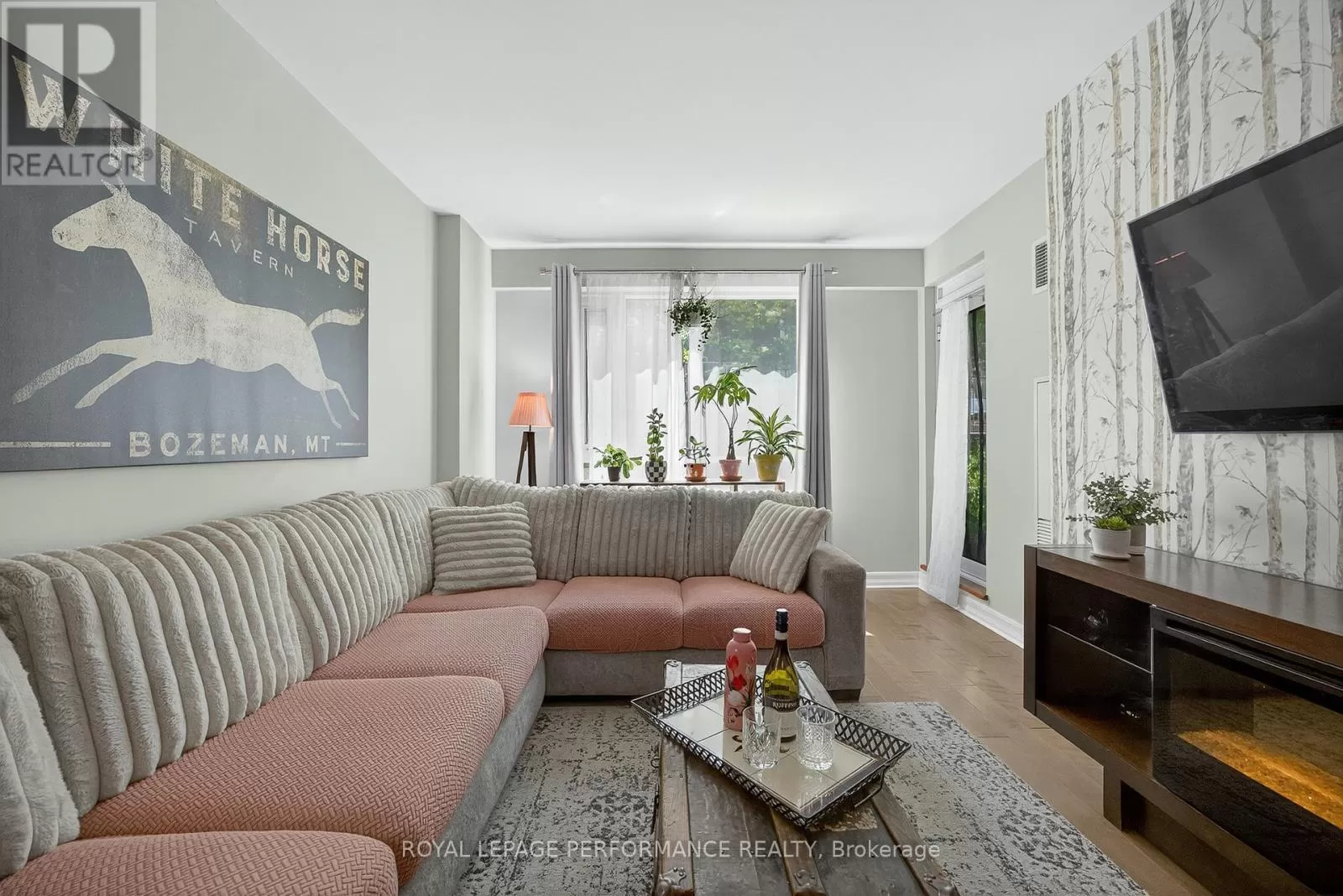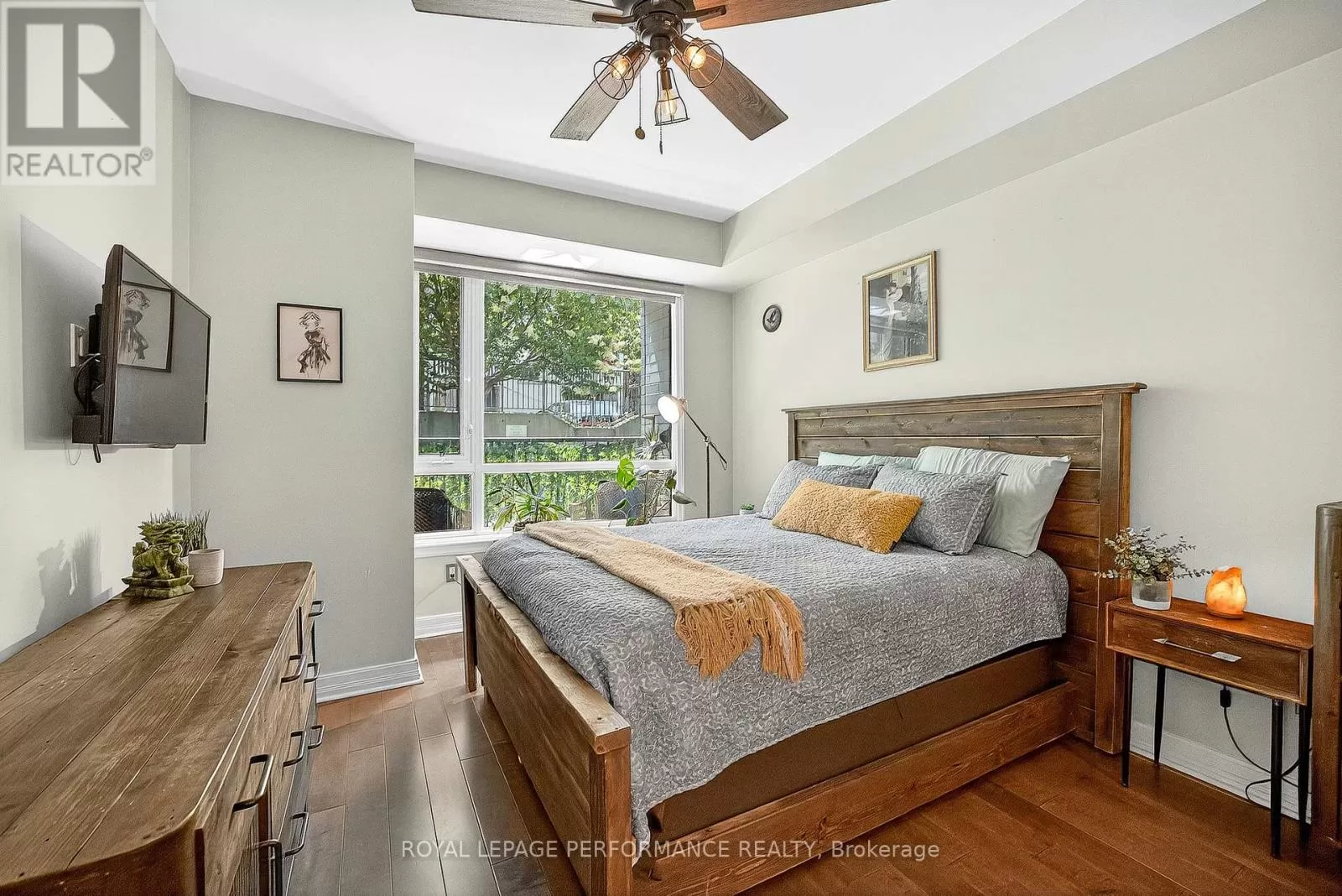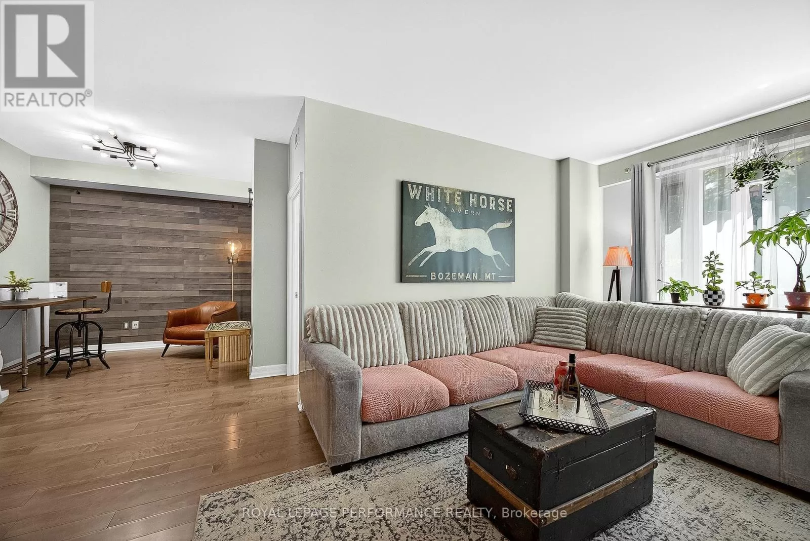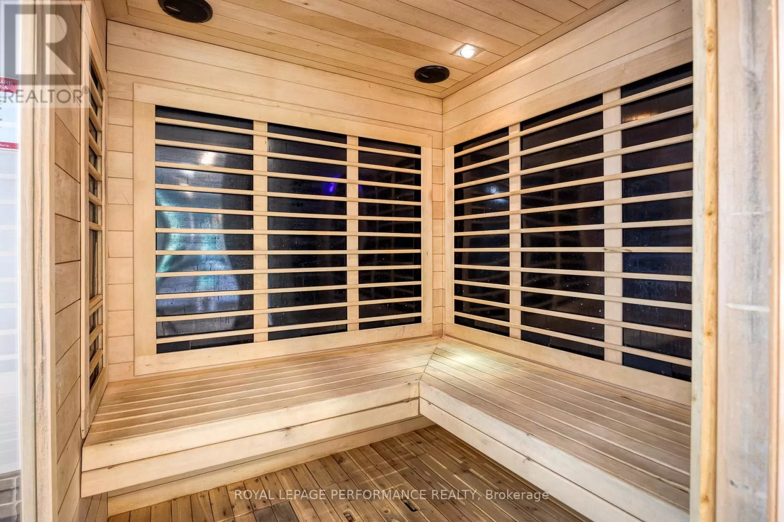 Cross Streets: Daly and Rideau. ** Directions: Rideau to Besserer. Rarely offered, this modern and elegant 2 BEDRM condo also has a large DEN, 2 FULL bathrooms, 2 INDR underground parking spots & a storage locker. Approx. 1135 sq ft as per Builder's plan. The owner has lovingly added modern upgrades to embrace natural elements into the space; brick facade added to the granite breakfast bar, wood panels in the den, Edison light fixtures and metal and wooden shelving etc. Hardwood flooring throughout and open concept layout. Kitchen features granite countertops, convenient double sink, stainless steel appliances and hidden pantry. Full sized ,newer LG washer and dryer that offers durability while being quiet. Primary Bedrm has a wall of windows with views of the terrace, 2 sets of closet space and a 4 pc ensuite bathrm with a separate shower area. Have a roommate or a guest? 2nd bedroom also has a wall of windows with views of the terrace, & great closet space. Gym and sauna /lounge area on the 2nd floor. Parking P1-7, P1-3. Storage S4-20. Walking distance to grocery stores, LCBO, LRT etc. This building allows for pets - with some restrictions on size. Security - on site.This prime location is perfect for those who love the energy of being downtown. This unit has a walking score of= 99. Transit score =91, Bike Score =97. (id:27476)