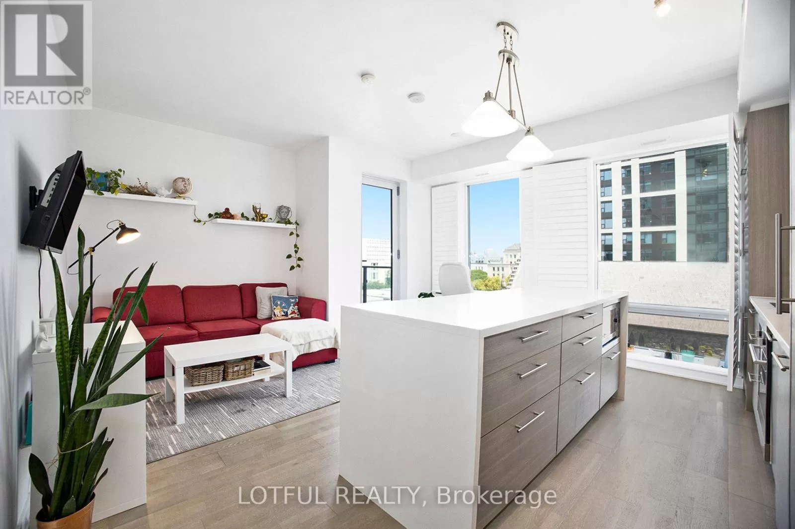 Cross Streets: Sparks and Bronson. ** Directions: 417 exit north on Bronson, turn right on Queen. Building at the corner of Queen, Bronson and Sparks Street. Just one block from the Queen Street LRT, this executive-style one-bedroom suite offers the perfect blend of luxury and convenience. Nestled in the prestigious Cathedral Hill, this residence boasts upscale finishes, including engineered hardwood, stunning ceramics, and chic, elegant cabinetry. The modern kitchen features Energy Star appliances, an under-counter microwave, a sleek hood fan, a stylish backsplash, and a versatile island ideal for cooking and entertaining. Floor-to-ceiling windows, adorned with California blinds, bathe the unit in natural light, while the spacious bedroom offers a generous closet. Enjoy breathtaking east-facing views, with reflected sunlight brightening the space throughout the day and a front-row seat to Canada Day fireworks! Unmatched amenities include a state-of-the-art fitness center, concierge service, guest suites, a party room, a dog wash station, and more. Secure underground parking and a storage locker complete this exceptional offering. Steps from Ottawa's finest riverfront, canal paths, and historical landmarks this is urban living at its finest. (id:27476)