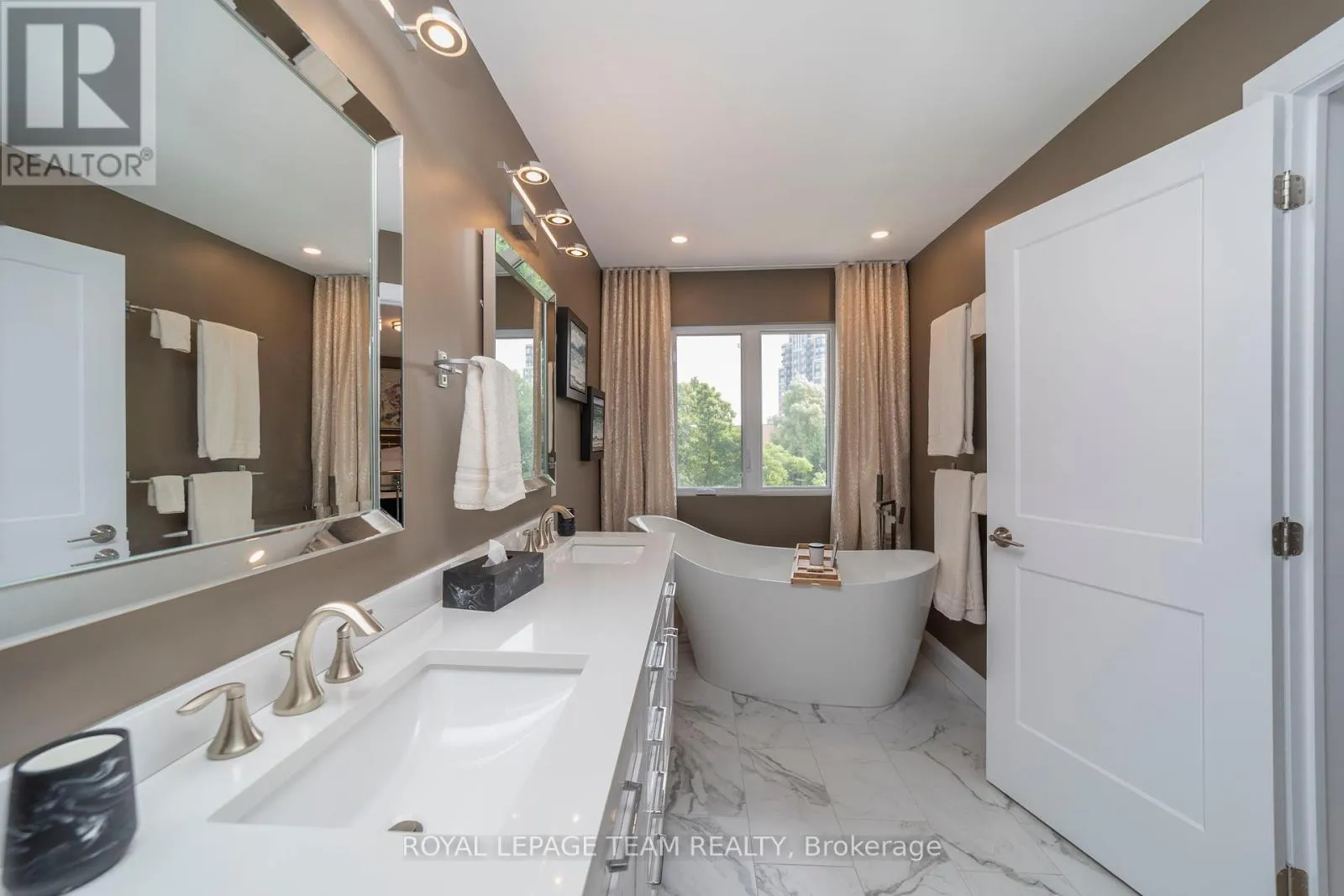 Cross Streets: Woodroffe & Richmond Rd. ** Directions: Woodroffe closed until Dec.22nd. Access available either via Richmond Rd. then right into Poolarama parking lot. Take temporary through fair into Woodroffe North neighborhood. Right at Saunders to Aylen OR access via Parkway. Stunning, spacious & bright, custom-built semi-detached on a premium 166 ft deep lot. This property offers 3,350 sq/ft of finished space, including an impressive open-concept main level w/ample windows on two sides & high ceilings. The thoughtfully designed floorplan offers ample living & entertainment space, w/a coffee/wine bar tucked off the kitchen for added convenience. Offering four bedrooms + four bathrooms, a fully finished walk-out basement (includes a bar rough-in) and a covered extended patio w/heater...the perfect space for outdoor relaxation! A generous east-facing raised deck off the main living area and a sunny west-facing balcony offer added options for outdoor enjoyment. Additional features of this exceptional property include a primary retreat w/walk-in closet & ensuite bath, convenient second-level laundry w/handy built-ins, radiant heated floors, a BBQ hook-up, an elegant gas fireplace w/granite surround, low maintenance gardens & a custom shed. The home is nestled in a quiet pocket, just a short stroll to transit (coming LRT) & the Ottawa River Parkway, providing quick access to cycling/walking paths, cross-country skiing/snowshoeing, downtown Ottawa & Gatineau. (id:27476)