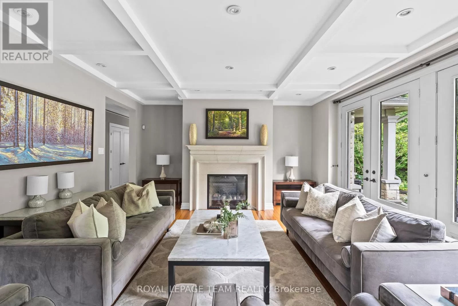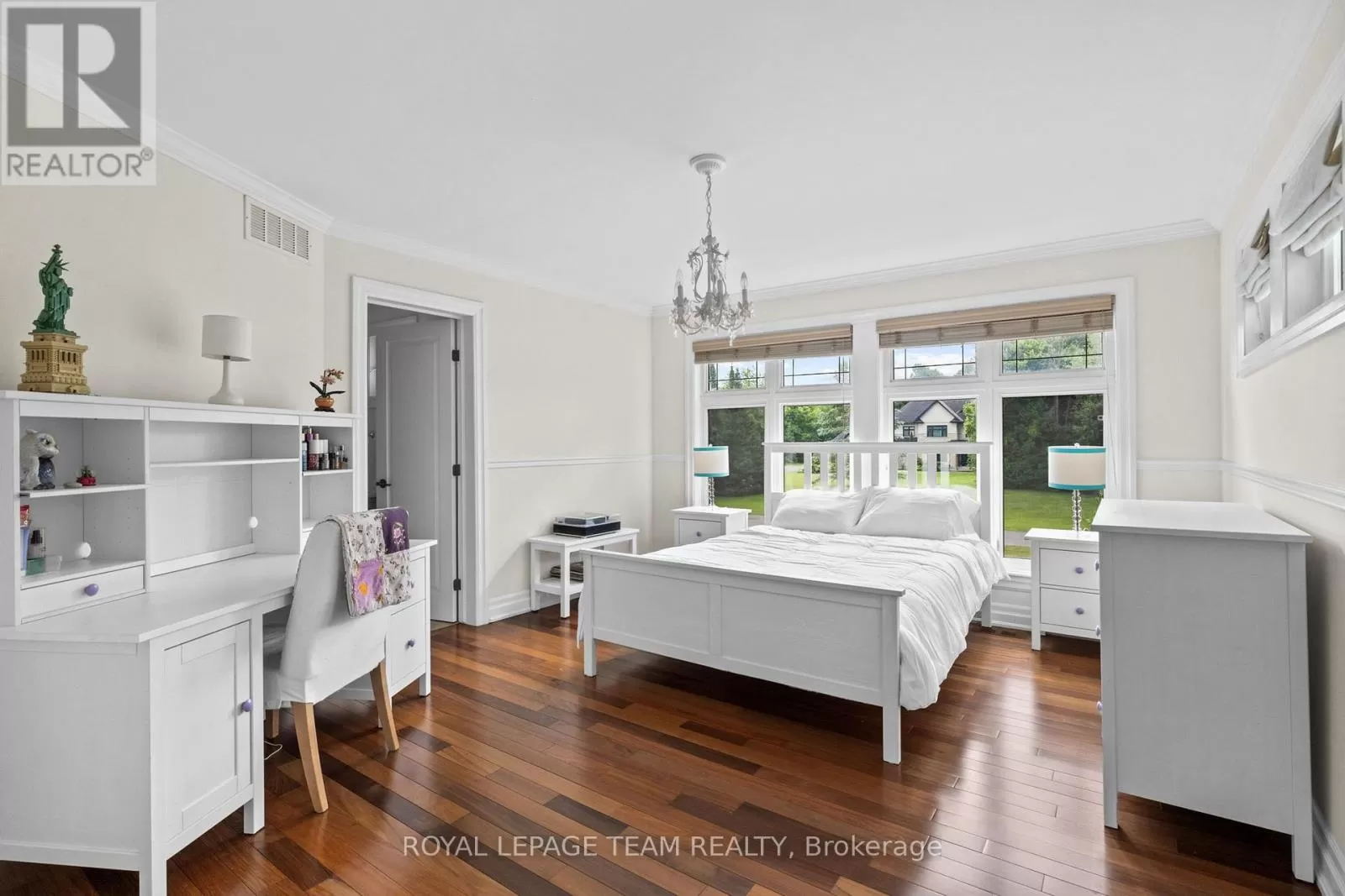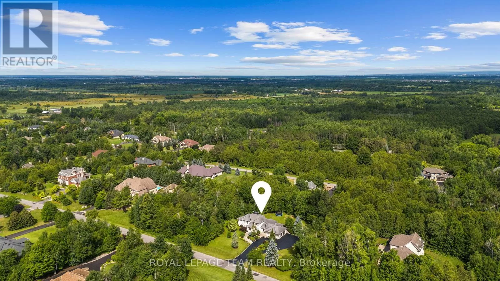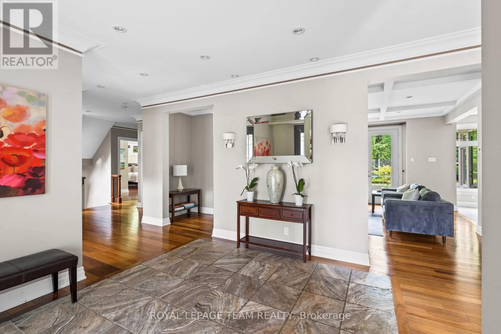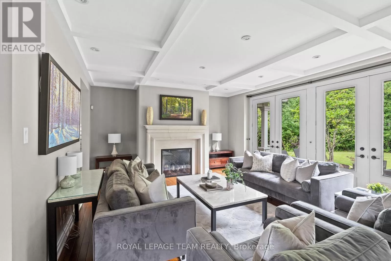 Cross Streets: Dozois Road. ** Directions: From Mitch Owen Road, turn onto Dozois Rd. Turn left onto Longshadow St. Longshadow St turns left and becomes Longhearth Way. Nestled in the South Point community of Manotick, this beautifully designed family home is set on an approximately 1.3-acre lot, offering both privacy and convenient access to boutique shops, restaurants, and cafés in the charming village of Manotick. The spacious layout boasts hardwood floors on the main and second levels, elegant mouldings, a living room enhanced by a coffered ceiling and natural gas fireplace, and a formal dining room well suited to family gatherings. The kitchen opens to the breakfast room and is appointed with custom cabinetry, granite countertops, a centre island, and a Butlers pantry. A wall of windows fills the space with natural light, creating a bright and welcoming atmosphere. A main-level office offers a quiet, dedicated space for working from home. The primary bedroom is privately located on the main floor and includes a walk-in closet and a well-appointed five-piece ensuite. Upstairs, three additional bedrooms and two full bathrooms, including one ensuite, provide comfortable accommodations for family and guests. The lower level expands the living space with a large recreation room, a full bathroom, a bedroom, and a flexible room in the finished design. Completing the property is a serene outdoor living space that includes a screened-in porch, ideal for quiet moments overlooking mature trees and a peaceful backyard. The exterior patio offers a comfortable setting for alfresco dining or gathering with friends, surrounded by landscaped gardens and natural greenery. (id:27476)