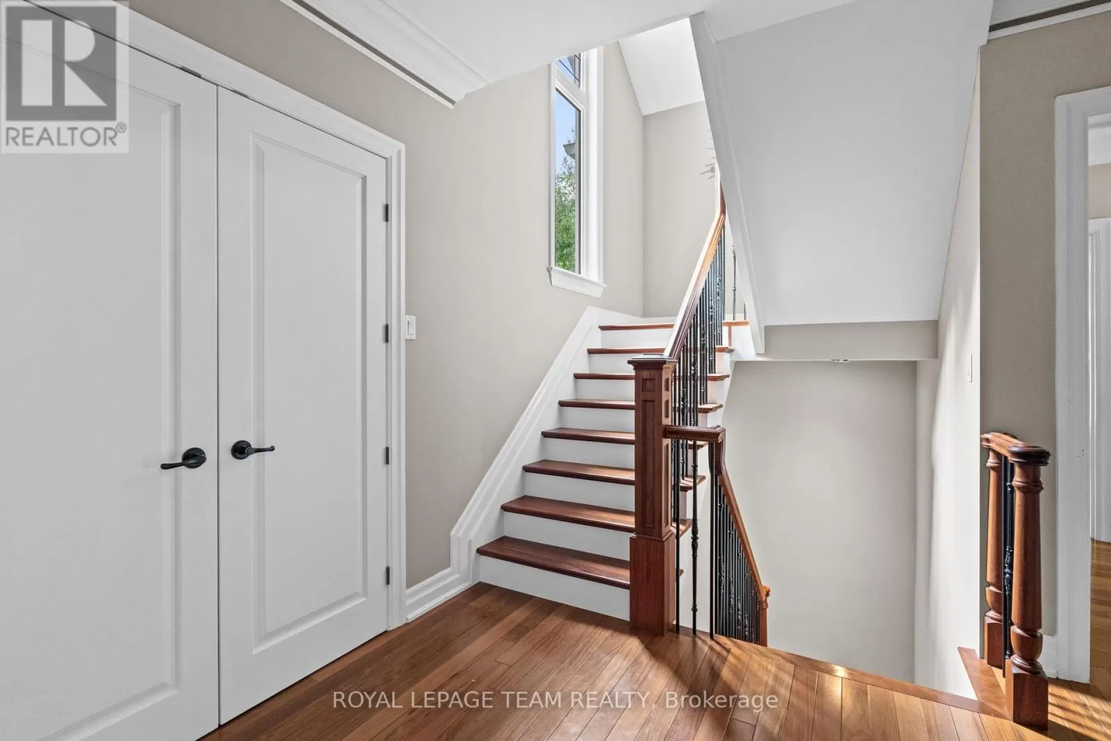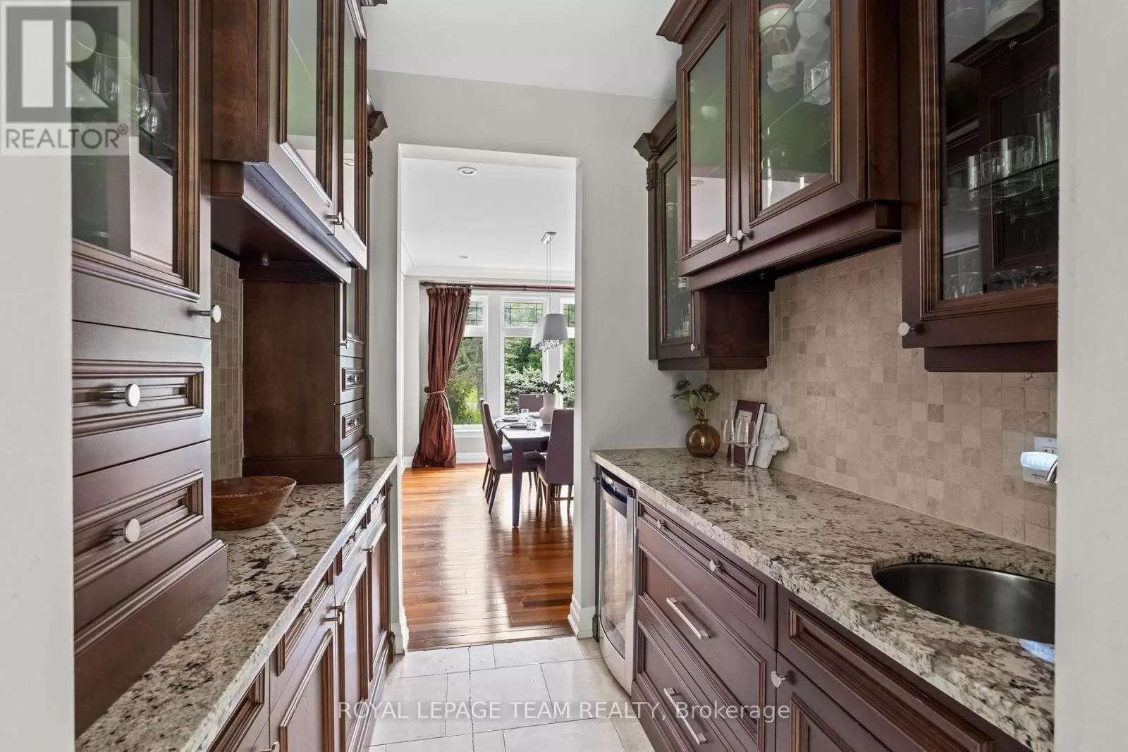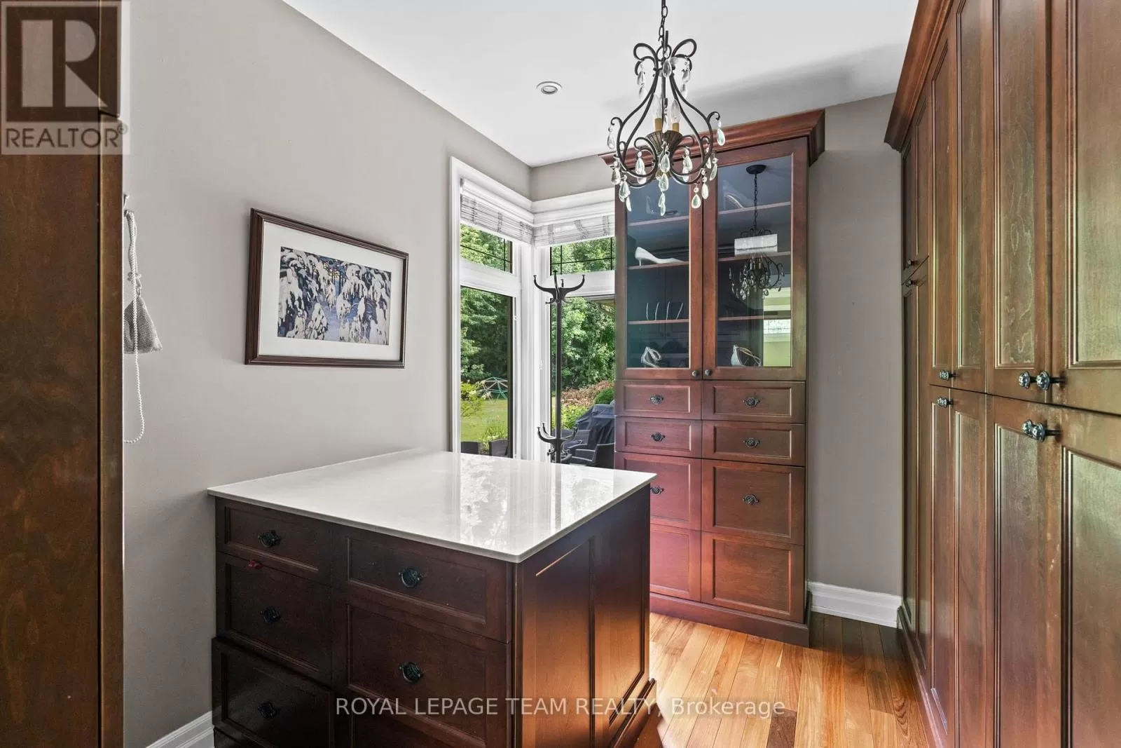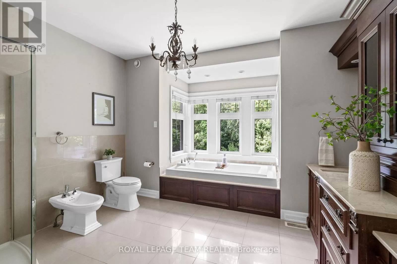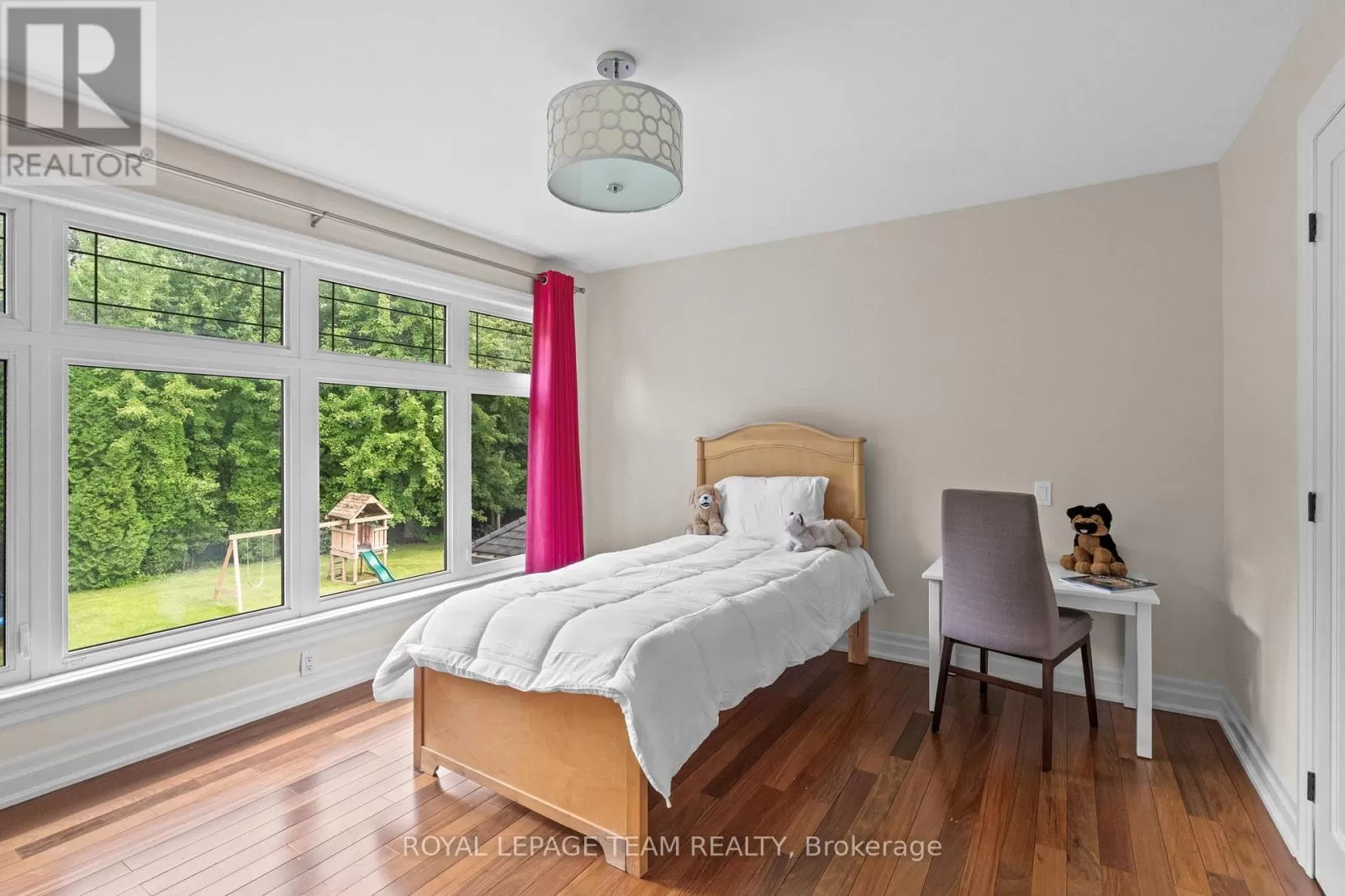 Cross Streets: Dozois Road. ** Directions: From Mitch Owen Road, turn onto Dozois Rd. Turn left onto Longshadow St. Longshadow St turns left and becomes Longhearth Way. Nestled in the South Point community of Manotick, this beautifully designed family home is set on an approximately 1.3-acre lot, offering both privacy and convenient access to boutique shops, restaurants, and cafés in the charming village of Manotick. The spacious layout boasts hardwood floors on the main and second levels, elegant mouldings, a living room enhanced by a coffered ceiling and natural gas fireplace, and a formal dining room well suited to family gatherings. The kitchen opens to the breakfast room and is appointed with custom cabinetry, granite countertops, a centre island, and a Butlers pantry. A wall of windows fills the space with natural light, creating a bright and welcoming atmosphere. A main-level office offers a quiet, dedicated space for working from home. The primary bedroom is privately located on the main floor and includes a walk-in closet and a well-appointed five-piece ensuite. Upstairs, three additional bedrooms and two full bathrooms, including one ensuite, provide comfortable accommodations for family and guests. The lower level expands the living space with a large recreation room, a full bathroom, a bedroom, and a flexible room in the finished design. Completing the property is a serene outdoor living space that includes a screened-in porch, ideal for quiet moments overlooking mature trees and a peaceful backyard. The exterior patio offers a comfortable setting for alfresco dining or gathering with friends, surrounded by landscaped gardens and natural greenery. (id:27476)