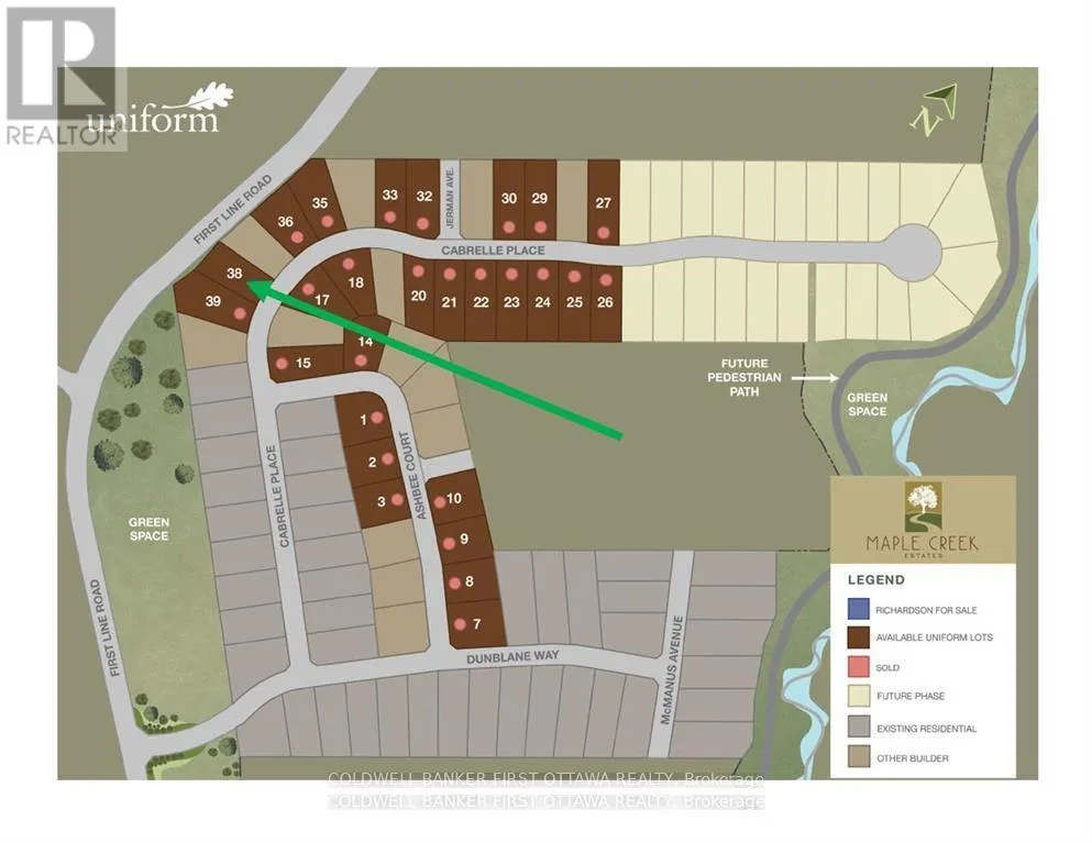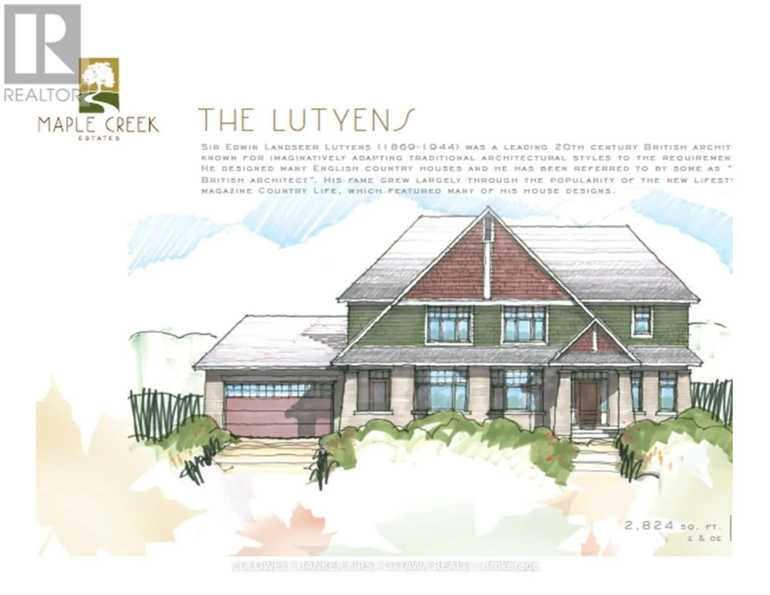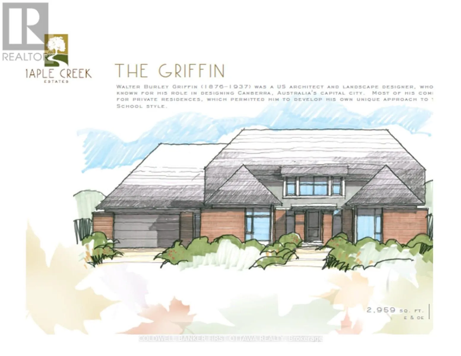 First Line to Dunblane to Cabrelle Place LET US BUILD YOUR DREAM HOME HERE ON THE LAST REMAINING LOT AVAILABLE FROM UNIFORM HOMES IN MAPLE CREEK ESTATES! BUILDER CAN BUILD FROM A VARIETY OF PLANS - ONE OR TWO STOREY HOME ALL BARRY HOBIN DESIGNED. This price is for a 3 bedroom + den bungalow. This Barry Hobin design features 2926SF of architecturally refined living space including 3 bedrooms, 4 bathrooms, main floor den and a stunning open concept kitchen and great room that is sure to serve as the hub of the home. Timeless finishes include hardwood floors, quartz countertops, upgraded millwork, modern rails and spindles and much, much more. A 4 car garage offers plenty of versatility and a 97 x 233 foot lot with no rear neighbors brings the serenity of Manotick right to your back door. DESIGNED BY HOBIN, BUILT BY UNIFORM AND PERFECTED BY YOU! TARION warranty, buyer may select all finishes. Please inquire re: available floorplans. (id:27476)