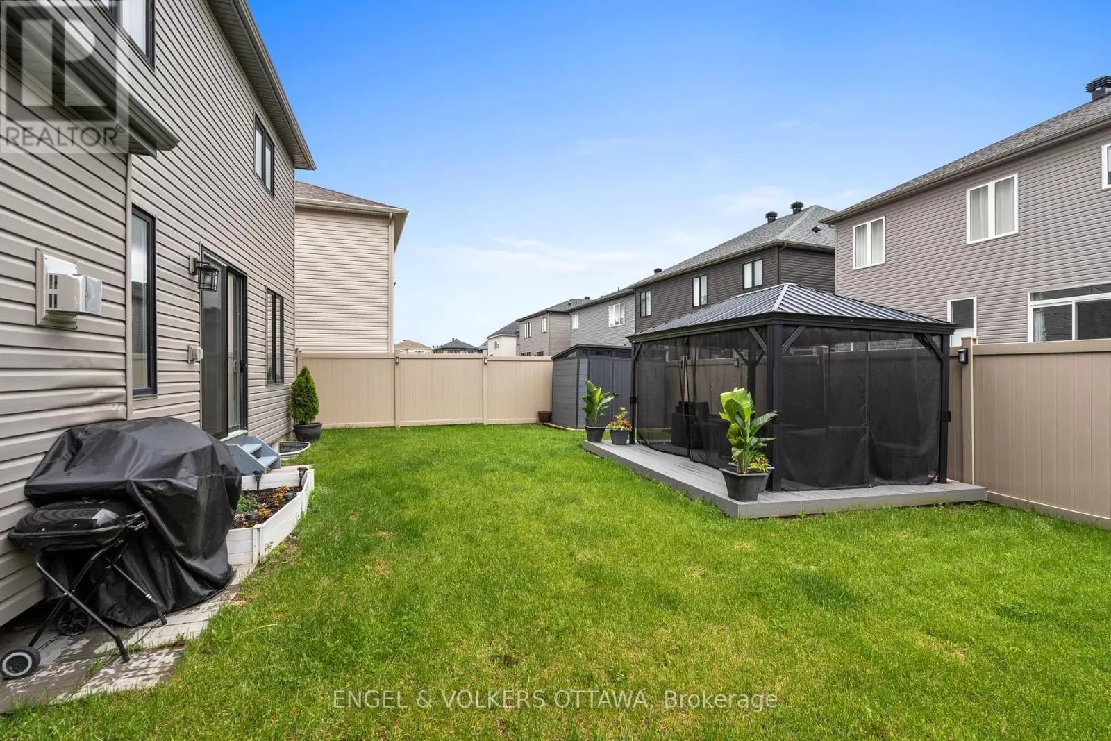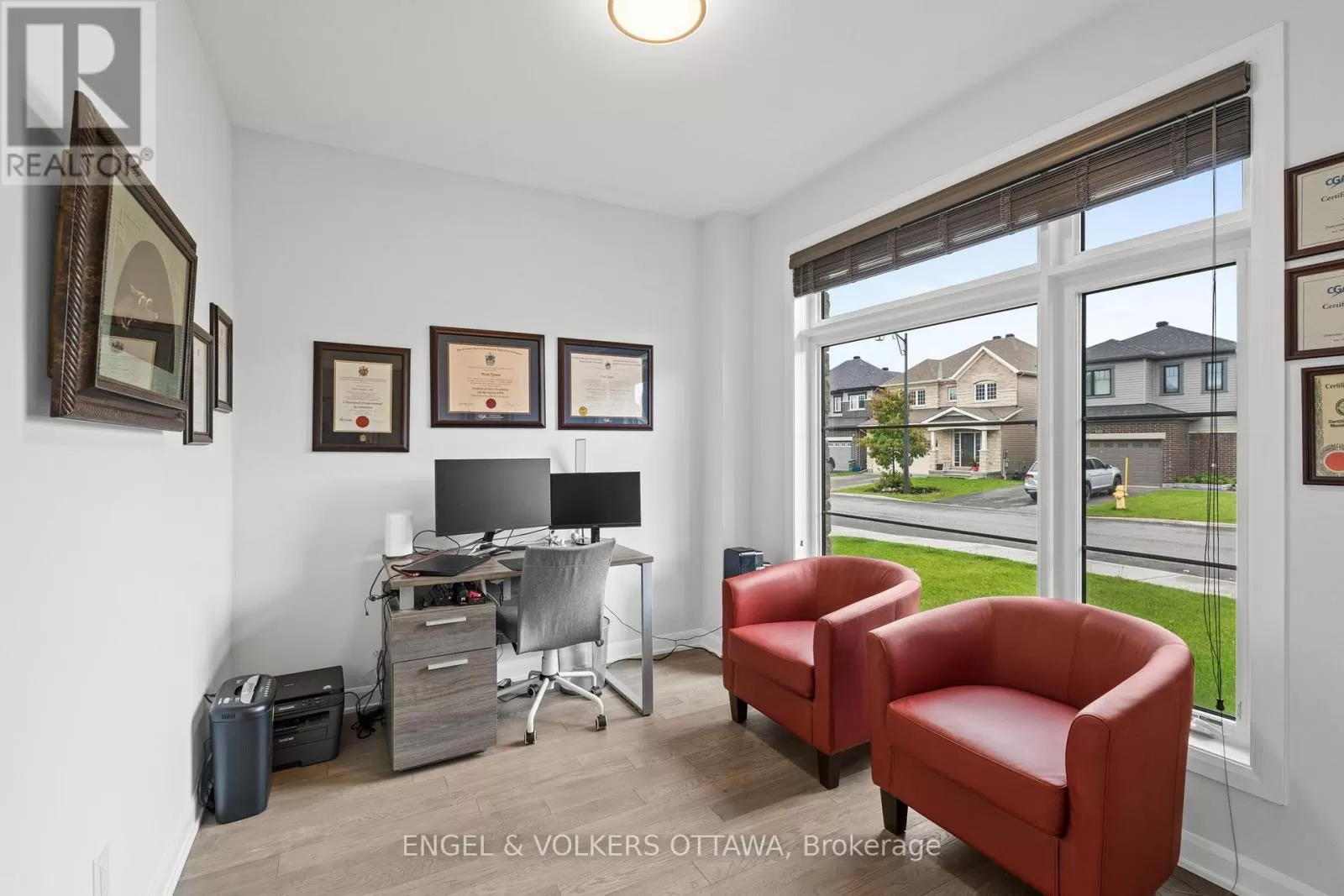 Head southwest on Cappamore Dr toward Cloyne Cres, then turn right onto River Mist Rd, then turn left onto Ralph Erfle Wy, then turn right onto Alex Polowin Ave /// Head northeast on Clonfadda Terrace then turn right onto Alex Polowin Ave Welcome to 195 Alex Polowin Avenue, a contemporary 4-bedroom, 3-bathroom home offering over 2,500 sq.ft. of beautifully designed above-grade living space. Set on an oversized lot in Half Moon Bay, this home blends clean-lined style with thoughtful functionality - ideal for modern families and busy professionals alike. Step into a tiled foyer that opens to a private front office - perfect for remote work or a quiet study. Warm-toned hardwood floors lead you into the bright and spacious living room, where a striking dark stacked-stone fireplace and TV niche create a dramatic focal point. Framed by large windows, this space is as inviting as it is light-filled. The adjacent dining room is designed for entertaining, with a statement light fixture and neutral finishes that set the tone for stylish gatherings. At the heart of the home, the chef-inspired kitchen features two-tone cabinetry, quartz countertops, a waterfall island with seating, and a full suite of stainless steel appliances - both sleek and functional. Upstairs, the primary bedroom is a serene retreat with plush carpeting, a generous closet, and a luxurious 5-piece ensuite featuring a glass-enclosed shower and double vanity. Three additional bedrooms offer flexible space for children, guests, or hobbies and share a well-appointed main bath with an extended vanity and tub/shower combo. A dedicated laundry room with front-loading machines adds extra convenience. Outside, enjoy a low-maintenance backyard with composite fencing, a raised deck with a gazebo, and a spacious lawn - perfect for play or relaxing in the shade. Located minutes from top-rated schools, parks, shopping, and recreation, this home offers the best of suburban living in a vibrant, family-friendly neighbourhood. 195 Alex Polowin Avenue isn't just a home - its a lifestyle. (id:27476)