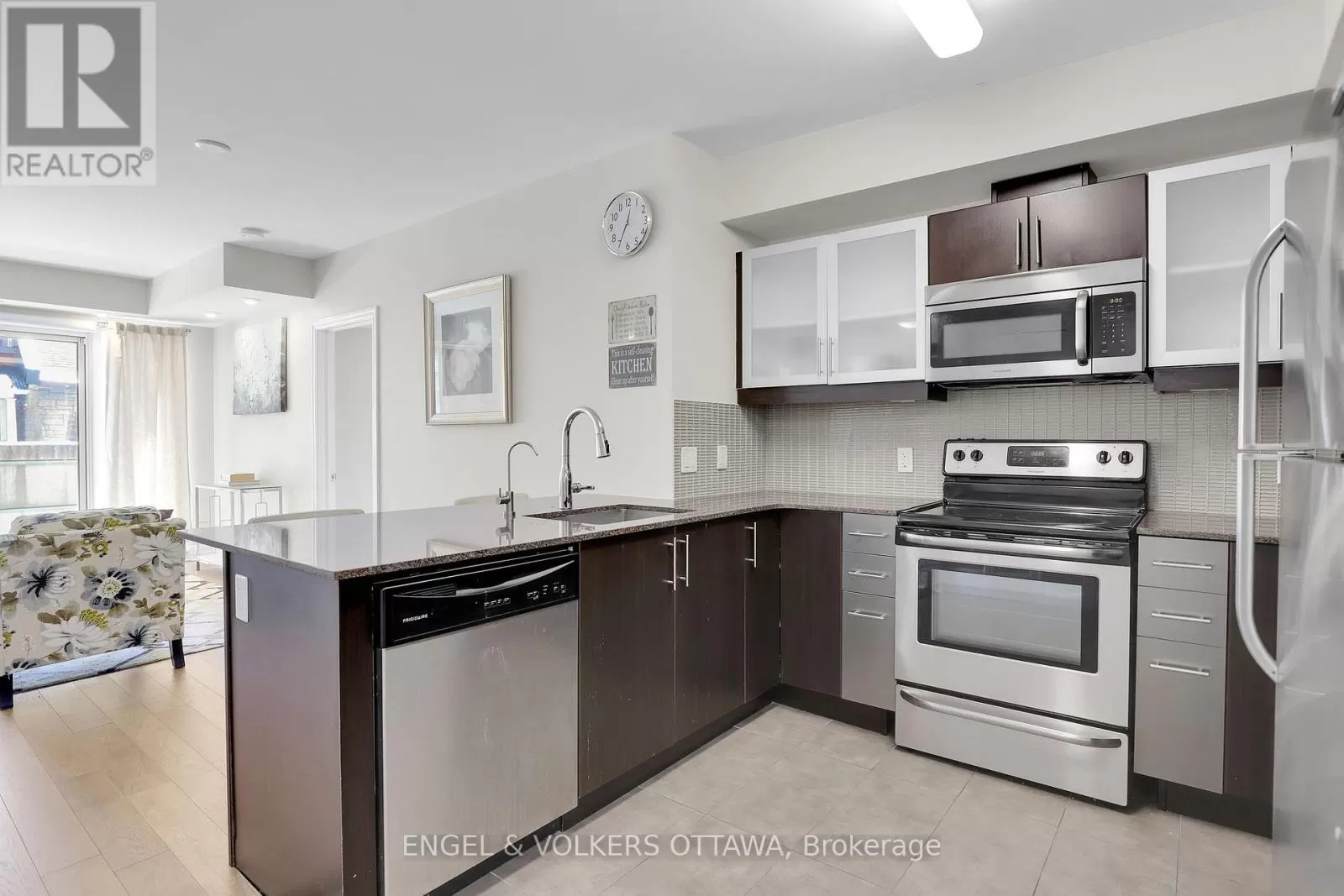 Cross Streets: Cumberland. ** Directions: Corner of Cumberland and Besserer. Stylish downtown living awaits in this bright, open-concept 2-bedroom plus den, 2-bath condo with floor-to-ceiling windows, a sleek kitchen featuring granite countertops and stainless steel appliances, and a large private terrace that runs the full length of the unit. The den includes custom built-in shelving, creating the option of a functional home office, while brand new hardwood flooring adds warmth and elegance throughout. The bathrooms feature upgraded cabinetry, adding a touch of luxury. With in-unit laundry, underground parking, a storage locker, and access to premium amenities including a 24-hour concierge, indoor pool, fitness centre, outdoor terrace, and party lounge. Located steps from the LRT, Rideau Centre, University of Ottawa, and the ByWard Market. (id:27476)
