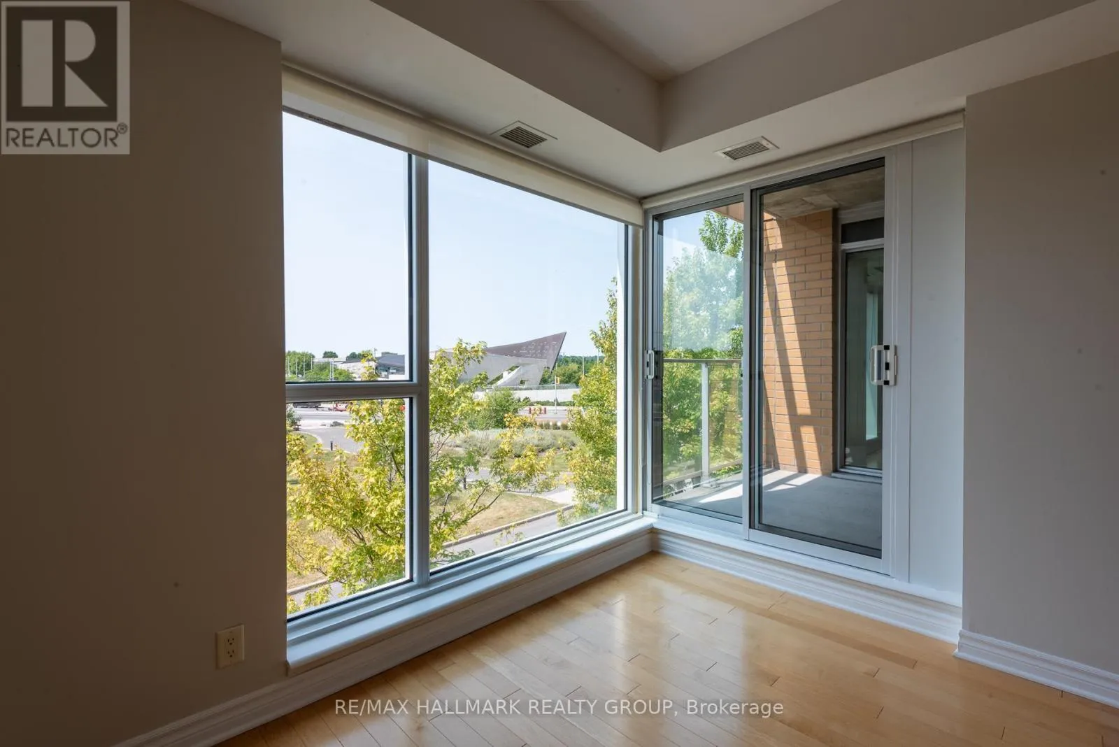 Cross Streets: Booth Street & Kichi Zibi Mikan Parkway. ** Directions: Wellington Street from the East, or Parkway from the West, turn onto Lett. OR Booth Street from the South, right on Fleet, left on Lett. Outsmart the crowd! This contemporary condo is by far the best value per square foot in a two-bedroom unit at Lebreton Flats. Check the facts and compare - 100 to 150 square feet larger than any two-bedroom unit under $700K and priced lower than any in recent history. Defining the Ottawa urban lifestyle, crafted into nature amidst NCC bike paths, the Canadian War Museum, Indigenous parkland, short walks to Parliament, Little Italy, Chinatown and the Ottawa River. This contemporary Lebreton Flats two-bedroom condominium offers 1,020 square feet of comfortable living. Outsmart the crowd! When you head out to another part of town via LRT access at Pimisi Station two-minutes' walk away, leave your vehicle charging in your heated underground garage parking spot. Installed in late 2024 your personal EV Charger is ready for your future if you're not electric yet. The ECO vibe goes further with a secure bicycle room in this LEED Silver certified building. Your new third-floor home features hardwood and tile flooring, granite counters, one of the most practical layouts in the building, and an ingenious computer nook with built-in desk to get things done out of earshot from the living room. The owners, who purchased the condo from the developer, had the unit modified to include the computer nook / den, which has proven invaluable for working from home in today's hybrid environment. Prefer a second bedroom? The infrastructure is already in place behind the walls. A truly generous primary bedroom with a wall of closets has direct access to the bathroom which features granite counters, double sinks and plenty of elbow room. The second bedroom comes with a Murphy bed to combine additional office or media space with room for guests. Busy day behind you? Chill on the balcony and watch the sunset. Superb amenities including an exercise room, BBQ patio the Ottawa downtown skyline, car wash, and event room. (id:27476)