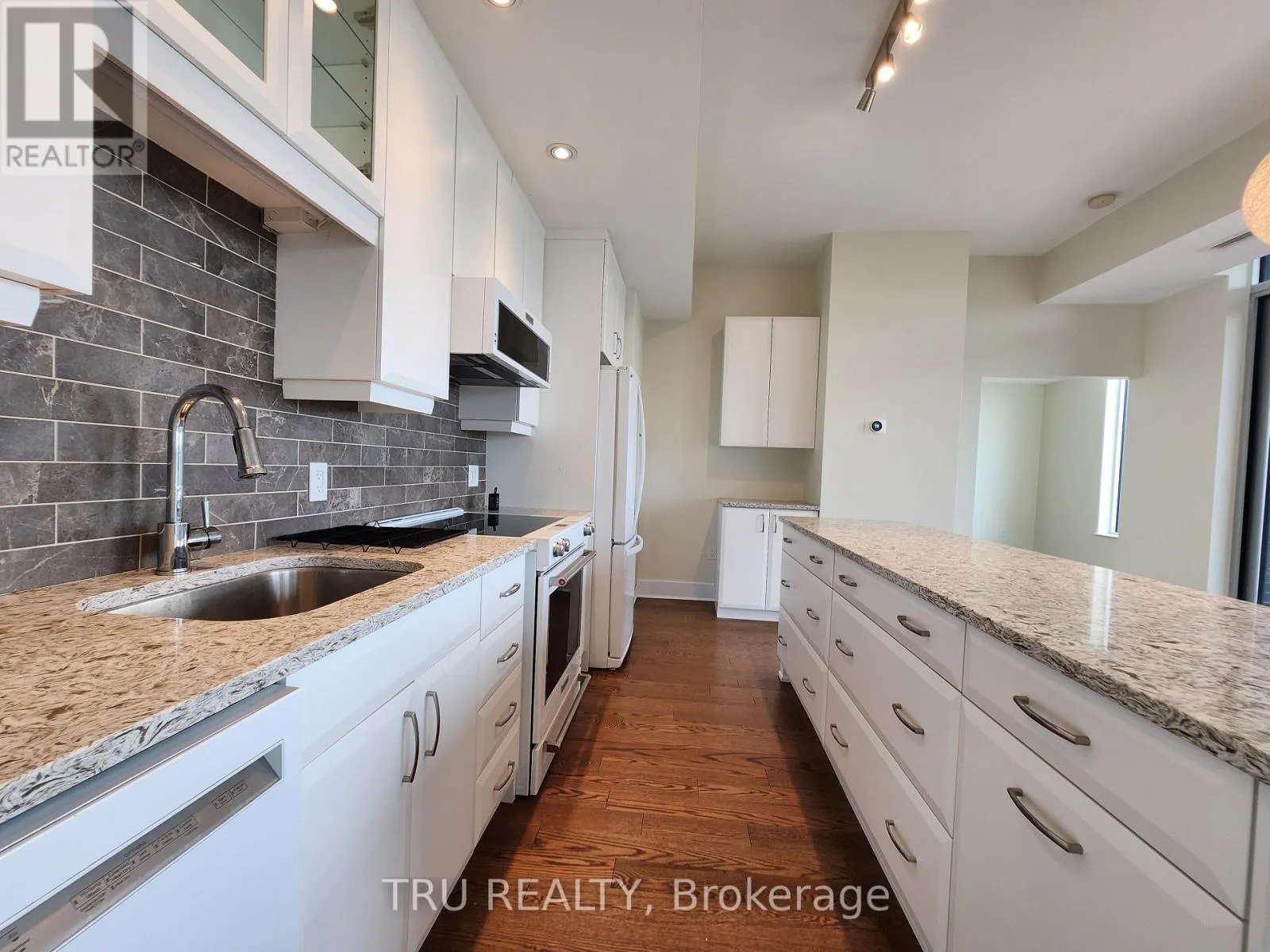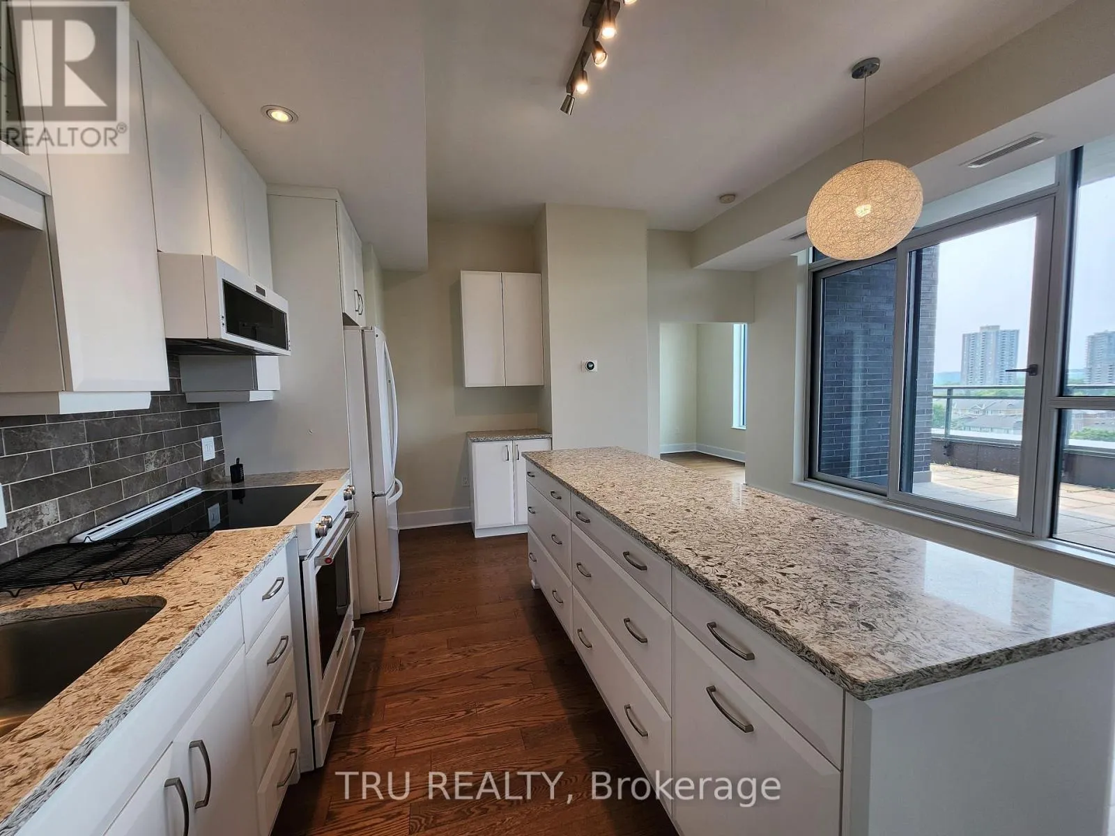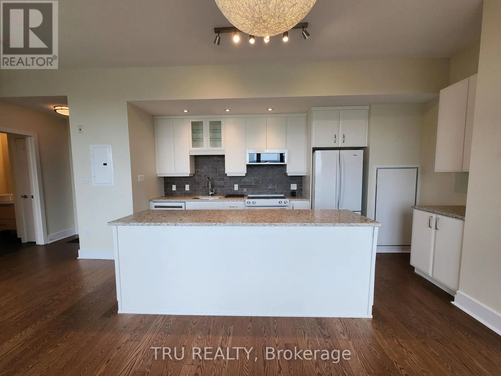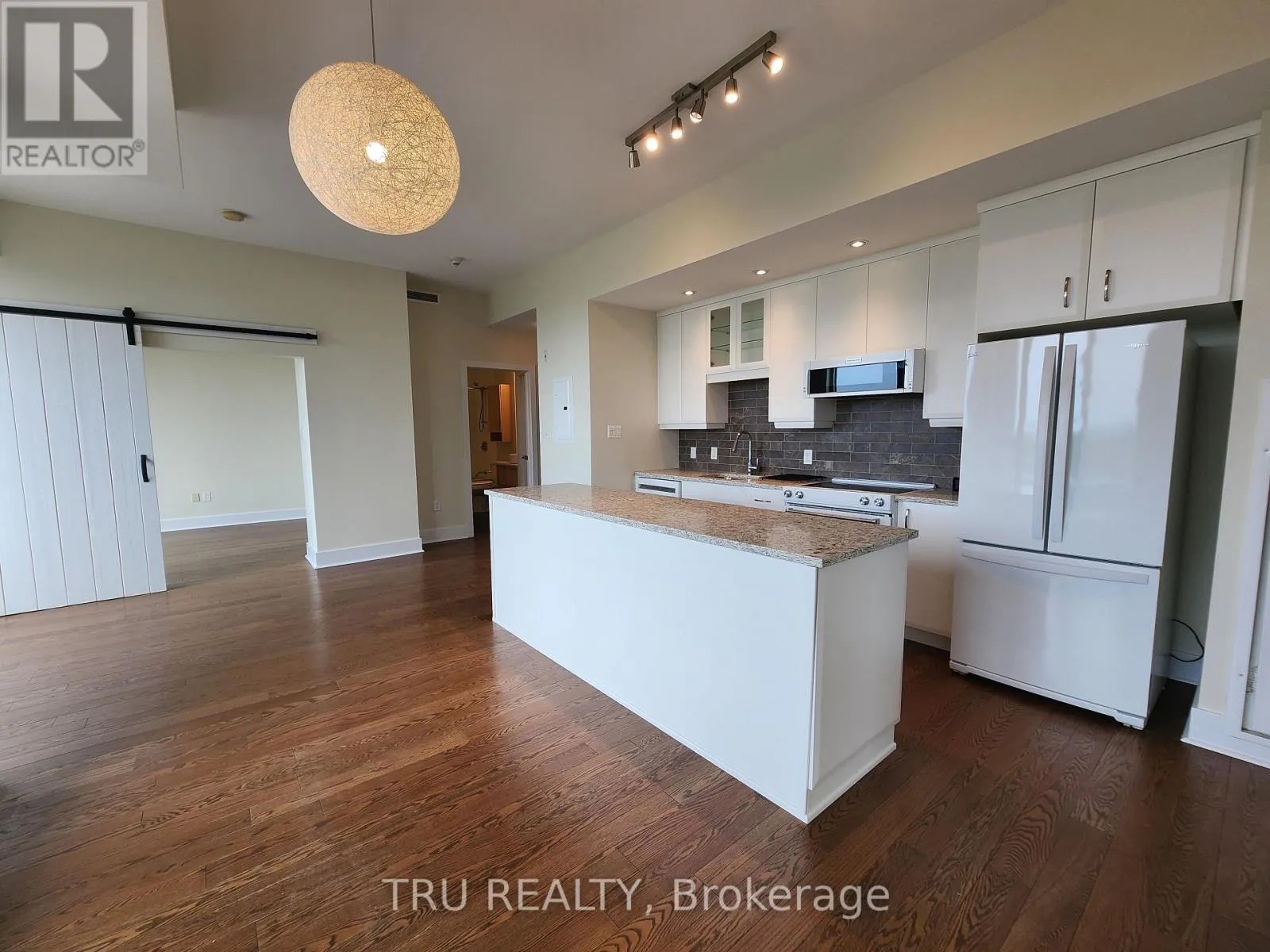 Cross Streets: Patricia Ave and Richmond Road. ** Directions: Take exit 122 for Parkdale Avenue,Turn right onto Parkdale Ave, Turn left onto Wellington St, Wellington Turns into Richmond Road and corner of Patricia Ave is the building. Top floor unit offering a bright, open-concept layout with quality finishes throughout. The kitchen features granite-look countertops, a full-height stone tile backsplash, and white shaker cabinetry paired with modern brushed hardware. Appliances include a KitchenAid electric range with smooth glass cooktop, KitchenAid over-the-range microwave, KitchenAid built-in dishwasher, and a Whirlpool French door refrigerator with bottom freezer. The in-suite laundry closet is equipped with a Blomberg stacked front-load washer and dryer. Hardwood flooring flows through the main living areas, with tile in the bathrooms. Large windows provide plenty of natural light, and large private terrace with panoramic views of the Gatineau hills and space for dining and lounging. Move-in ready with a clean, modern style. Building amenities: fitness centre, party room, rooftop terrace, theatre room, car wash bay (id:27476)