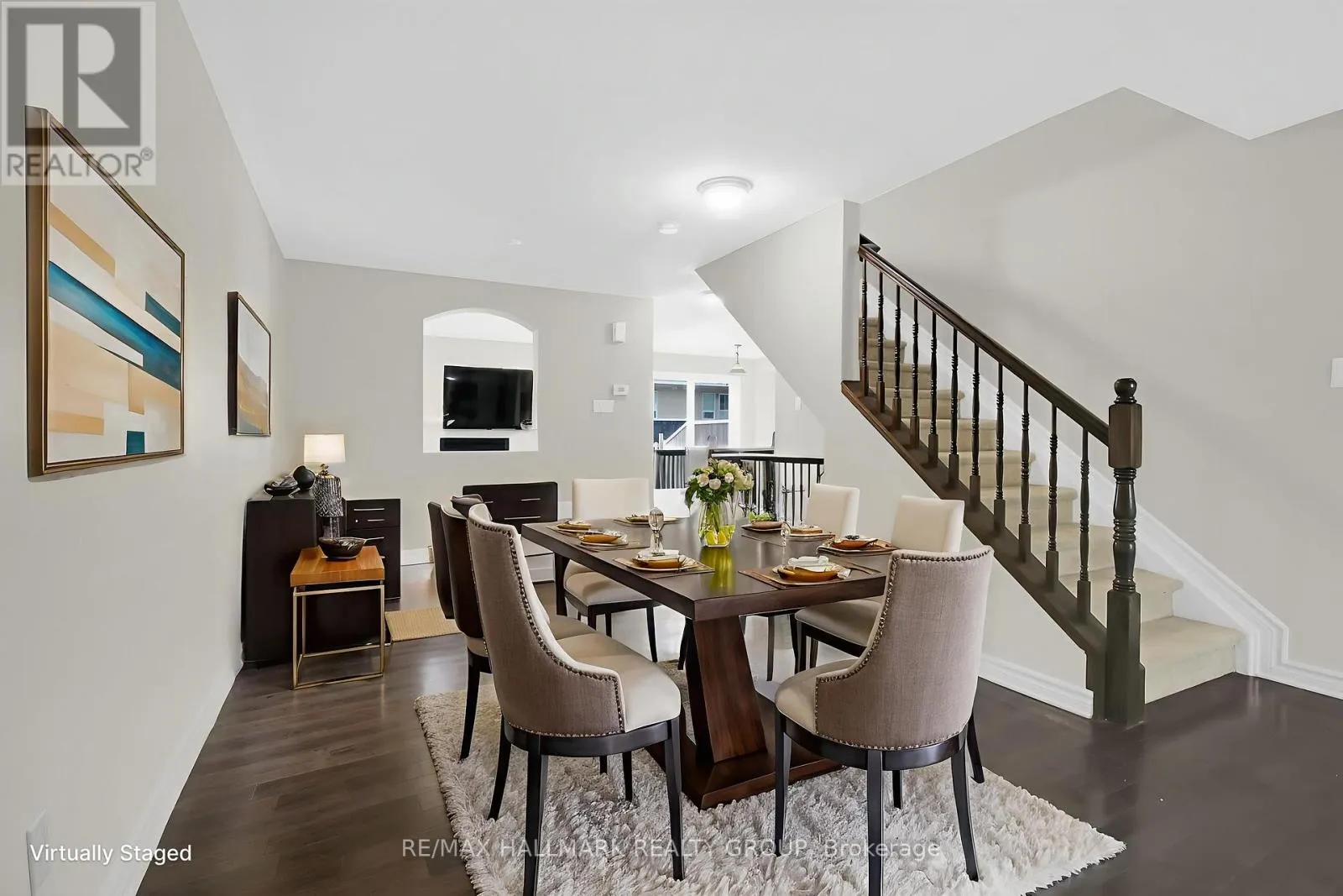 Cross Streets: Chapman Mills and Temagami. ** Directions: From Prince of Wales (N), Turn Left on Longfields. At roundabout take 2nd exit to keep on Longfields. At next roundabout take 2nd exit to keep on Longfields. Turn Right on Chapman Mills. Turn Right on Temagami Drive, Turn Left on Temiskaming. Welcome to 418 Temiskaming Cres! Step into this delightful townhouse, where modern elegance meets cozy comfort. As you enter, you're greeted by the living and dining rooms, a charming space offering a versatile environment suitable for intimate dinners and cozy after meal chats. Next, transition into the heart of the home, the kitchen with adjacent family room with fireplace. Equipped with all the appliances you need and it's ready for your culinary adventures. The clean, sleek design and large breakfast area makes this space as functional as it is beautiful, perfect for both daily meals and entertaining guests. Beautiful hardwood flooring throughout. Upstairs, discover the three generously sized bedrooms, each providing a personal sanctuary for rest and relaxation; the primary bedroom is your private retreat, complete with an ensuite bathroom for ultimate convenience. The additional two bathrooms ensure enough space for family or visitors, blending style and functionality seamlessly. Finished lower level offers various possibilities from a theatre room, children's play area, or even a hobby room that suits your lifestyle needs. Fully fenced yard. (id:27476)
