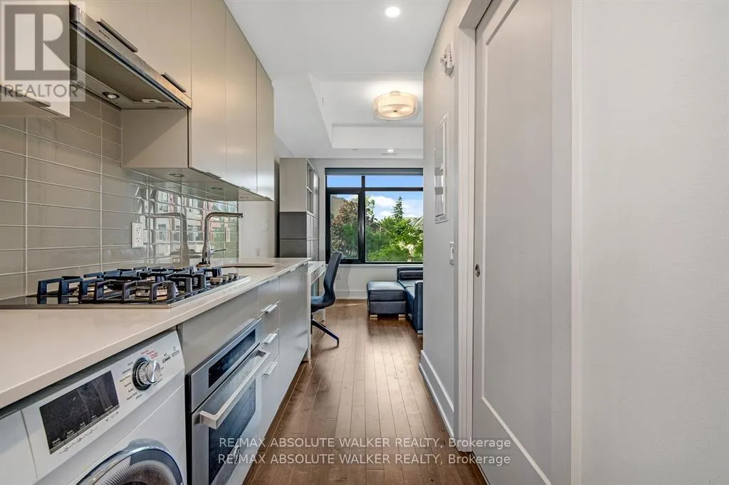 Cross Streets: Main St. & Oblats Ave. ** Directions: Main St. at Oblats Ave. Nestled in the vibrant heart of Old Ottawa East, this rare Pied-a-Terre offers the ideal space for a young professional or investor. Thoughtfully designed with modern living in mind, this sleek condo features an open-concept layout that flows effortlessly, maximizing every inch of space. High-end finishes, including hardwood floors, quartz countertops, and a chef-inspired kitchen with top-tier stainless steel appliances, create a truly refined atmosphere. The unit comes complete with a Murphy bed, desk, and wardrobe for ultimate convenience. Building amenities elevate the living experience, offering a Yoga Studio, Gym/Exercise Centre, and Party Room for social gatherings. For added convenience, there's a Storage locker and a Guest Suite for visitors. A Wheelchair Elevator/Lift ensures accessibility in the building, while the rooftop terrace provides the perfect spot to unwind or mingle with neighbours. Step outside to explore the scenic bike paths, enjoy leisurely strolls, or soak in the beauty of the surrounding neighbourhood. Enjoy the benefits of living in a smoke-free building in one of the city's most desirable neighbourhoods, just moments from the Rideau Canal, the Glebe, and the University of Ottawa. **EXTRAS** Condo Fee Includes: Building Insurance, Garbage Removal, General Maintenance and Repair, ManagementFee, Reserve Fund Allocation, Snow Removal, Water/Sewer. (id:27476)