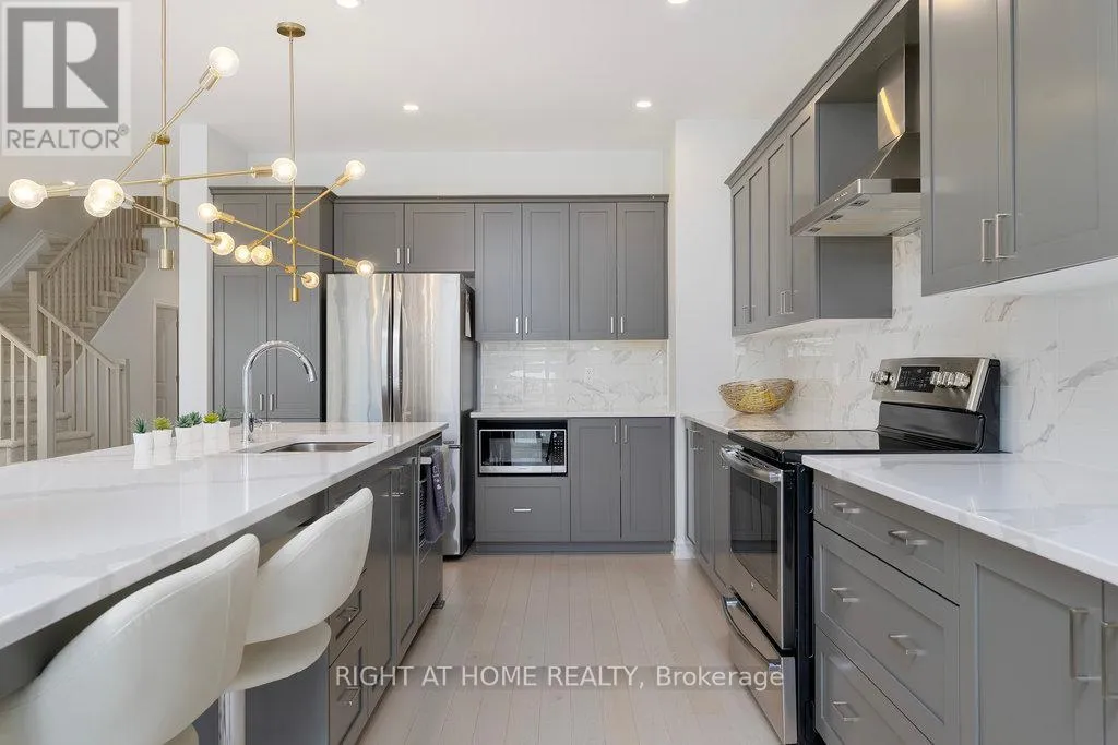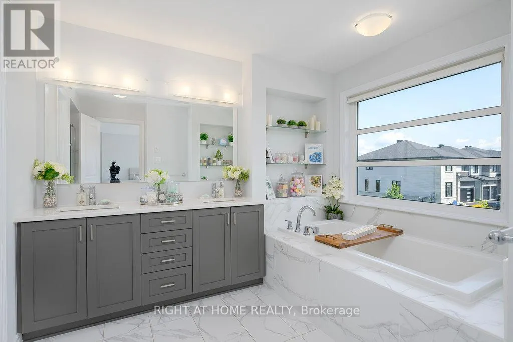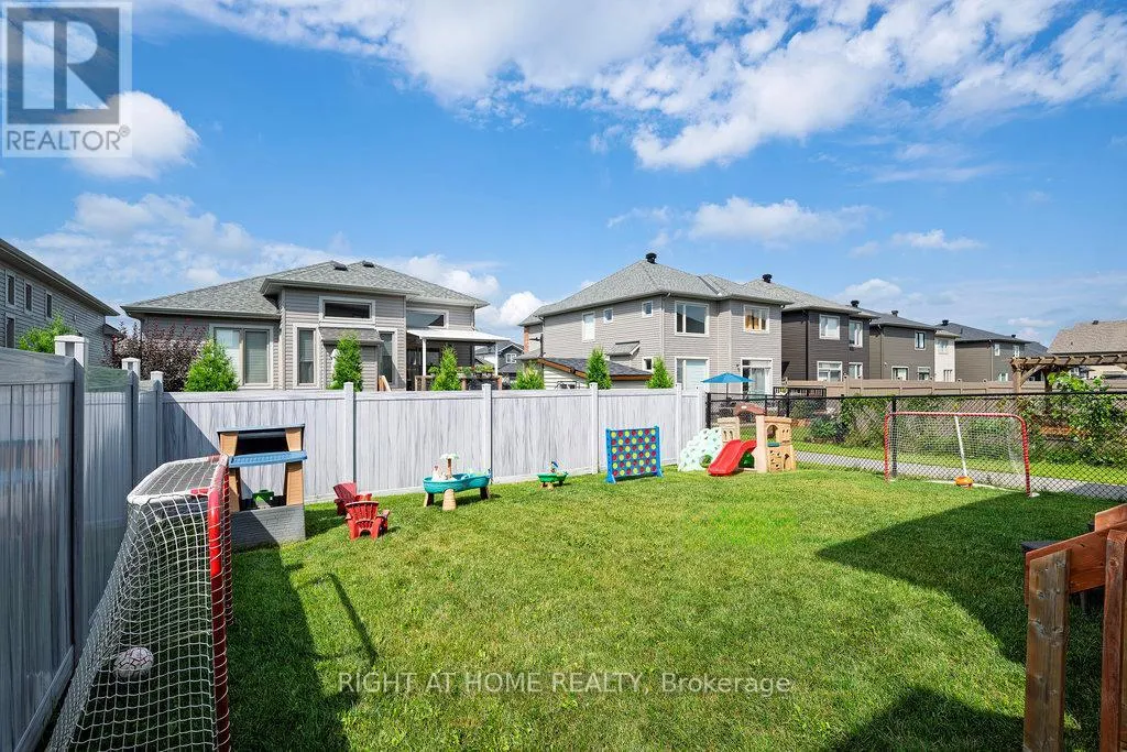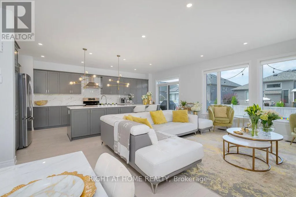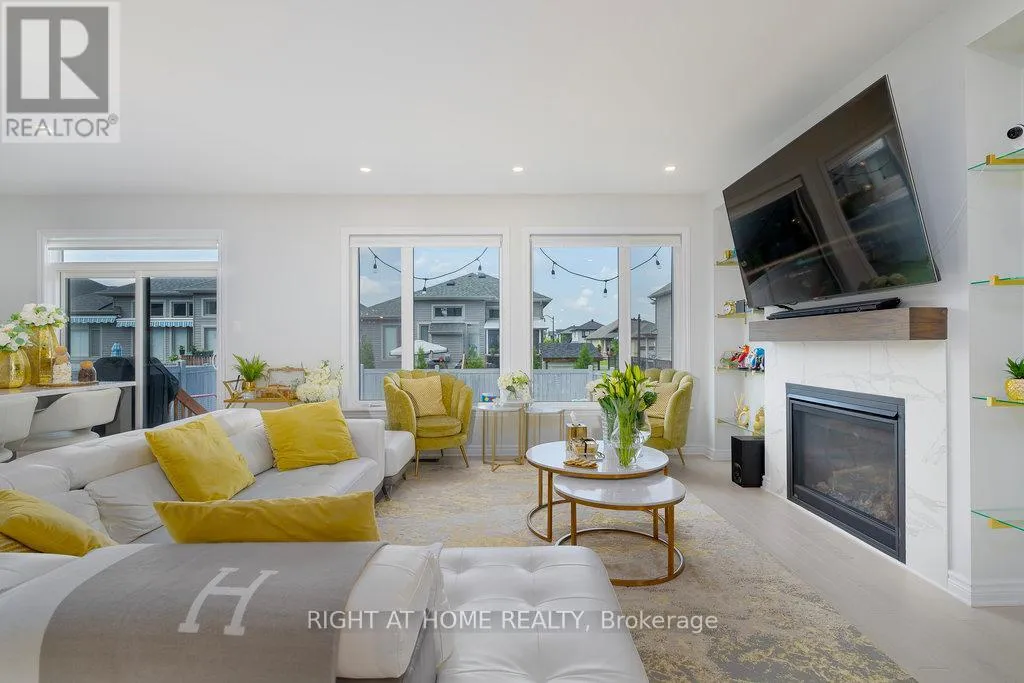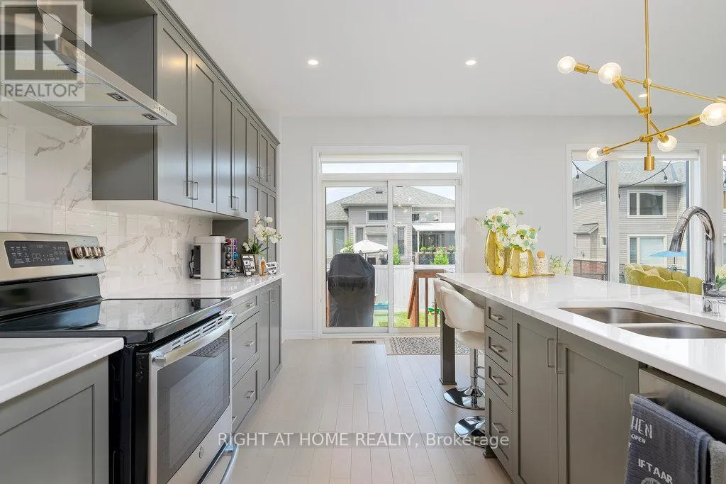 Cross Streets: Kelly Farm Drive and Salamander Way. ** Directions: South on Bank St, right on Miikana Rd, left on Kelly Farm Dr. Welcome to this stunning Richcraft Baldwin, perfectly positioned on a premium lot adjacent to a walking path in the sought-after community of Findlay Creek. Featuring high-end upgrades and an open, light-filled layout, this home blends comfort, style, and function seamlessly. Offering 4 bedrooms, a loft, and a finished basement, its ideal for modern family living. Step inside to discover 9-ft ceilings on the main floor, wide plank engineered hardwood, and upgraded lighting throughout including LED spotlights, extra kitchen and living area lighting, and striking fixtures. The chefs kitchen is a showpiece, boasting extended cabinetry, a full-slab backsplash, quartz counters, stainless steel appliances, an upgraded sink, a built-in pantry, and an extended island. The spacious great room with a gas fireplace and separate dining area provides the perfect setting for entertaining, complemented by a versatile space with custom cabinetry that can be used as a home office, secondary living room, or designated dining room. The main floor also features a mudroom off the garage entrance. Seamless wooden spindles lead to the upper level, where you'll find custom blinds, a versatile loft, and a large laundry room. The primary suite offers a walk-in closet with custom shelving and a spa-like 5-piece ensuite with premium tile, upgraded sinks, toilets, and more. A secondary bedroom also includes its own walk-in closet with custom built-in shelving. The finished basement is bright and spacious, featuring multi-colour smart lights and a three-piece bathroom. Outdoors, enjoy the fully fenced, generously sized backyard. This home is loaded with thoughtful, designer-inspired upgrades and is steps from parks, schools, shopping, and trails. Move-in ready and waiting for you book your private showing today! (id:27476)