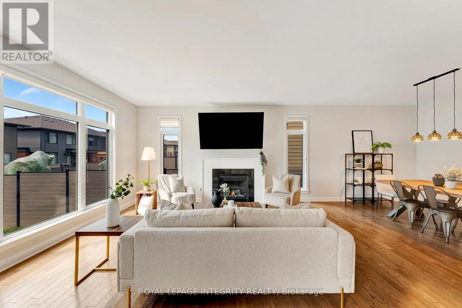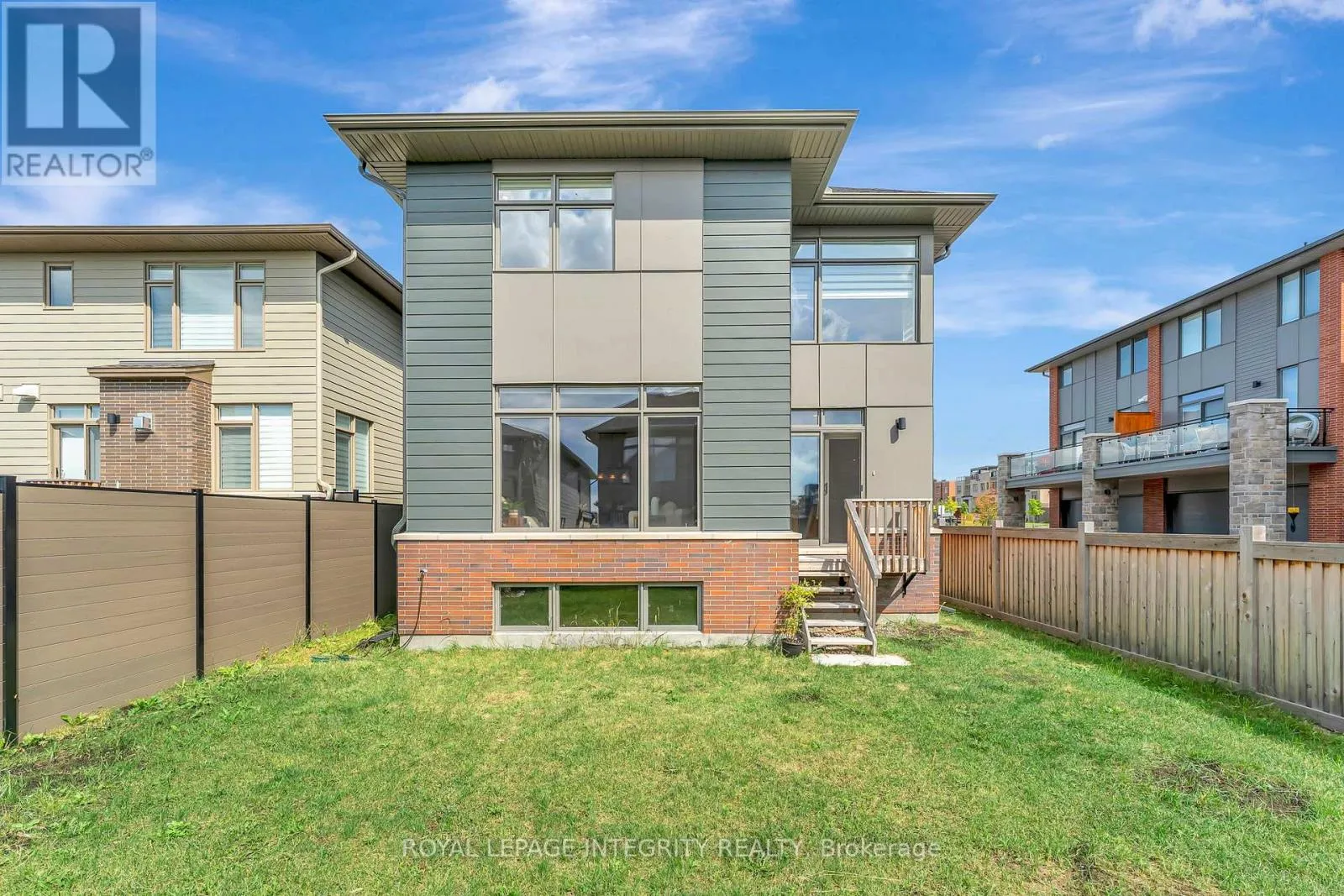 Cross Streets: Hemlock Rd. ** Directions: Blair Exit, North on Montreal Rd, Right on Wanaki, Left on Moses Tennisco. Experience luxury living at its finest in this Barry Hobin-designed Mariposa model, a Uniform-built masterpiece offering over 2,761 sq. ft. of impeccably crafted living space located right across from the community park. Every detail reflects a sleek, modern aesthetic, thoughtfully designed for both style and functionality. The chefs kitchen features pristine quartz countertops, high-end appliances, a walk-in pantry, and an open flow into the elegant dining area making it perfect for hosting. The sun-filled living room boasts a contemporary fireplace and serene backyard views. A private main-floor office offers the perfect work-from-home setup, while a full bath off the mudroom makes caring for pets or welcoming overnight guests a breeze. Upstairs, retreat to the spacious primary suite with a spa-inspired ensuite (including a sspace for future sauna or a dream make-up vanity) and a generous walk-in closet. Three additional bedrooms, a full bath, and a well-placed laundry room complete the upper level.mThe unfinished basement, with oversized windows, offers in-law suite potential with a rough-in for a full bath and kitchen. This home combines abundant space, premium finishes, and thoughtful touches such as custom blinds, high-end fixtures, and a space for every need. Ideally located in Wateridge Village, youll enjoy central access to the Blair LRT, Montfort Hospital, museums, the NRC, highways, and more. Luxury, location, and versatility all in one stunning package. (id:27476)