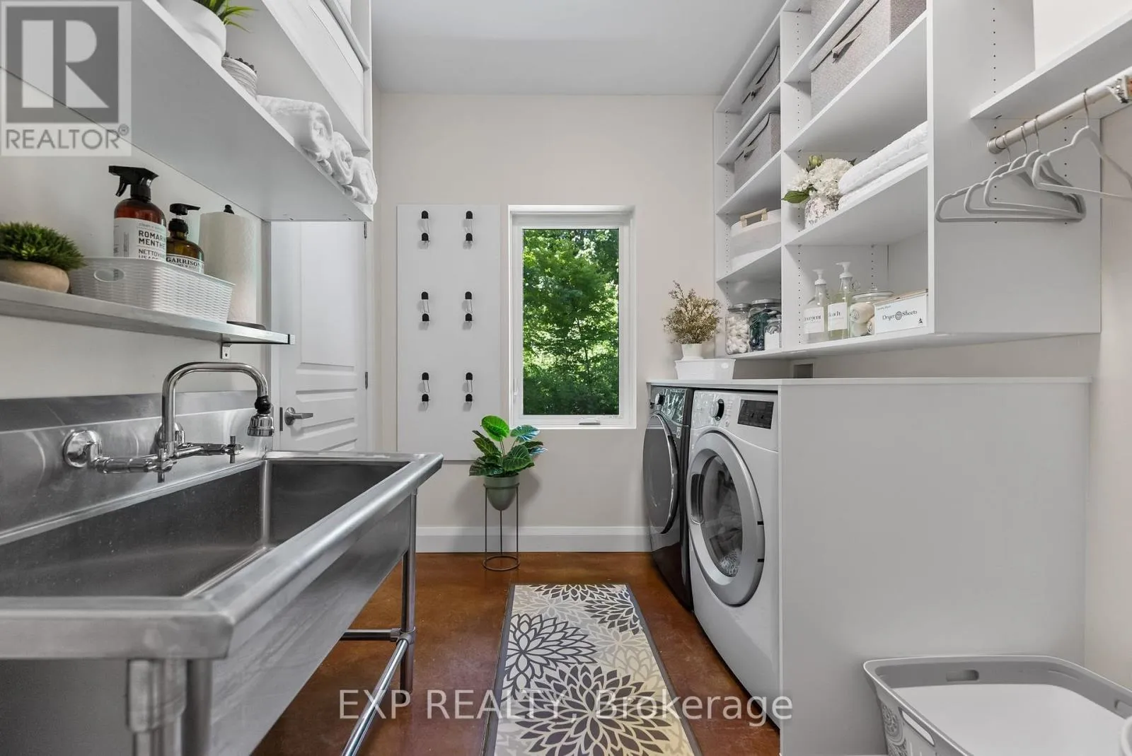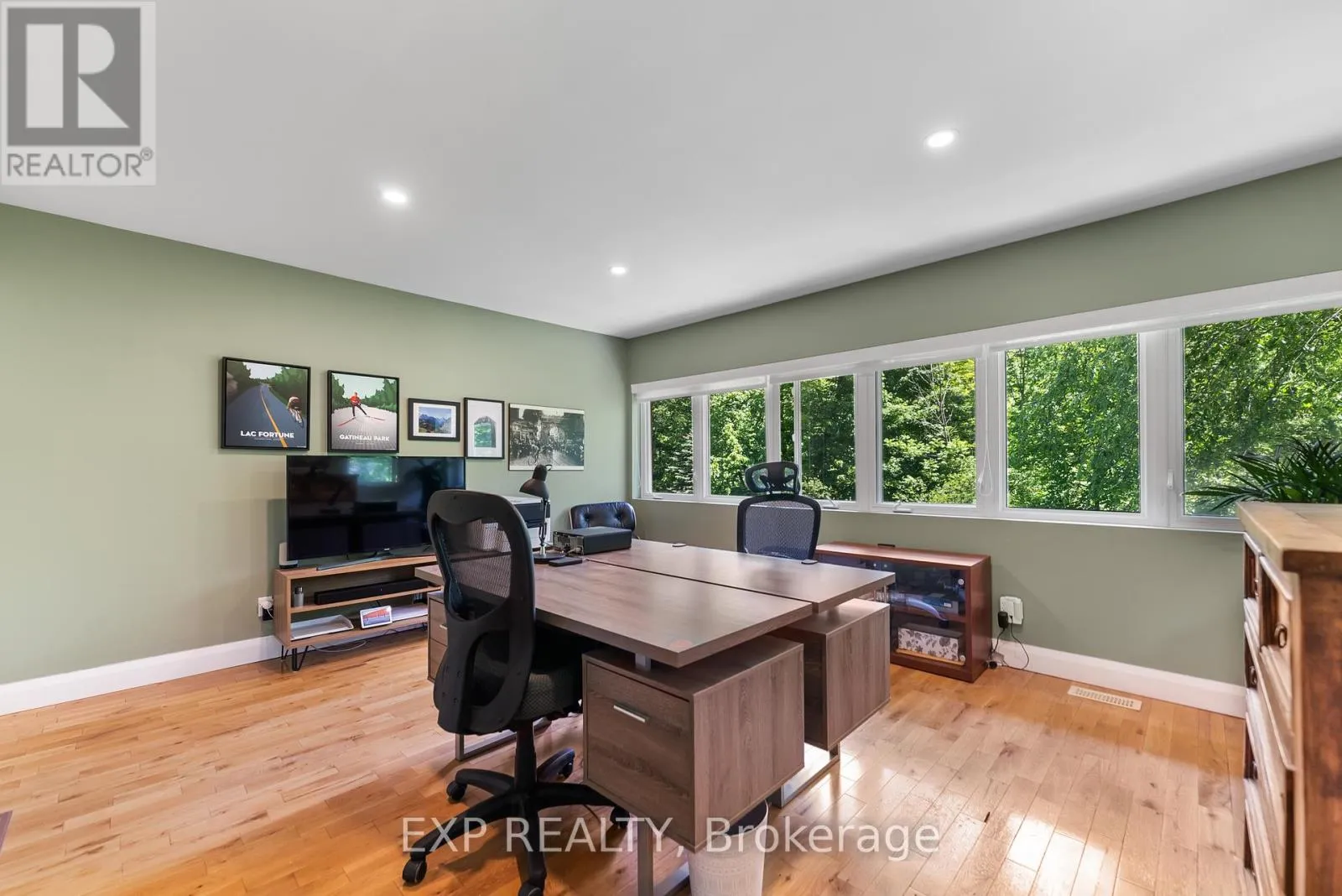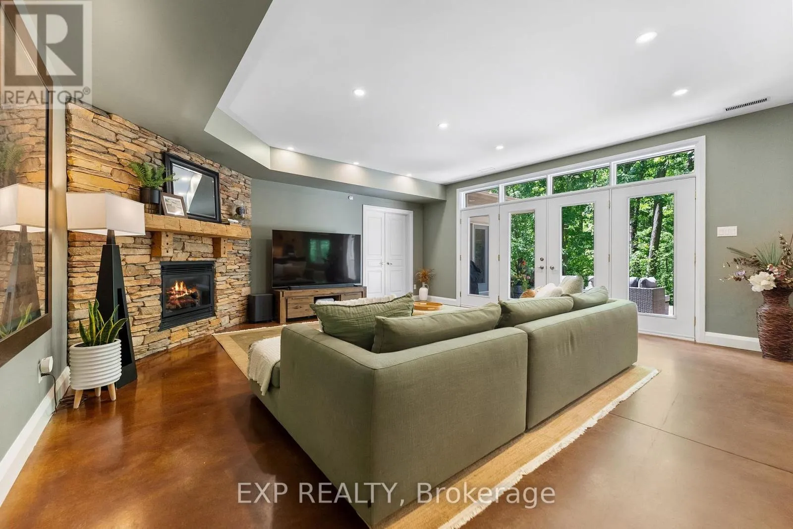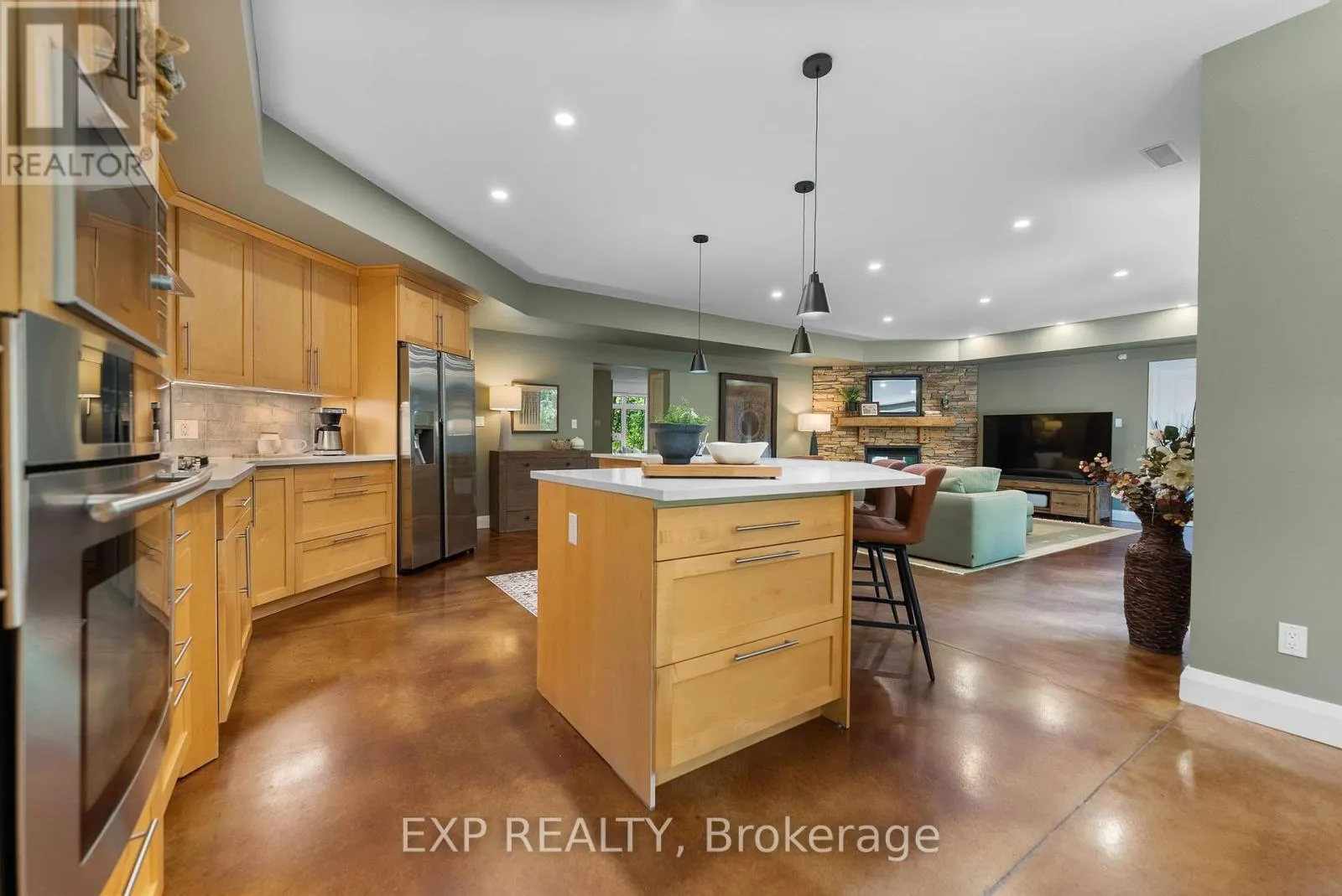 Cross Streets: Dozios & Gough. ** Directions: From Mitch Owens Drive turn onto Dozois. Then left onto Queenscourt Cres. #5758 will be on the left. Prestige. Privacy. Perfection. Welcome to 5759 Queenscourt Crescent in the exclusive Rideau Forest of Manotick, where timeless design meets modern comfort on a breathtaking 4.4-acre estate. This custom-built 2006 Prairie-style residence offers over 4,600 sq. ft. of beautifully crafted living space, complete with 5 bedrooms, 4 bathrooms, and a 3-car attached garage. The homes energy-efficient ICF construction and heated polished concrete floors ensure year-round comfort and efficiency. The heart of the home is the spectacular open-concept kitchen showcasing custom cabinetry, an oversized island, and gleaming quartz countertops flowing seamlessly into the sun-filled great room. Just steps away, the spacious main-level in-law suite is a rare find, offering its own private entrance, living area, bedroom, and bathroom. Ideal for multi-generational living, visiting family, or even a private home office, it blends independence with connection under one roof.Floor-to-ceiling windows throughout bring the outdoors in, flooding every room with natural light and framing serene views of the surrounding forest. Upstairs, the luxurious primary suite is your personal sanctuary featuring a generous sitting area, natural gas fireplace, spa-inspired ensuite, and a large walk-in closet. A spacious office, an additional bedroom, and a full bath complete the second level.All of this in one of Ottawas most prestigious neighborhoods just minutes to Manotick Village, golf, the Rideau River, and a quick commute to downtown. (id:27476)