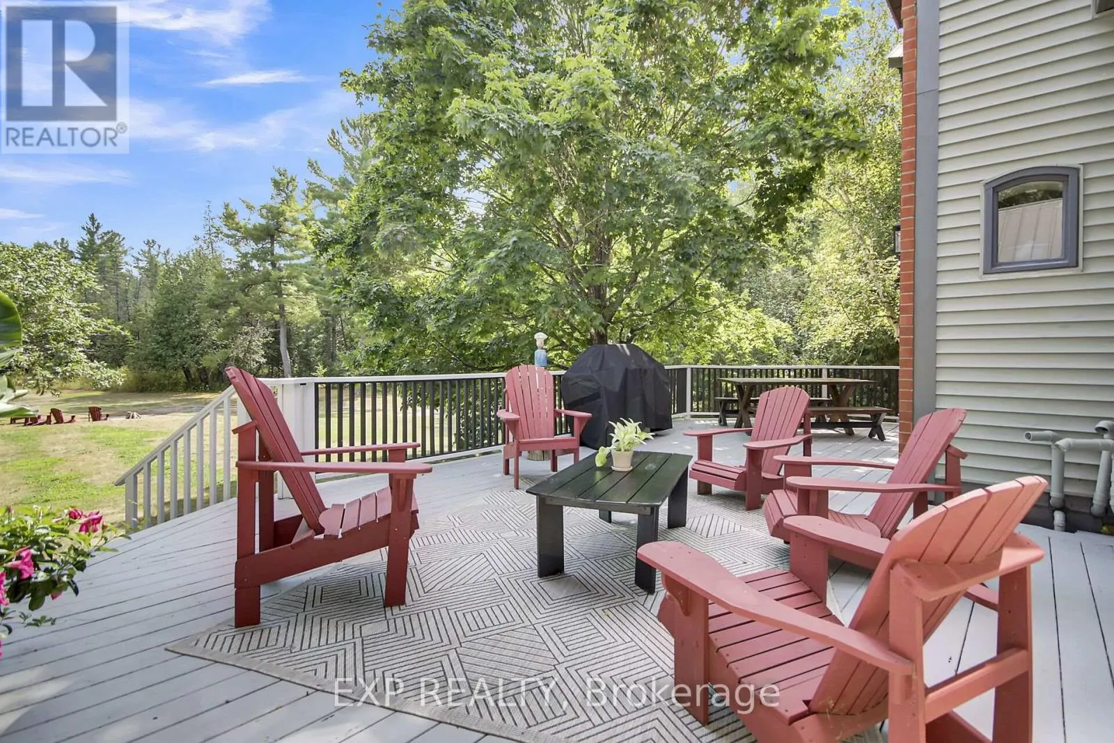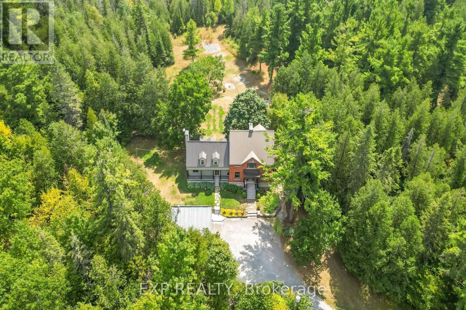 Cross Streets: Upper Dwyer Hill Road ~ Vaughan Side Road between Marshwood Road and Peter Robinson Road. ** Directions: Drive Highway 417. Exit at March Road. Drive March Road west. Turn right onto Bearhill Road. Turn left onto Vaughan Side Road. Your new home is located on the left hand side. Do not drive up the driveway without an appointment. Welcome to 3554 Vaughan Side Road. A cherished, one-owner custom-built home, ready to be enjoyed by its next family. Tucked away on 40 acres, a serene picturesque, tree-lined laneway guides you to the inviting red-brick & vinyl-clad home. Natural landscaping, flagstone walkways, and perennial gardens set the tone, while the covered front porch opens to a spacious, marble-tiled foyer. Rich cherry hardwood floors span much of the main level. Formal living room showcases custom trim work, double-sided propane fireplace and charming window seat overlooking the backyard. Equally elegant dining room features 9 foot doors opening onto the rear deck, as well as custom built-in cabinetry. The kitchen is a showstopper, renovated in 2011 it has Mexican-clay tile flooring, stainless steel appliances and a farmhouse sink positioned before a wall of windows framing the great outdoors. Just beyond, a warm and inviting family room centers around a Vermont Castings propane stove and opens to a 3-season sunroom. A powder room completes the main floor. An elegant curved staircase leads to the second level. On one side, the oversized primary suite offers tranquil views, two closets, and an ensuite retreat with a jacuzzi soaking tub and walk-in shower. On the opposite side, additional bedrooms with generous closets and whimsical storage nooks in the eaves share a full bathroom with a stackable washer/dryer. The lower level hosts a private in-law suite with its own entrance, bright living room with propane fireplace, fully equipped kitchen, spacious bedroom, and private bathroom, it offers comfort and independence, while maintaining easy access to the main home. The basement also provides abundant storage space and houses the utility room with furnace, water treatment system, and more. Outside, a detached double garage includes a large loft for storage or hobbies. With 40 acres to roam, explore, and play, this property is a dream for children, gardeners, and nature enthusiasts alike. (id:27476)
