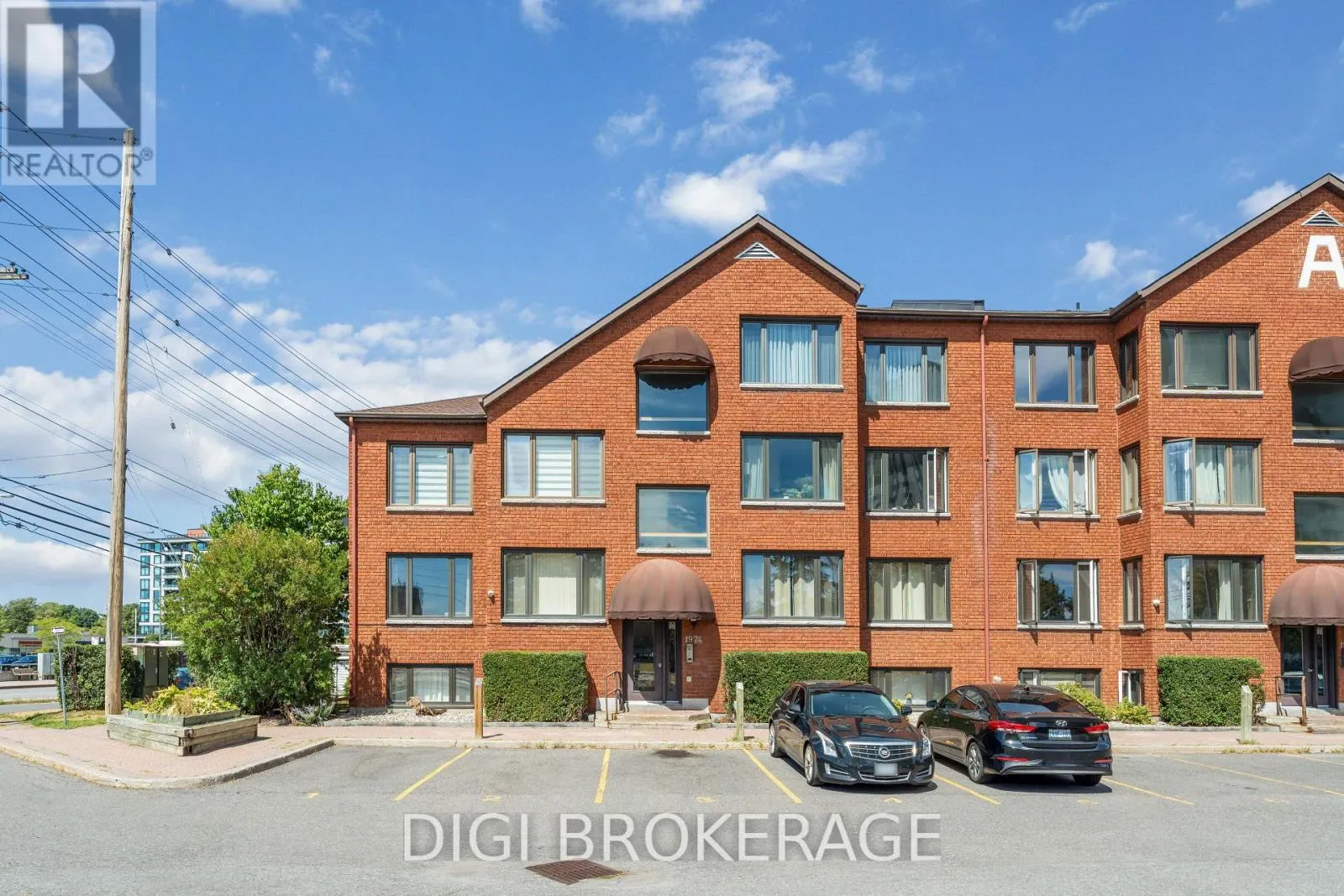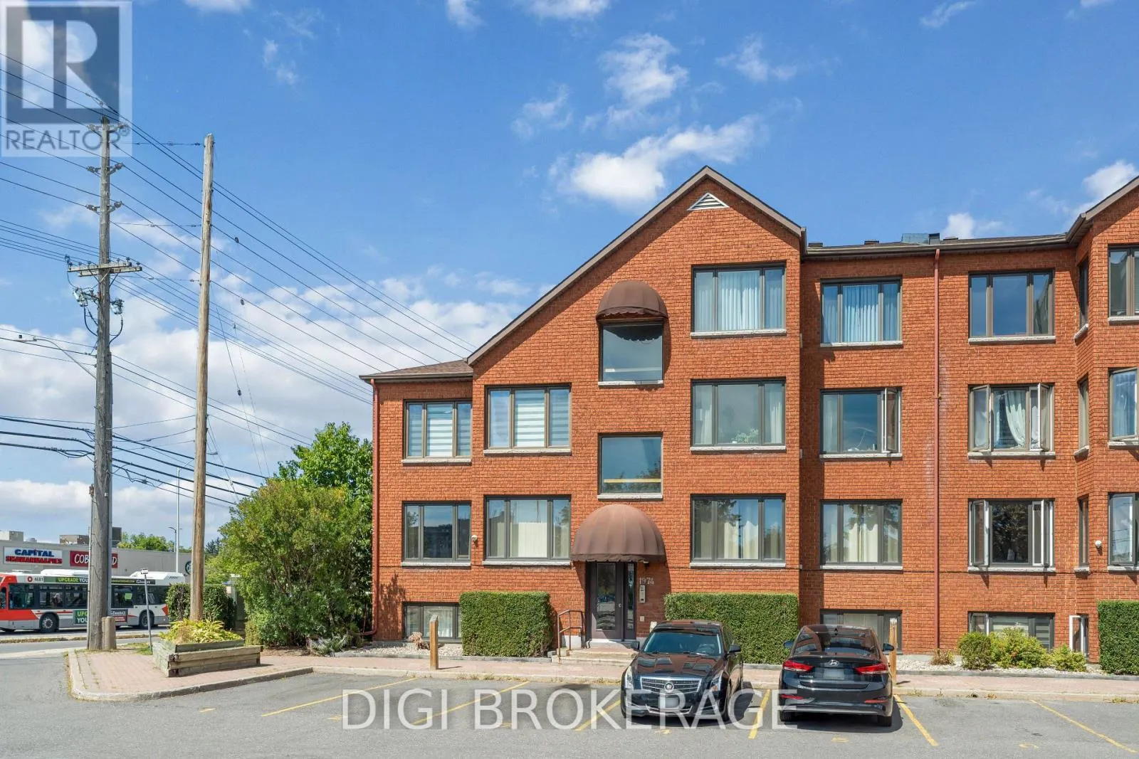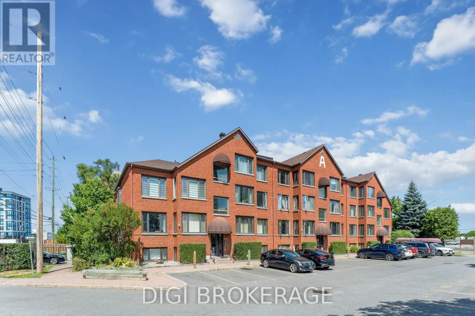 Cross Streets: St Laurent Blvd & Russel Rd. ** Directions: St Laurent South of Smyth Rd, veer right as St Laurent turns west off Russell. Look for lowrise building on your right, directly across from NE corner of Elmvale Shopping Centre. Parking in front. Welcome to Alexander Court! Why rent when you can own this bright and spacious 2-bedroom + den condo, perfectly located just steps from Elmvale Acres Shopping Centre and public transit. Situated on the top level with no direct neighbour beside you, this corner unit is filled with natural light from large, south-facing windows. Inside, you'll find a generous living and dining area, an upgraded kitchen with ample cabinetry, and a renovated bathroom. Both bedrooms are well-sized with excellent closet space. Additional highlights include in-unit laundry, mini split A/C, and updated flooring throughout. This secure, well-maintained, all-brick building is close to everything you need: groceries, pharmacy, banks, library, restaurants, LCBO, Starbucks, hospitals, and easy highway access. One parking space is conveniently located at your front door, with visitor parking available. Condo fees include water and sewer. A fantastic value in a prime location - this is one you won't want to miss! (id:27476)