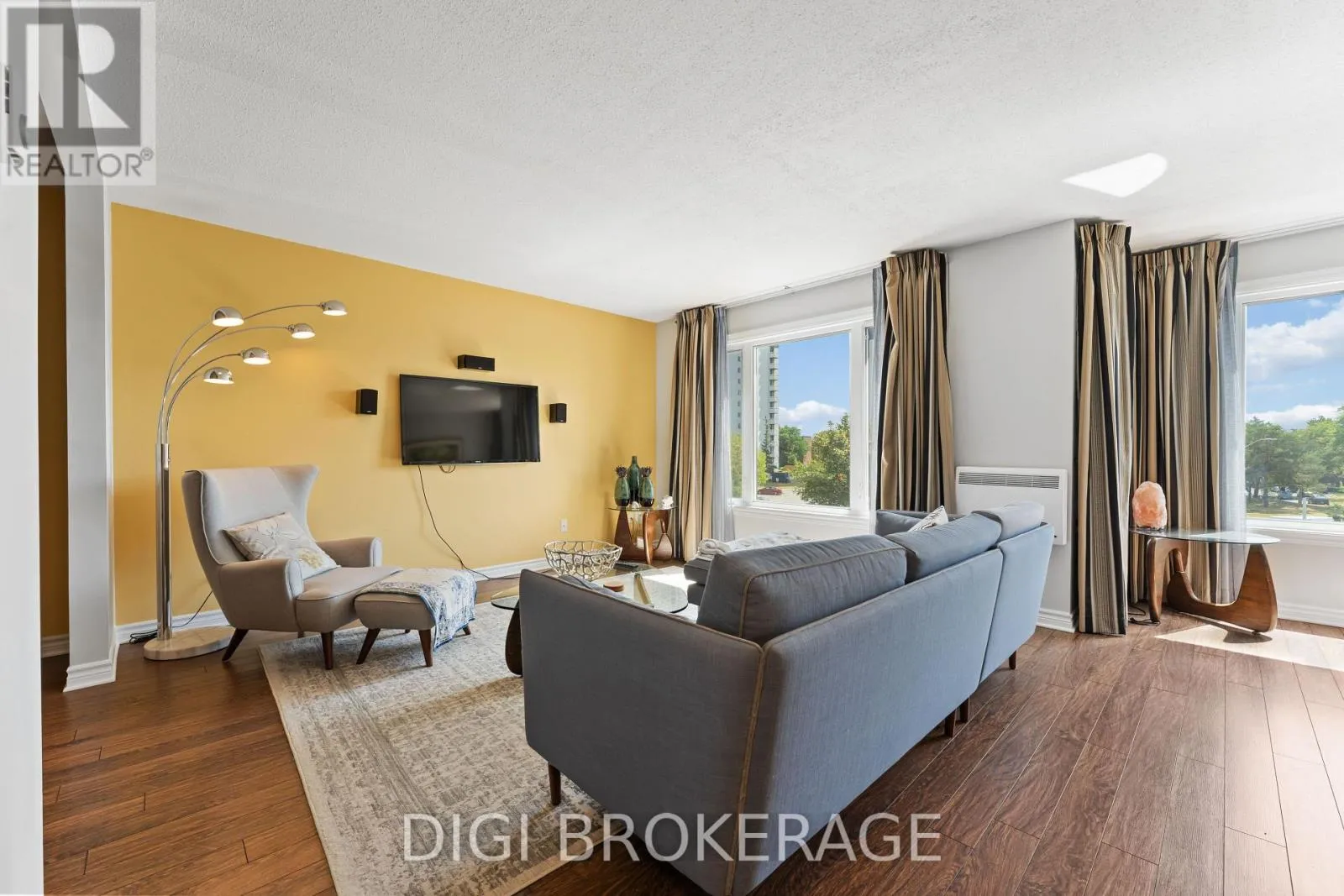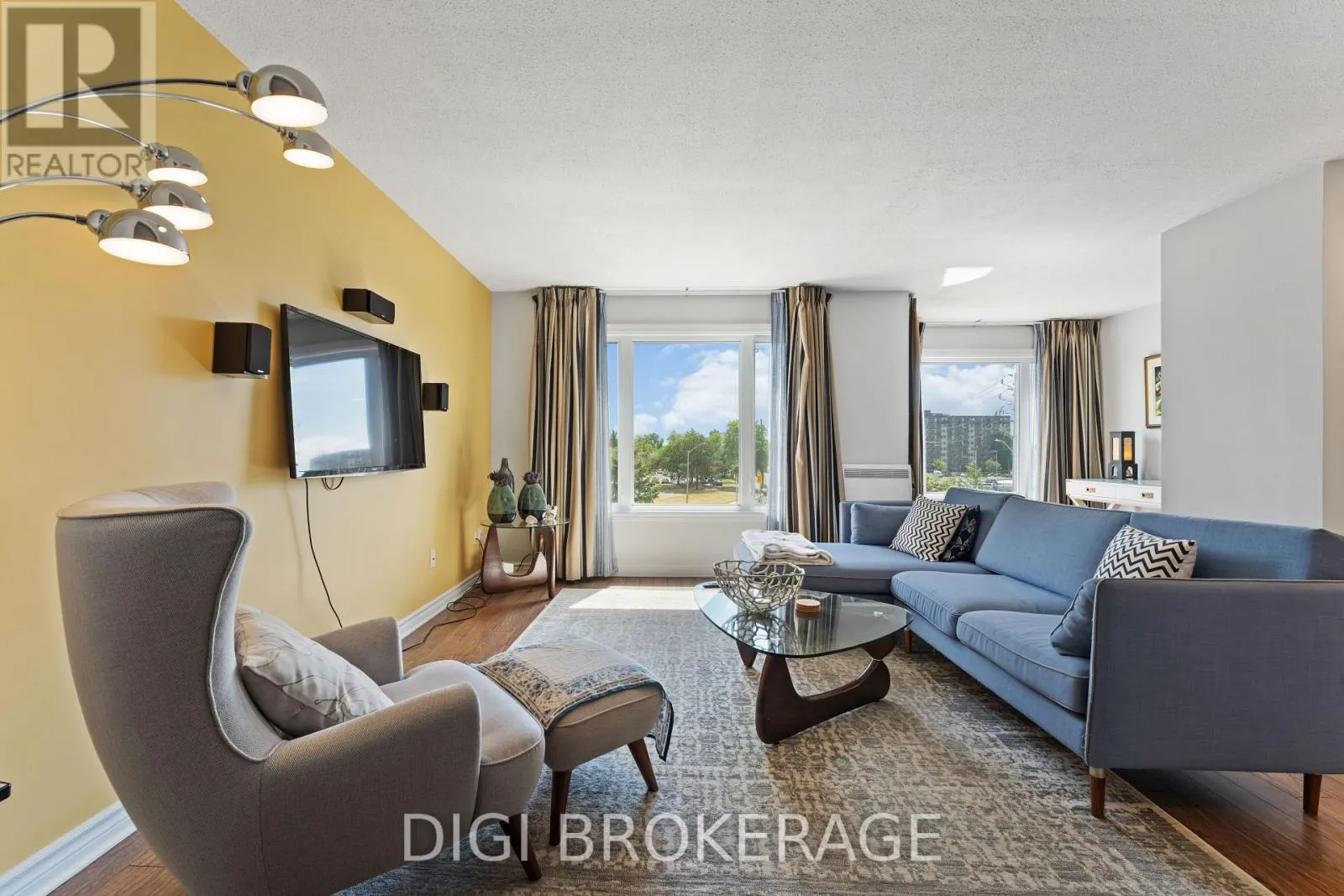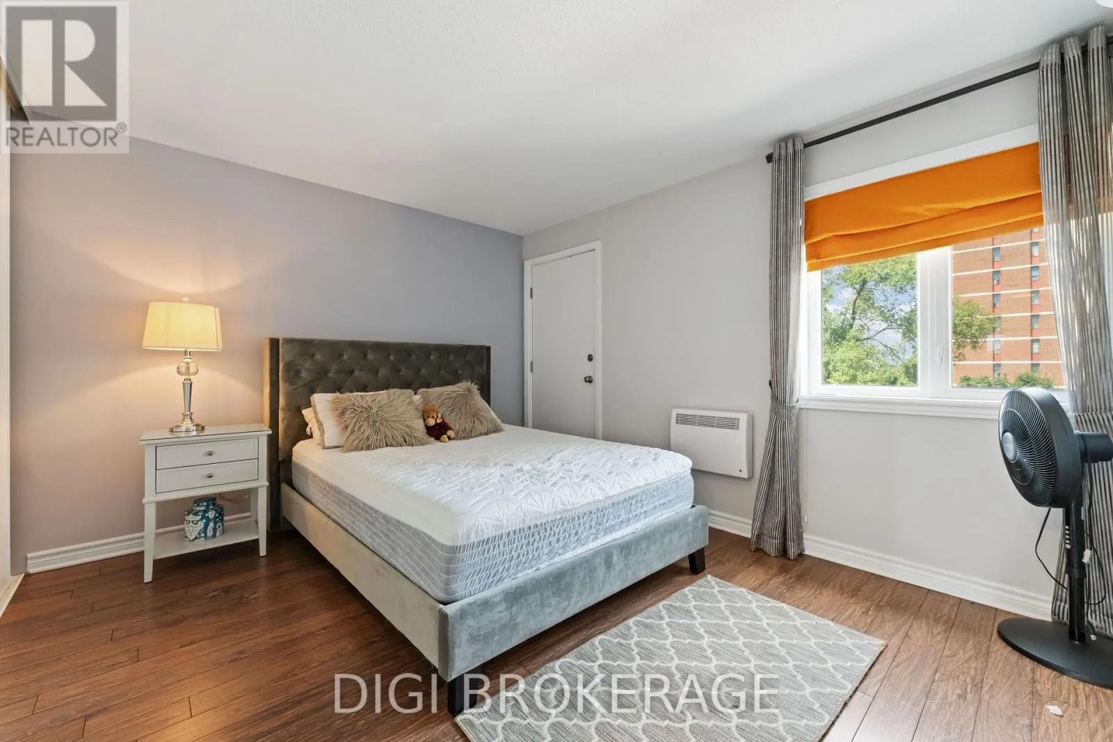 Cross Streets: St Laurent Blvd & Russel Rd. ** Directions: St Laurent South of Smyth Rd, veer right as St Laurent turns west off Russell. Look for lowrise building on your right, directly across from NE corner of Elmvale Shopping Centre. Parking in front. Welcome to Alexander Court! Why rent when you can own this bright and spacious 2-bedroom + den condo, perfectly located just steps from Elmvale Acres Shopping Centre and public transit. Situated on the top level with no direct neighbour beside you, this corner unit is filled with natural light from large, south-facing windows. Inside, you'll find a generous living and dining area, an upgraded kitchen with ample cabinetry, and a renovated bathroom. Both bedrooms are well-sized with excellent closet space. Additional highlights include in-unit laundry, mini split A/C, and updated flooring throughout. This secure, well-maintained, all-brick building is close to everything you need: groceries, pharmacy, banks, library, restaurants, LCBO, Starbucks, hospitals, and easy highway access. One parking space is conveniently located at your front door, with visitor parking available. Condo fees include water and sewer. A fantastic value in a prime location - this is one you won't want to miss! (id:27476)