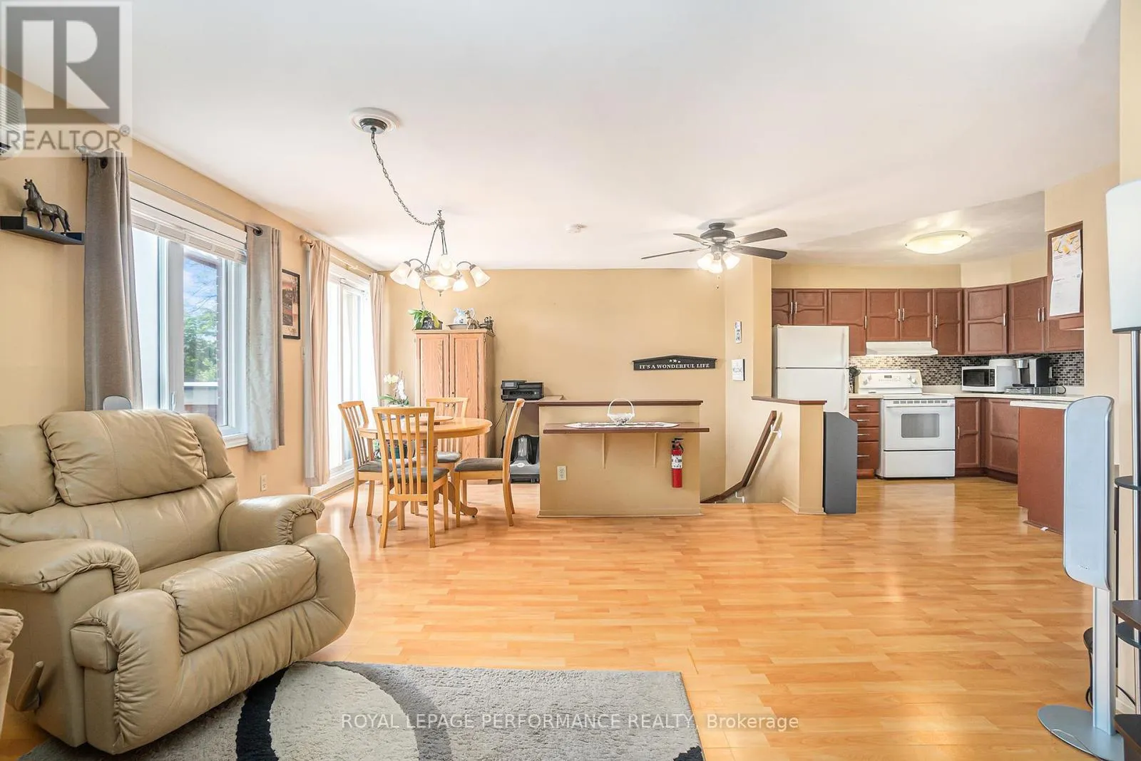 Cross Streets: Bottriell Way & Charlemagne Blvd. ** Directions: From the 174, exit Tenth Line Rd, head south, turn left onto Charlemagne Blvd, left onto Bottriell Way, left onto Canteval Terr, right onto Marsala Cr, then right onto Cabaret Ln. Experience the remarkable convenience and comfort of Club Citadelle, a one-of-a-kind condominium community designed for a resort-style living experience. This well-maintained 1 bed, 1 bath corner unit condo offers a thoughtfully designed layout. The kitchen features generous storage and counter top space, while the open-concept living and dining area provides plenty of natural light along with direct access to your private balcony. A spacious primary bedroom and 4-piece bath complete the main level. The finished lower level adds valuable living space with a generous family room and a dedicated laundry area combined with a 2-piece bath. Residents of Club Citadelle enjoy an impressive selection of amenities including an outdoor pool, exercise room, party room, tennis court and more. Perfectly situated, this home is merely steps away from shopping centers, recreational facilities, schools, and public transit, providing you with effortless access to all your essentials. (id:27476)