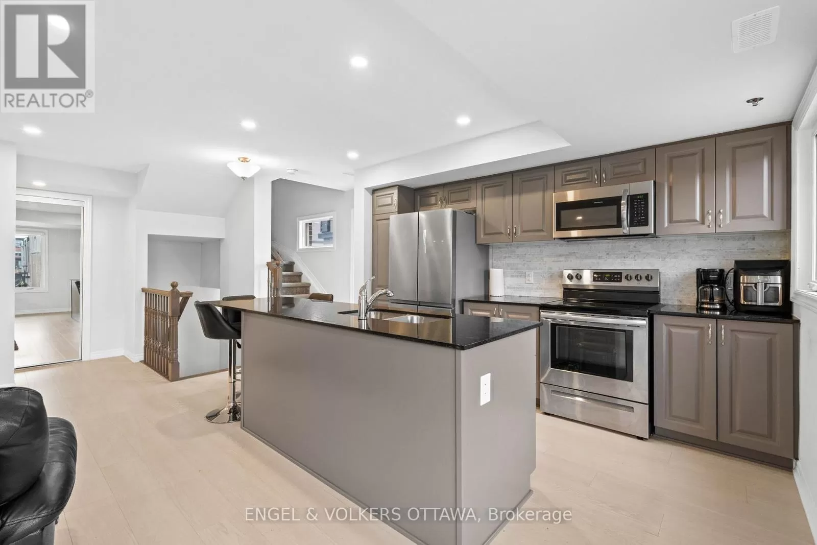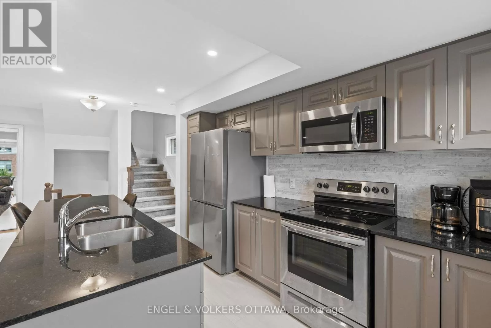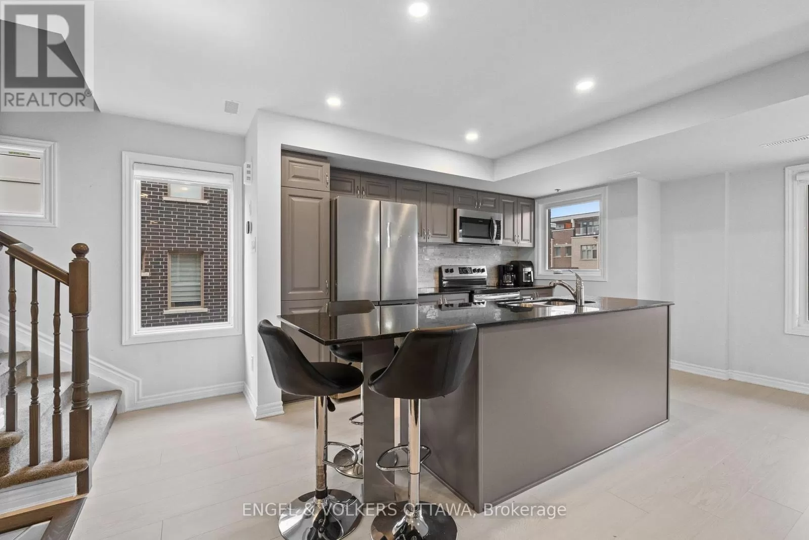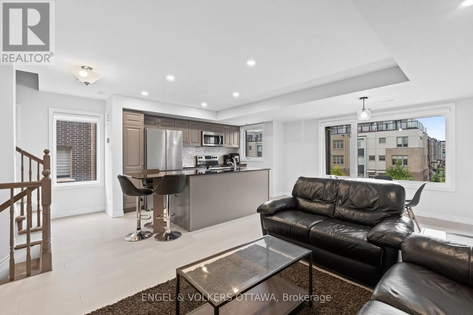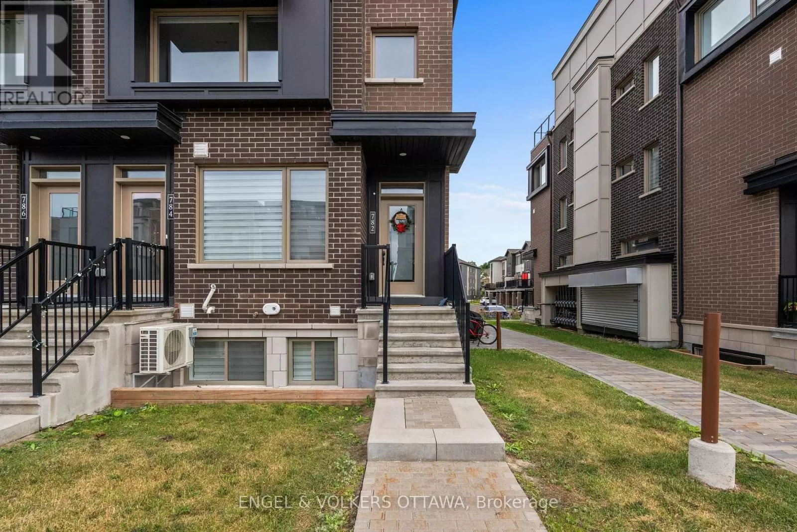 Head northwest on Wanaki Rd. then turn left onto Mikinak Rd /// Head east on Hemlock Rd toward Moses Tennisco St, then turn right onto Wanaki Rd, then turn right onto Mikinak Rd. Welcome to 782 Mikinak Road, a stylish stacked condo with a rooftop terrace in Wateridge Village. This home was built in 2021 with $20,000 in upgrades and offers over 1,200 sq. ft. of thoughtfully designed living space in one of Ottawa's newest, most connected, and vibrant neighbourhoods. From the entry, the stairs lead to the modern kitchen, complete with sleek cabinetry, granite countertops, stainless steel appliances, a stylish backsplash, and a large central island with seating. Wide windows and recessed lighting fill the space with natural light, flowing seamlessly into the adjoining dining and living areas, which are enhanced by neutral finishes and light-toned flooring. Upstairs, the primary suite offers oversized windows, a glass-panel balcony, and a modern ensuite featuring a wide vanity, a full wall mirror, and a glass walk-in shower with tiled surround. A well-sized second bedroom provides flexibility for guests, family, or a home office, while a centrally located laundry closet with a stacked washer and dryer adds everyday convenience. The third level elevates this home further with a bright office nook and direct access to a spacious private rooftop terrace. Located just steps from parks, the Ottawa River pathways, and plenty of greenspace, and minutes from the Montfort Hospital, NRC, and downtown core - this offers convenience and urban accessibility while being surrounded by nature! (id:27476)