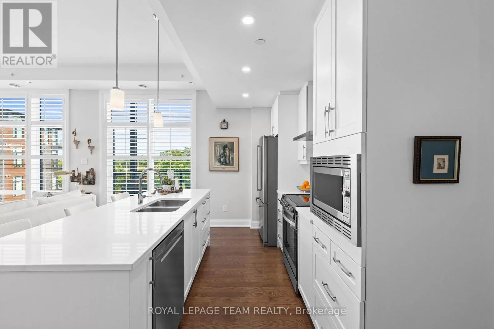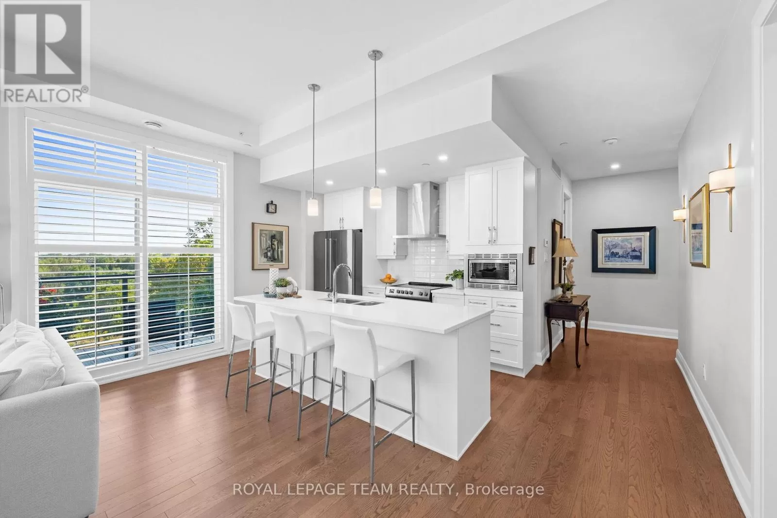 Cross Streets: Cortile Pvt / Limebank Rd. ** Directions: Hunt Club Road and south on Limebank. Turn right on Cortile Pvt. Building #110 on right side. Visitors parking on left side in front of building. Welcome to 110 Cortile Private, Unit #301- offering all the comfort of a spacious home with the ease of condo living. In this boutique building of only 16 residences, you'll enjoy peace, privacy, and a welcoming community. This bright 2-bedroom, 2-bath suite features well-designed living space, thoughtfully crafted for everyday comfort and easy entertaining. Ten-foot ceilings and expansive windows, dressed with custom California shutters, fill the rooms with natural light while framing calming views of surrounding greenspace. Hardwood and tile flooring throughout add timeless elegance and low-maintenance practicality. The kitchen is a true centrepiece with quartz counters, a large island with breakfast bar, newly upgraded stainless-steel appliances, and quality cabinetry. The primary suite offers a generous walk-in closet and spa-inspired ensuite with added custom cabinetry for extra storage. A flexible second bedroom/den and full bath provide space for guests, hobbies, or a home office. An oversized in-suite storage room, plus two additional storage lockers, ensure theres room for everything you love. Step onto your private balcony to enjoy fresh air and a connection to nature, or take advantage of thoughtful conveniences such as heated underground parking, bike storage, and even a dog washing station. Here, every detail is designed to make life simpler. Walking paths are at your doorstep, the new LRT station, restaurants, and shops are a short stroll away. More shopping, the airport, and even downtown are only minutes from home. Built by Urbandale and known as the Alora, this enclave of four buildings is nestled in a natural setting, blending modern convenience with a sense of retreat. Warm, inviting, upgraded and carefully maintained, this home is a wonderful opportunity for those looking to downsize in style while still enjoying space, light, and comfort. Book your viewing today! 301-110 Cortile Private may be your new address! (id:27476)