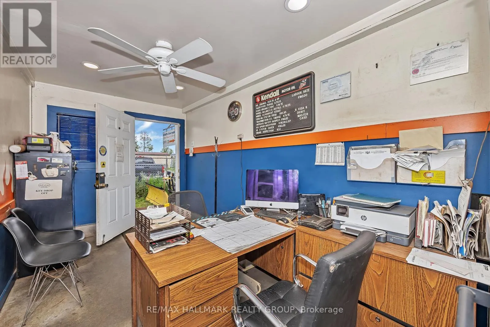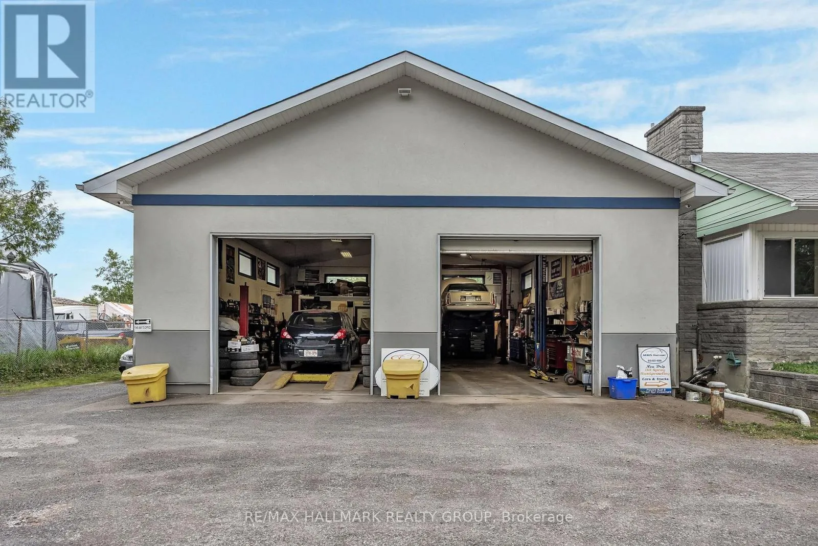 Cross Streets: Albion Road and Leitrim Road. ** Directions: West of Leitrim Road/Albion Road S. This modern commercial garage (built in 2012) offers 1,584 sq. ft. of functional space, ideal for tradespeople, contractors, or small business owners. The building features three bays, an office, storage room, bathroom, dual furnaces, and 220amp electrical service. A minimum 24-month lease is required, with the tenant responsible for gas and hydro while water is included. Potential zoning uses may include an automobile dealership, automobile rental establishment, repair shop, heavy equipment and vehicle sales/rental/servicing, light industrial uses, or warehouse. Tenant to conduct their own due diligence regarding permitted uses. This versatile and well-equipped space is ready to support a variety of business needs. (id:27476)