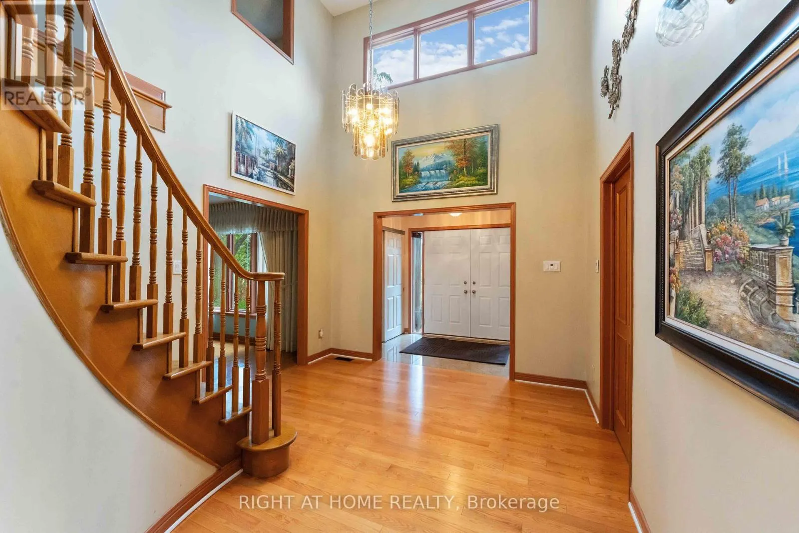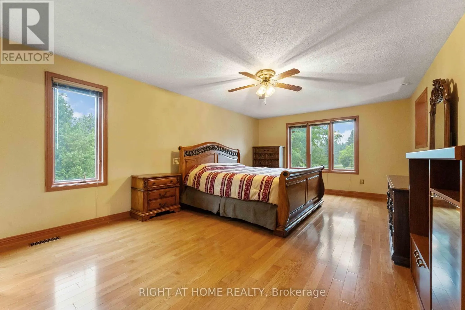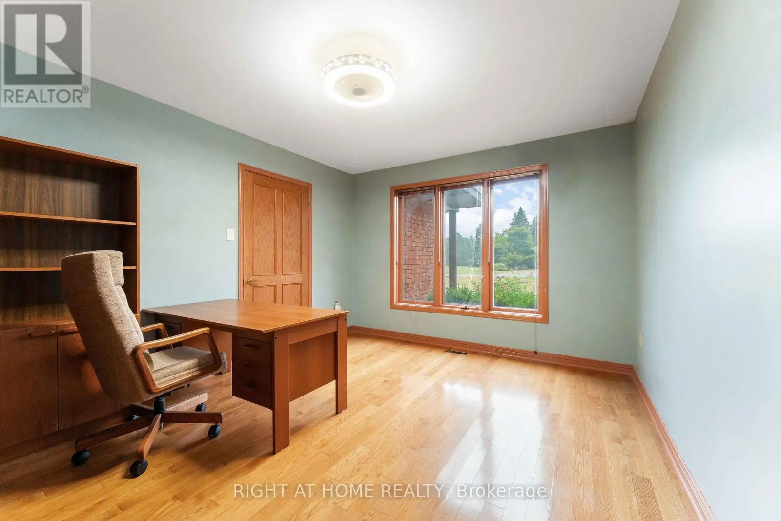 Cross Streets: Cedarhill. ** Directions: Cedarview to Cedarhill to Muirfield. Impeccable custom-built home with over 3200 sq/ft of living area situated on over 1 acre of serene privacy in the prestigious Cedarhill Estates. This exceptional property offers the perfect balance of luxury, comfort, and convenience just minutes from shopping, amenities, and Highway 416. From the moment you arrive, you'll be captivated by the beautifully landscaped front and back yards, framed by mature trees that provide tranquillity. Step inside to a welcoming foyer that opens to a spacious office/den with stunning views of the front yard. The main level features generous living and dining areas, perfect for entertaining, and an open-concept gourmet kitchen with two pantries, abundant cabinetry, and an inviting eating area overlooking a large family room. Oversized windows flood the home with natural light, highlighting the gleaming hardwood floors throughout the main and upper levels. A graceful circular staircase leads to the upper floor, where the oversized primary suite boasts a luxurious 5-piece en-suite. Three additional large bedrooms and a family bath complete the upper level. The expansive basement offers endless possibilities. Experience the perfect retreat in Cedarhill Estates, where luxury meets lifestyle and every day feels like home. (id:27476)