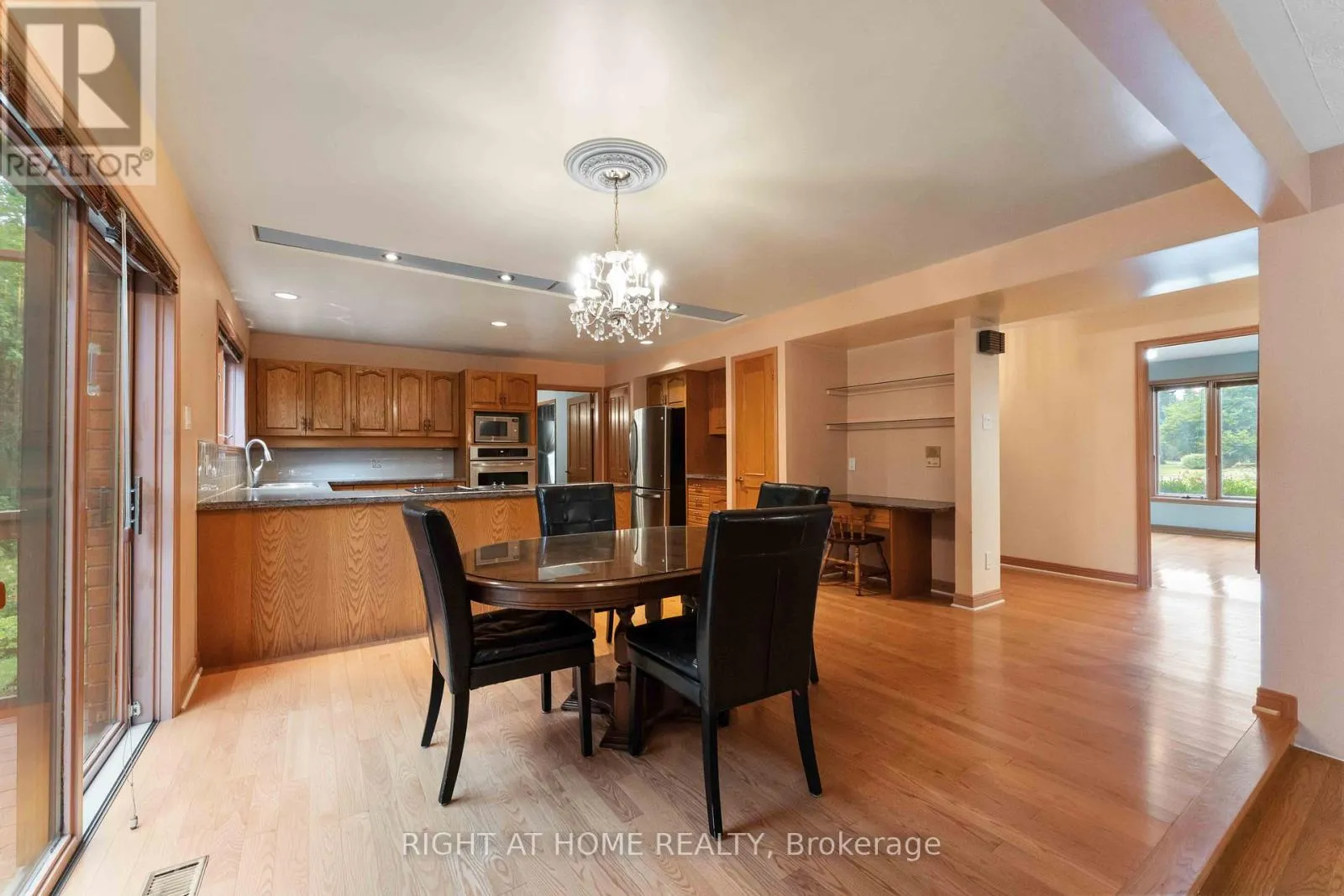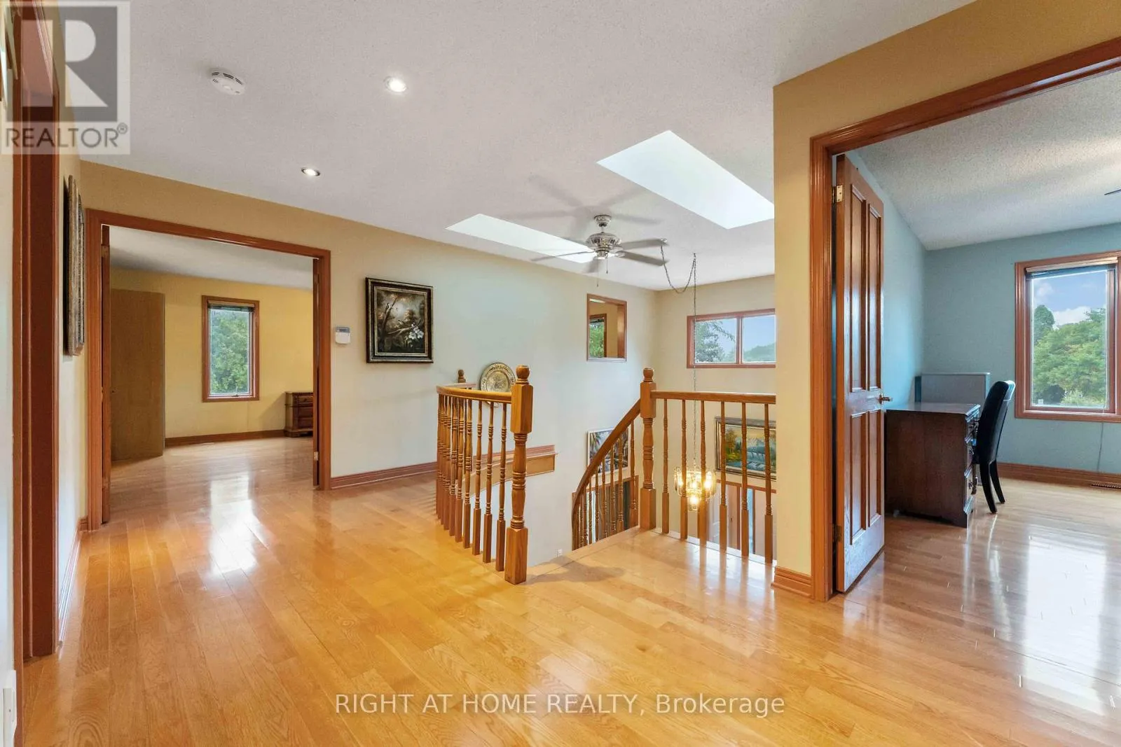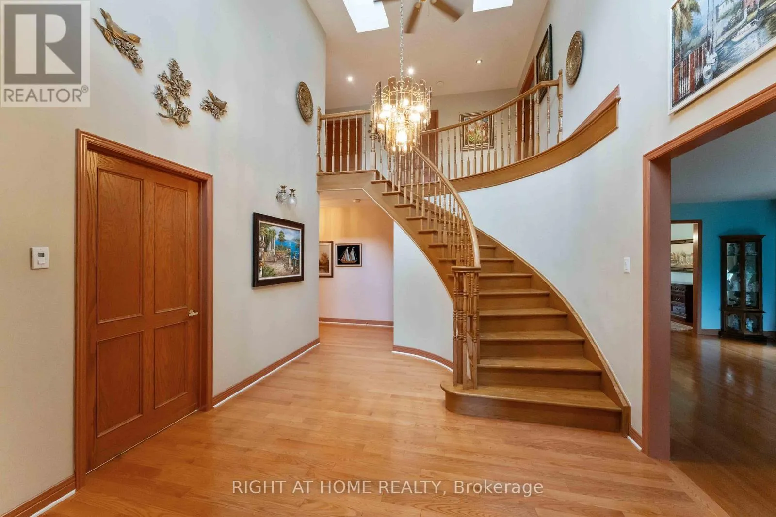 Cross Streets: Cedarhill. ** Directions: Cedarview to Cedarhill to Muirfield. Impeccable custom-built home with over 3200 sq/ft of living area situated on over 1 acre of serene privacy in the prestigious Cedarhill Estates. This exceptional property offers the perfect balance of luxury, comfort, and convenience just minutes from shopping, amenities, and Highway 416. From the moment you arrive, you'll be captivated by the beautifully landscaped front and back yards, framed by mature trees that provide tranquillity. Step inside to a welcoming foyer that opens to a spacious office/den with stunning views of the front yard. The main level features generous living and dining areas, perfect for entertaining, and an open-concept gourmet kitchen with two pantries, abundant cabinetry, and an inviting eating area overlooking a large family room. Oversized windows flood the home with natural light, highlighting the gleaming hardwood floors throughout the main and upper levels. A graceful circular staircase leads to the upper floor, where the oversized primary suite boasts a luxurious 5-piece en-suite. Three additional large bedrooms and a family bath complete the upper level. The expansive basement offers endless possibilities. Experience the perfect retreat in Cedarhill Estates, where luxury meets lifestyle and every day feels like home. (id:27476)