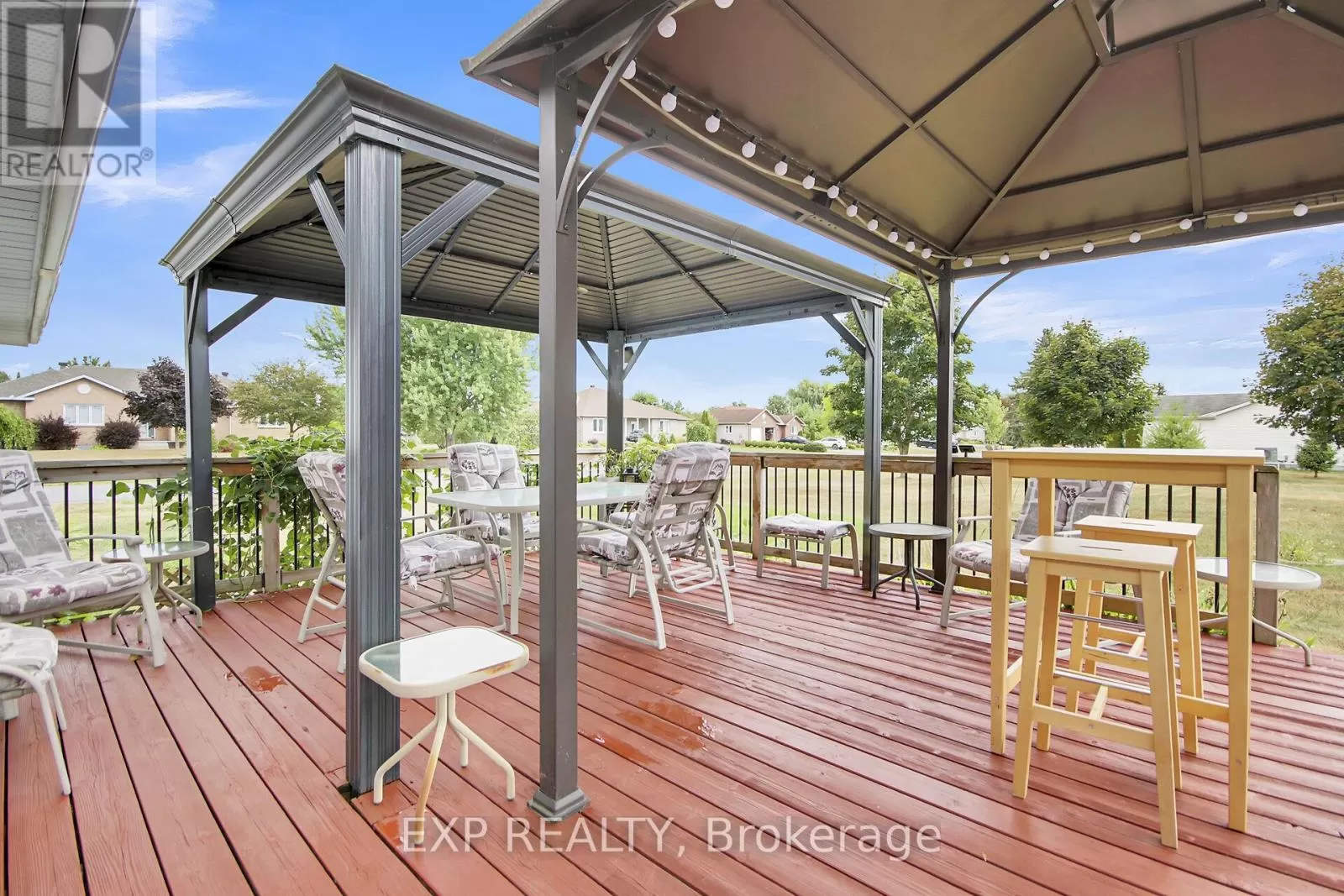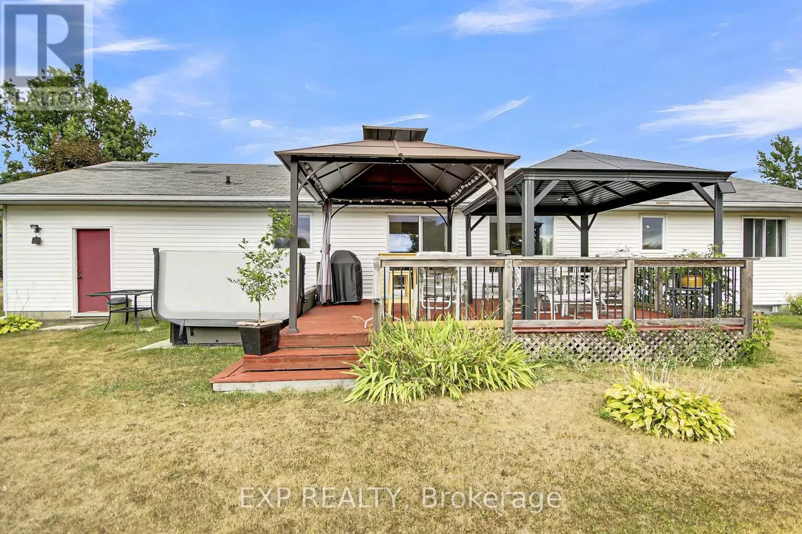 Cross Streets: Danbury Way/Waterbury Lane. ** Directions: Take Prince of Wales south, towards North Gower. Just after the North Gower sign, turn right onto Danbury way, then Right onto Waterbury. Welcome to this charming 3 bed /2 bath bungalow situated on a spacious CORNER LOT in a quiet, family-friendly neighborhood. This home offers over 1400 sqft of finished main floor living space, plus a partially finished basement with exceptional potential. The main floor features three bedrooms, including a generously sized primary bedroom with walk-in closet and ensuite bathroom. One of the secondary bedrooms is currently set up as a home office, offering flexibility to suit your lifestyle. The inviting living room with a cozy fireplace is perfect for relaxing or entertaining. The kitchen is thoughtfully laid out, featuring ample cabinet space, stainless steel appliances, and a sunny dining area with views of the backyard. Step outside and you'll find a true highlight of the property an expansive, multi-level covered deck that offers plenty of space for outdoor dining, lounging, or entertaining. The hot tub is perfectly positioned to overlook the beautifully maintained yard, with mature trees in a serene natural setting. This oversized corner lot offers exceptional outdoor living potential, with room for gardening, play, or simply relaxing in a peaceful environment. The attached two-car garage provides convenient access to a mudroom and laundry area. The partially finished basement includes a utility room and open space that's ready to be customized whether as a rec room, workshop, or additional storage. This is the perfect place to enjoy both indoor comfort and outdoor living don't miss your chance to call it home. (id:27476)