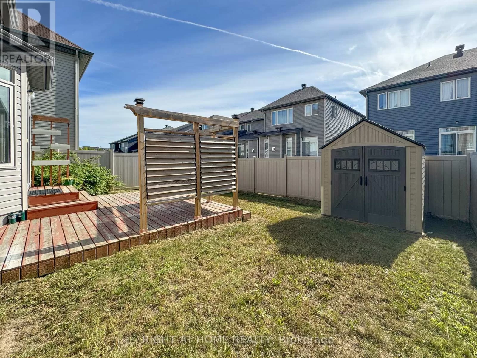 Cross Streets: Helene Campbell Rd. ** Directions: 416 to Fallowfield/Strandherd, left on Helene Campbell, right on Peerless. Location ! Location ! This contemporary 4-bedroom home with a double garage and fully finished basement offers the perfect blend of comfort, style, and convenience. The main floor welcomes you with a spacious foyer, elegant dining room, and a bright open-concept kitchen featuring granite countertops, ample pantry space, and seamless flow into the cozy living room with a gas fireplace. The fully fenced backyard includes a storage shed, ideal for family living and outdoor enjoyment. Upstairs, youll find four generously sized bedrooms, including a luxurious primary suite with a walk-in closet and a 5-piece spa-like ensuite. The finished basement with a 2-piece bath provides versatile space for a 5th bedroom, home office, or recreation area. Situated in a prime location with easy access to HWY 416, this home is just minutes from Costco, schools, transit, shopping, restaurants, and only steps to a water park and playground making it an exceptional opportunity for families and professionals alike. (id:27476)