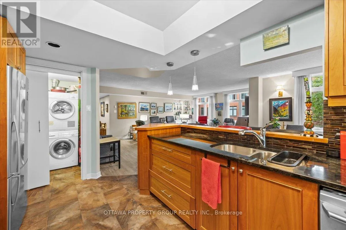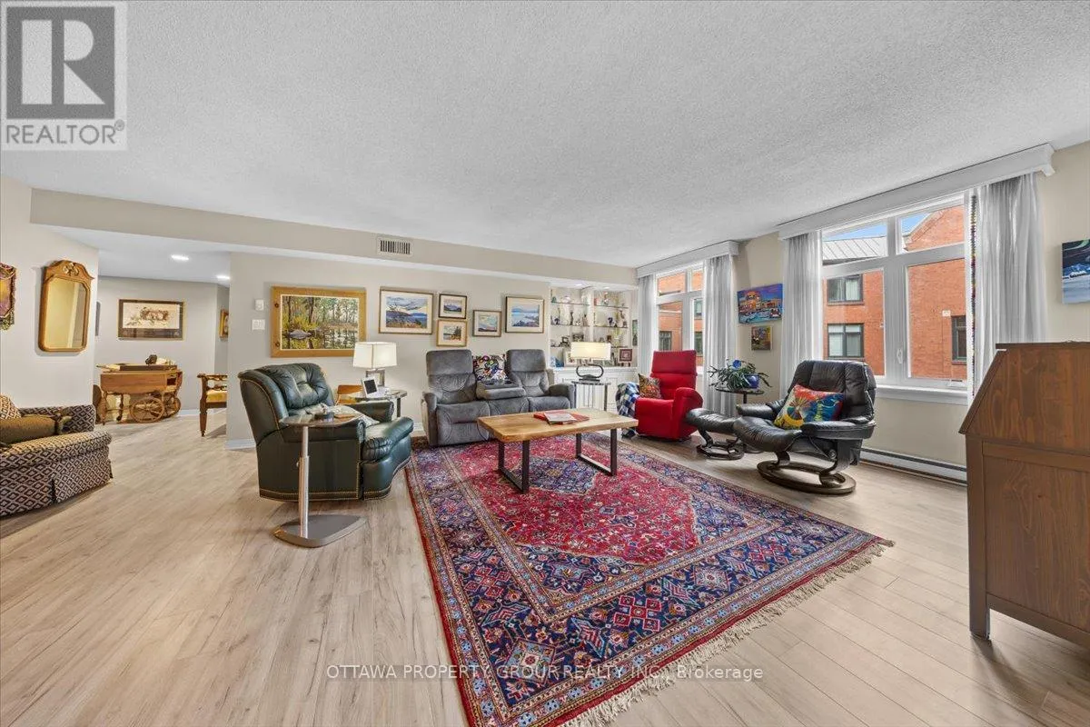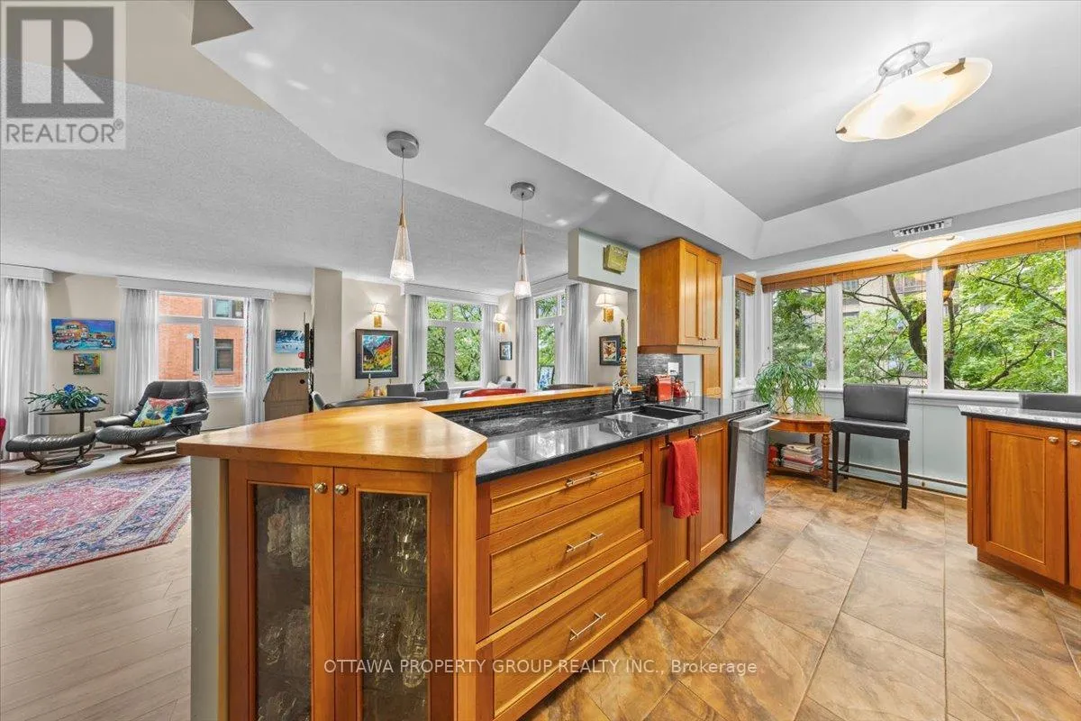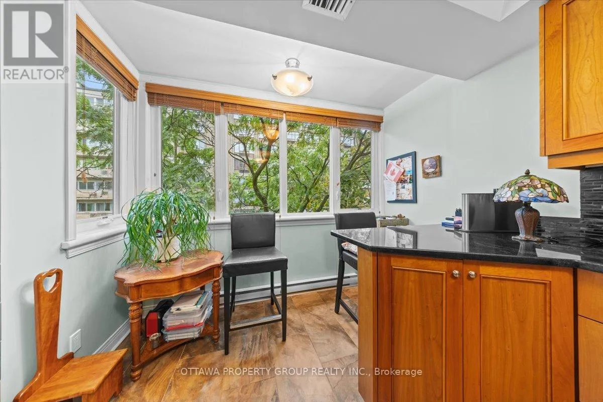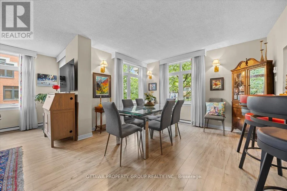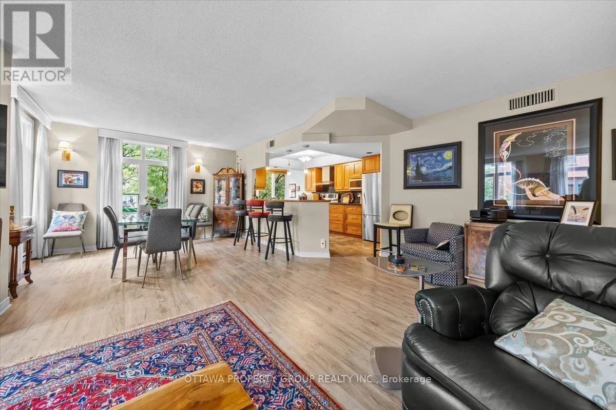 Cross Streets: Elgin. ** Directions: Elgin to Somerset. Now vacant. The unicorn of downtown condos. Units are rarely available at 215 Somerset. This 4th floor home overlooks the well landscaped courtyard with views towards Elgin Street. The long term owners take pride in maintaining all common areas as exhibited by the beautifully maintained gardens and grounds. Original floorplan was greatly modified adding more interior living space and larger primary bedroom and walk in closet. At approx. 1500 sq.ft. the main living area allows for separate themes as well as a bright dining area. The kitchen includes an eating bar as well as a further sitting area. One underground exclusive parking space as well as a spacious locker unit. Just steps from Elgin Street this building offers all required amenities within walking distance. This location has a walkability of 12 out o 10. Enjoy the Rideau Canal, historic Spark St. and of course a stroll around parliament. This building is well known for it's mature and professional owners who cooperate in maintaining all common areas. Will be vacant November 1st. Pets are not allowed with the exception of licensed medical support and emotional support animals (id:27476)