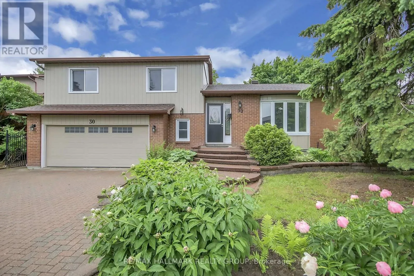Cross Streets: Brodeur and Beaufort. ** Directions: Katimavik to Beaufort, Brodeur runs off Beaufort. Lovely 3 bedroom, 3 bathroom Side Split detached home in popular neighbourhood of Katimavik/Kanata! Great location on a quiet street, close to parks, schools (including Earl of March HS), shopping amenities, nature/bike trails plus quick access to 417. Main Level features ceramic entrance with mirror closet doors + refinished hardwood flooring throughout. Features custom kitchen with white cabinetry, Grigio Wintermute granite counters, functional breakfast area with sliding doors to large deck. Spacious Family Room features brick fireplace with gas insert + sliding doors to interlock patio. Open concept living/dining room area, Main Floor laundry/powder room, inside garage access. Spacious Primary Bedroom with 3 pce ensuite bathroom featuring ceramic floors + stand up shower. The Upstairs Level also includes good sized secondary bedrooms + main bathroom. Unfinished Lower- Level features lots of storage space. Nicely landscaped front yard with interlock driveway/walkway/garden beds. Private hedged backyard features huge deck, interlock patio + storage shed. Double car attached garage with automatic door opener. Updates Include Furnace (2025), Freshly Painted (2025), Hardwood Floors Refinished (2025), Powder Room (2025), Deck (2023), Roof (2019), HWT (2018). Shows Beautifully, Great Value! (id:27476)