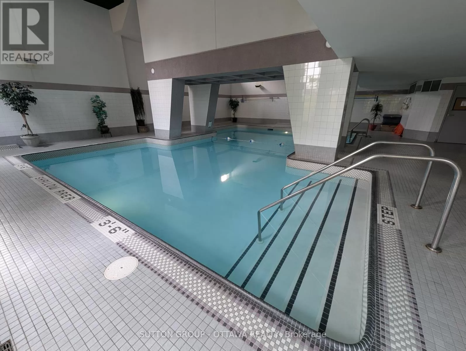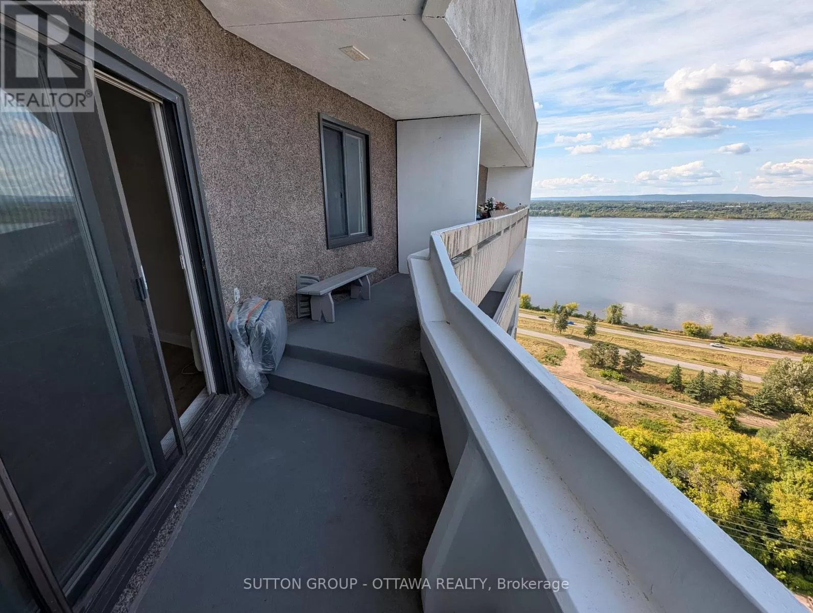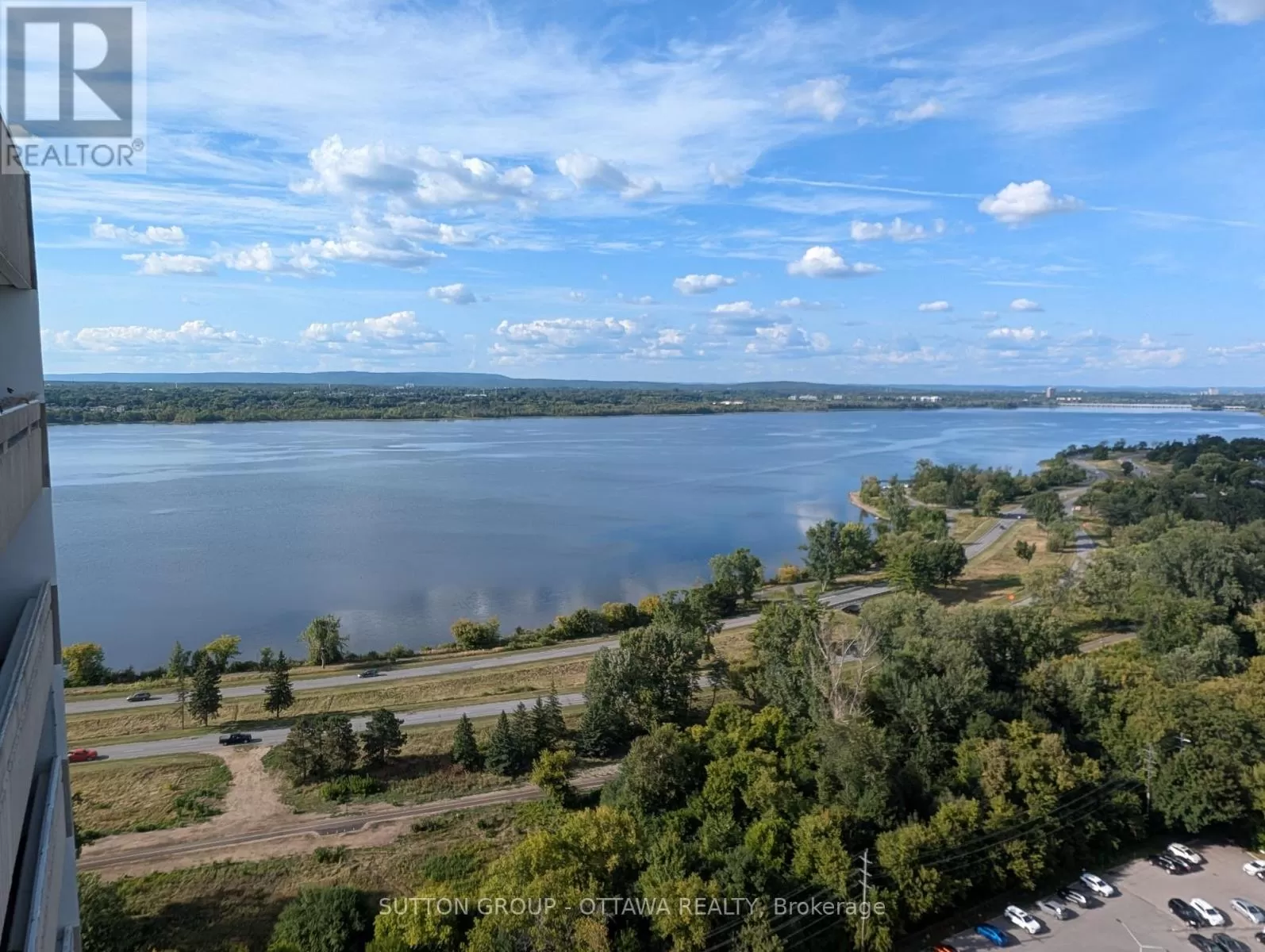 Richmond to Ambleside Welcome to Ambleside One on the top 25th floor facing NE Ottawa river and Gatineau Hills with incredible views on an oversized balcony. One bedroom with open concept living and dining rooms. Primary bedroom has extra large double door closet. Full 4 pc bathroom. Recently repainted. Condo fees include all utilities and Bell Fibe TV+Internet. Underground parking spot and storage locker. Amenities include a pool, workshop, sauna, gym, party room, and more. Ottawa river walk/bike path is nearby. The New Orchard LRT station nearing completion around the corner will be great for public transportation throughout the city. (id:27476)