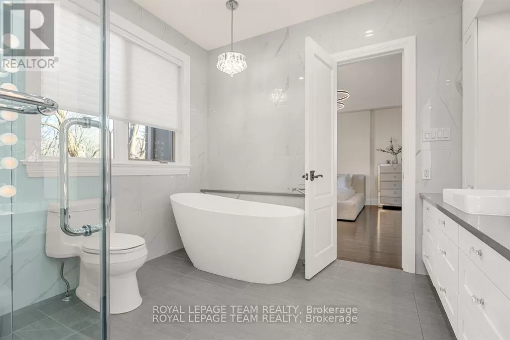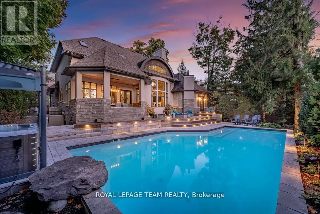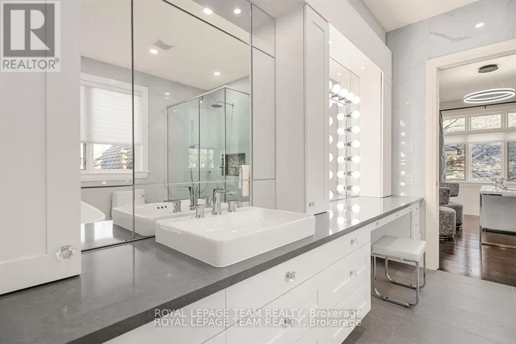 Cross Streets: Sandridge Road and Placel Road. ** Directions: East on Sandridge Road, Right on Placel Road. Visit Rockcliffe Park to discover a stunning home of stone, arched windows, stately pillars, double garage, and magnificent peaks. Step into a spectacular main floor of high ceilings, walls of windows, brilliant sunlight, splendid fixtures, elegant hardwood, and gleaming tile. Work from home, host guests in a sunken dining space and curl up in a grand living room. A luxe eat-in kitchen presents high-end appliances, pantry, custom cabinetry, island, and nearby powder room and mudroom. Delight in a secluded main floor primary suite with lavishly appointed ensuite and two walk-in closets. Staircases lead up to three lofty bedrooms, two full bathrooms and laundry. Backyard features a gunite pool, hot tub, decking and gardens. An expansive lower level offers endless amenities including bedroom with ensuite. Walk to Ottawa's finest schools. Participate in indoor and outdoor activities. Commute Aviation Parkway. Drive minutes to downtown and Quebec. Shop Beechwood Avenue. See it today. (id:27476)