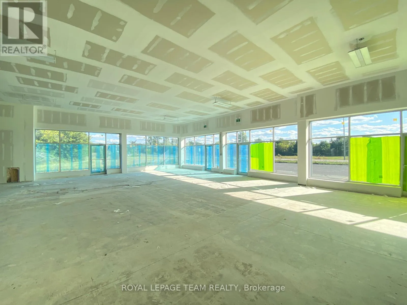 Cross Streets: Corner of Dunrobin Road and Thomas A. Dolan Parkway. ** Directions: From Kanata, head northwest on March Road. Turn right onto Dunrobin Road. Prime double unit leasing opportunity awaits you in this popular community hub. On site parking available. This property is front facing a major road to provide maximum exposure for your business. Zoned VM5 (160r) provides a vast number of business possibilities. Additional rent to be estimated. This end unit space would be perfect for a restaurant/pub as it includes additional outside patio area. (id:27476)