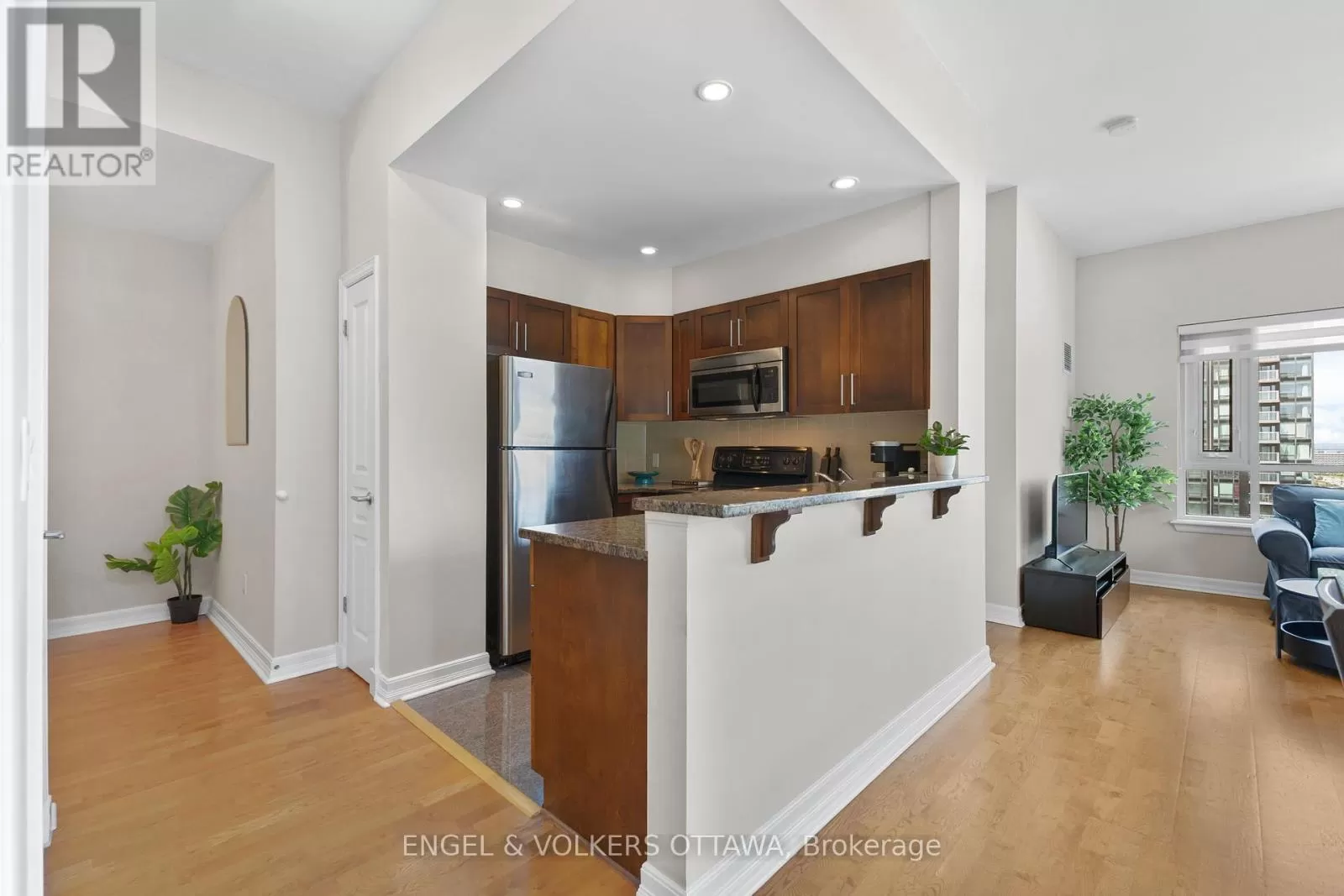 Cross Streets: Besserer Street & Cumberland Street. ** Directions: Head northwest on Bank St/Ottawa Regional Rd 31 toward Queen St & Continue to follow Slater St. Follow through to Mackenzie King Bridge & follow onto Waller St. Turn right onto Besserer St. Welcome to 200 Besserer Street Unit 1211, located in the desirable Galleria building in the heart of downtown Ottawa. This bright and spacious 2 bed, 2 bath + den upper floor corner unit features an open-concept layout with hardwood floors, large windows, and abundant natural light. The modern kitchen is equipped with granite countertops, stainless steel appliances, and a convenient breakfast bar, flowing seamlessly into the dining area with direct access to a private balcony. The inviting family room provides the perfect setting for cozy evenings and movie nights. The versatile den is ideal as a home office or reading nook. The primary bedroom offers generous closet space and a 3-piece ensuite. A second bedroom, full bathroom, and in-unit laundry complete the space. Underground parking and a storage locker are included, along with access to fantastic building amenities: gym, indoor pool, sauna, party room, and outdoor BBQ patio. Just steps to the Rideau Centre, University of Ottawa, Parliament Hill, restaurants, transit, and the Ottawa Riverthis condo offers the perfect blend of comfort, convenience, and urban living! (id:27476)