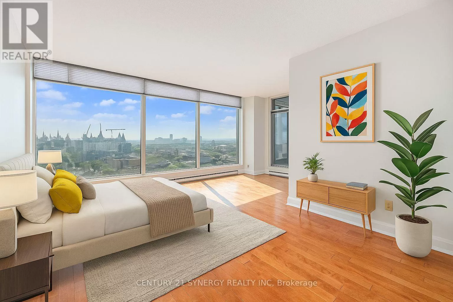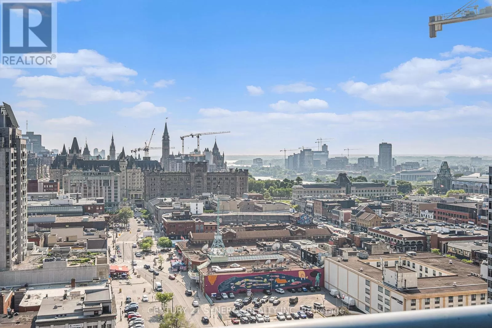 Cross Streets: Dalhousie and Cumberland. ** Directions: Dalhousie St right onto George St. Building on your right side. Rarely Offered 2 Bedroom, 3 Bathroom Condo at The St. George. Welcome to this spacious DOUBLE ensuite bedroom and sun-filled condo in the heart of the city, offering over 2,000 sqft of modern living. Beautiful hardwood floors throughout and expansive west and south facing windows, natural light pours into every corner of this home. The kitchen features granite countertops, stainless steel appliances, abundant pot lighting, a large pantry, and a convenient coffee nook. Step onto the open sizable balcony to enjoy stunning views of Ottawa. The oversized primary bedroom boasts full-length, UPGRADED SOUNDPROOFING windows, greatly reducing the outdoor disturbances, a walk-through walk-in closet, offering a large soaker tub with double sink vanity. The second bedroom includes its own full ensuite and access to the ENCLOSED balcony which was an additional and expensive improvement paid by the owner. The balcony can be finished as an additional interior room. This unit features top-tier amenities including 24-hour security, an underground parking with a PRIVATE storage room, guest suite, fitness centre, indoor pool, saunas, and a landscaped 3rd-floor patio with gas BBQ and covered dining area. (Some pictures virtually staged) (id:27476)