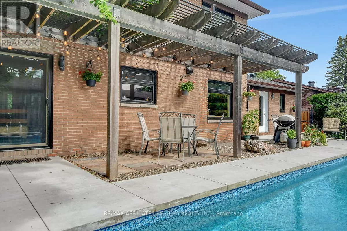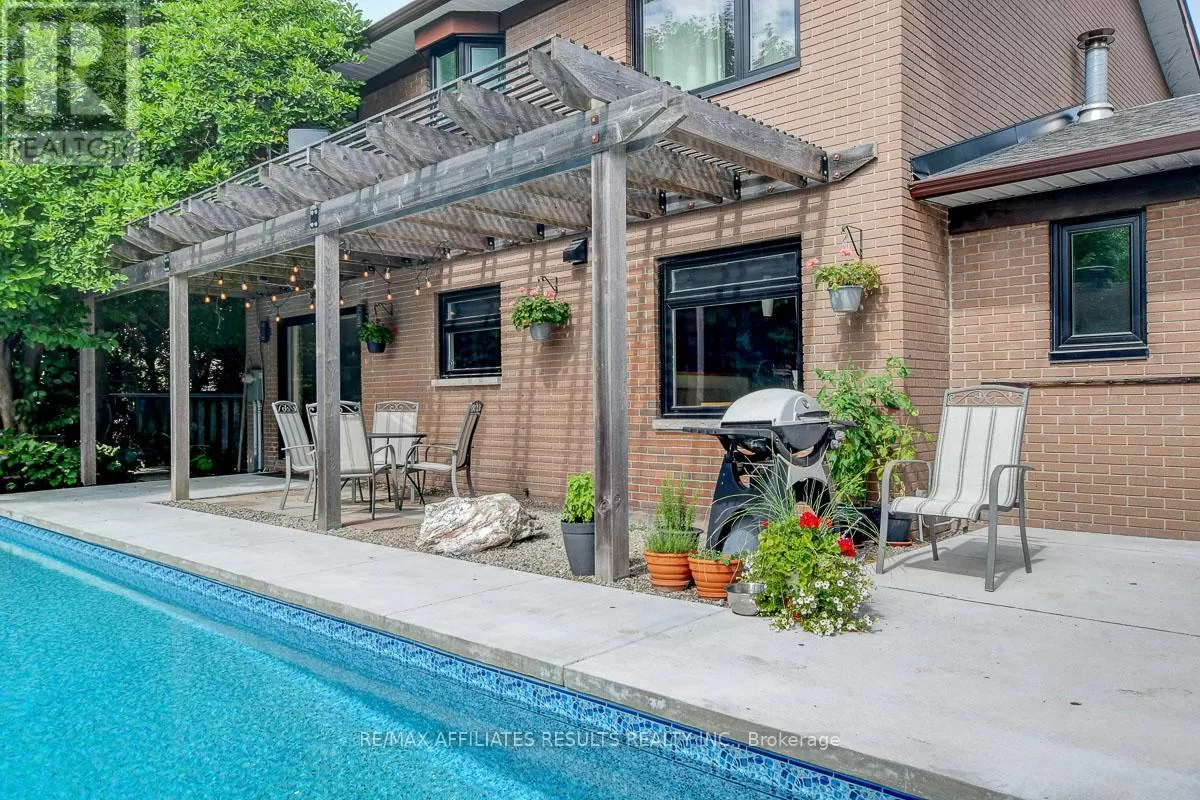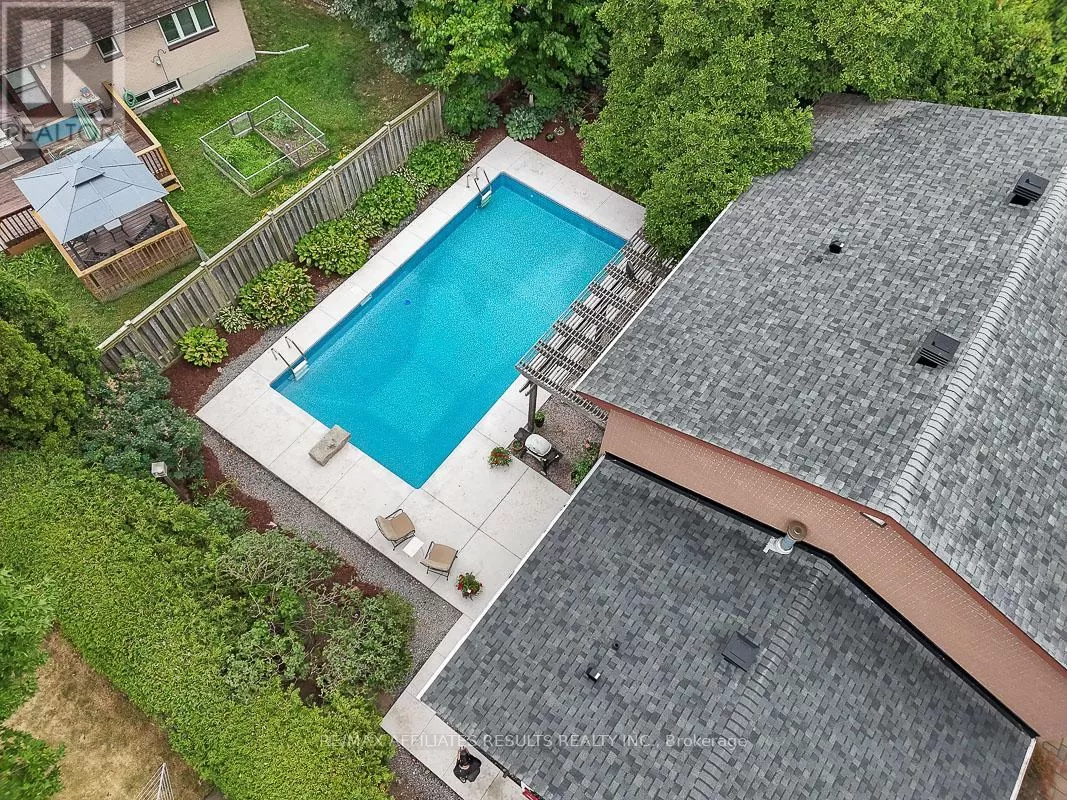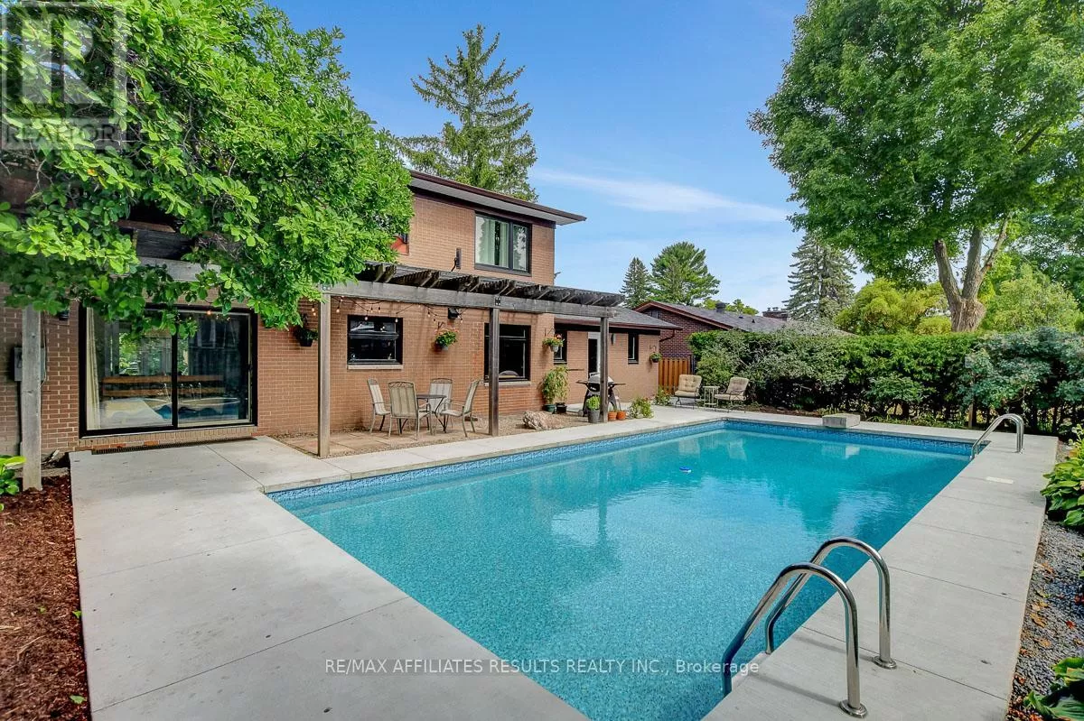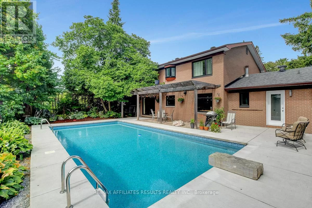 Cross Streets: Tiffany Crescent & Leacock Dr. ** Directions: From March Road, turn west onto Campeau Dr, then right onto Teron Road. Turn left onto The Parkway, left on leacock Dr, left on Tiffany Crescent. Welcome to 5 Tiffany Crescent, a beautifully maintained 4-bedroom, 4-bathroom family home in the heart of Beaverbrook. Tucked on a quiet crescent, this property offers the perfect blend of comfort, function, and style, inside and out. The landscaped front yard, surfaced driveway (parking for 4), and 2-car garage set the tone. Inside, hardwood floors flow throughout the main level. The formal living room is anchored by a wood-burning fireplace and a sunny south-facing bay window. The dining room easily seats six and opens directly onto the backyard patio, where a pergola-covered lounge area overlooks the in-ground pool (2023), deck, mature trees, and beautifully landscaped gardens: your private oasis. The updated kitchen boasts polished concrete counters, stainless steel appliances, a gas range, pot & pans drawers, bar fridge, cork floors, and the handy breakfast nook. A cozy family room with gas fireplace, built-in desk, and custom shelving with accent lighting completes the main floor, along with a full 3-piece bath, perfect for running in from the pool. A sunny office completes the main level, offering plenty of space if you're working from home. Upstairs, the primary suite features hardwood floors, a massive closet, and spa-like ensuite with heated floors, marble tiling and a walk-in shower. Three more spacious bedrooms share a sleek 5-piece bath with double sinks and floor-to-ceiling tile. The finished lower level adds a self-contained nanny/in-law suite with a full kitchen, breakfast bar, living room, office/potential bed, den and 4-piece bath, alongside laundry with utility sink and generous storage. Steps from schools, parks, trails, libraries, and quick access to Highway 417, this home has been lovingly cared for and is ready for its next chapter. Don't miss the chance to make it yours. Book a private showing today! Updates: Windows 2023, Roof 2022, Pool and deck 2023, Furnace and AC 2012. (id:27476)