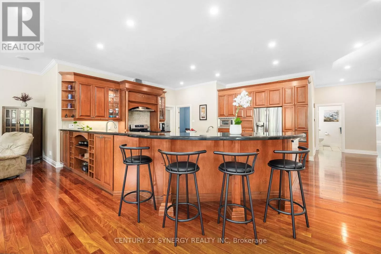 Cross Streets: Wilhaven Street. ** Directions: Take Old Montreal Road to Cox Country Road. To Wilhaven Dr. to Georges Vanier Dr. This luxurious multi-generational executive bungalow in prestigious Du Gouverneur Estates is designed to impress at every turn. Spanning over 4,200 sq.ft. above grade plus a fully finished lower level, this one-of-a-kind home offers a rare blend of elegance and versatility. Set on a private 1.97-acre lot on a quiet cul-de-sac, this residence features a 3-car oversized garage, expansive principal rooms, and high-end finishes including hardwood, marble, and tile flooring. The grand entrance welcomes you into a stunning great room with both a sitting area with a gas fireplace, a formal dining room and soaring 15-ft ceilings. The chef's kitchen is a dream, complete with granite countertops, a raised breakfast bar, an oversized island, stainless steel appliances, an abundance of cabinetry, and a walk-in pantry. The kitchen overlooks a spacious family room and breakfast nook filled with natural lighting. With rolldown hurricane shutters, you can easily convert the family to a movie theatre anytime of the day. The space also leads to a 3-season screened-in sunroom with stamped concrete overlooking the backyard oasis with a 24 foot above-ground pool. The primary bedroom features a 5-piece ensuite and spacious walk-in closet. The other three bedrooms each have their own ensuite and two feature walk-in closets. Also included on the main floor are an office and a large mudroom with laundry. The finished lower level provides an impressive 290sq.ft. recreation room, additional office/flex room, tons of storage, and most importantly, a legal in-law suite with its own private entrance. The suite spans 1,700+ sq.ft., offering 1bedroom + den, full kitchen with pantry, living room, bathroom, laundry, and storage making it perfect for extended family, guests, or as an income-generating opportunity. A whole home standby generator offers peace of mind. This home located just minutes east of Orleans truly has it all - space, style, and flexibility for todays modern lifestyle. (id:27476)