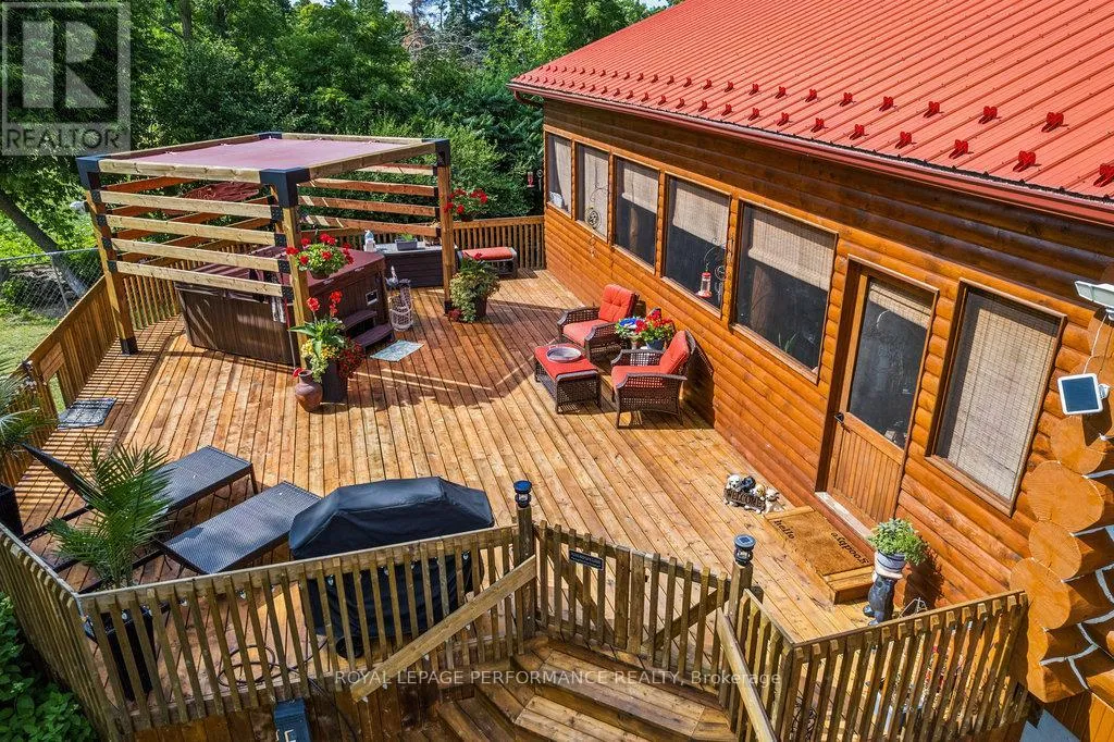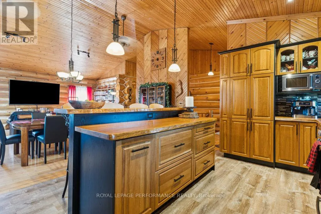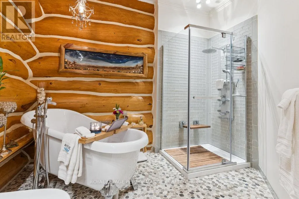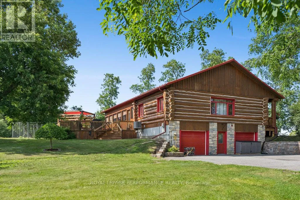 Cross Streets: Roger Stevens/McCordick. ** Directions: 416-Rogers Stevens-McCordick. Just 25 minutes from the heart of Ottawa, this stunning custom-built log home offers the perfect blend of rustic charm, modern updates, and serene living. Built with care and craftsmanship by the owners themselves in 2004, this bungalow has a rich history and timeless character, making it truly unique. 3 spacious bedrooms on the main level and 1 bedroom in the fully finished basement, this home is ideal for families of all sizes. The primary suite is a private retreat, with a remodeled 5-pc ensuite (2023) and a large walk-in closet. Enjoy direct access to the sunroom, a big, bright, and airy space, perfect for entertaining. From the sunroom, step onto the 2-year-old deck, complete with a hot tub, and take in the breathtaking views of the lush 1-acre property. The kitchen, also remodeled in 2023, boasts custom cabinetry and modern finishes. The living areas benefit from the acoustics and warmth of a log home, which also provides natural insulation, reduced off-gassing, and incredible energy efficiency. Outdoor living is delightful with a newly updated front porch (2025) and a five-year-old organic above-ground garden, designed by the owners. The property features 2 pear trees, 2 apple trees, 2 crabapple trees, a multi-apple tree, and a multi-plum tree. A unique feature of this property is the historical rock walls along the back and side, dating back to the 1800s. For additional storage and utility, the back of the property includes a garden shed with its own electrical panel and heater. The oversized double-car garage adds convenience, and the home's design emphasizes flow and comfort. Owning a log home comes with its inherent benefits, including superior soundproofing, a healthier indoor air quality thanks to the natural materials, and unmatched aesthetic/curb appeal. Hydro is wired for a generator (Generator Not Included). Don't miss the opportunity to own a one-of-a-kind log home with a rich history and modern updates. (id:27476)