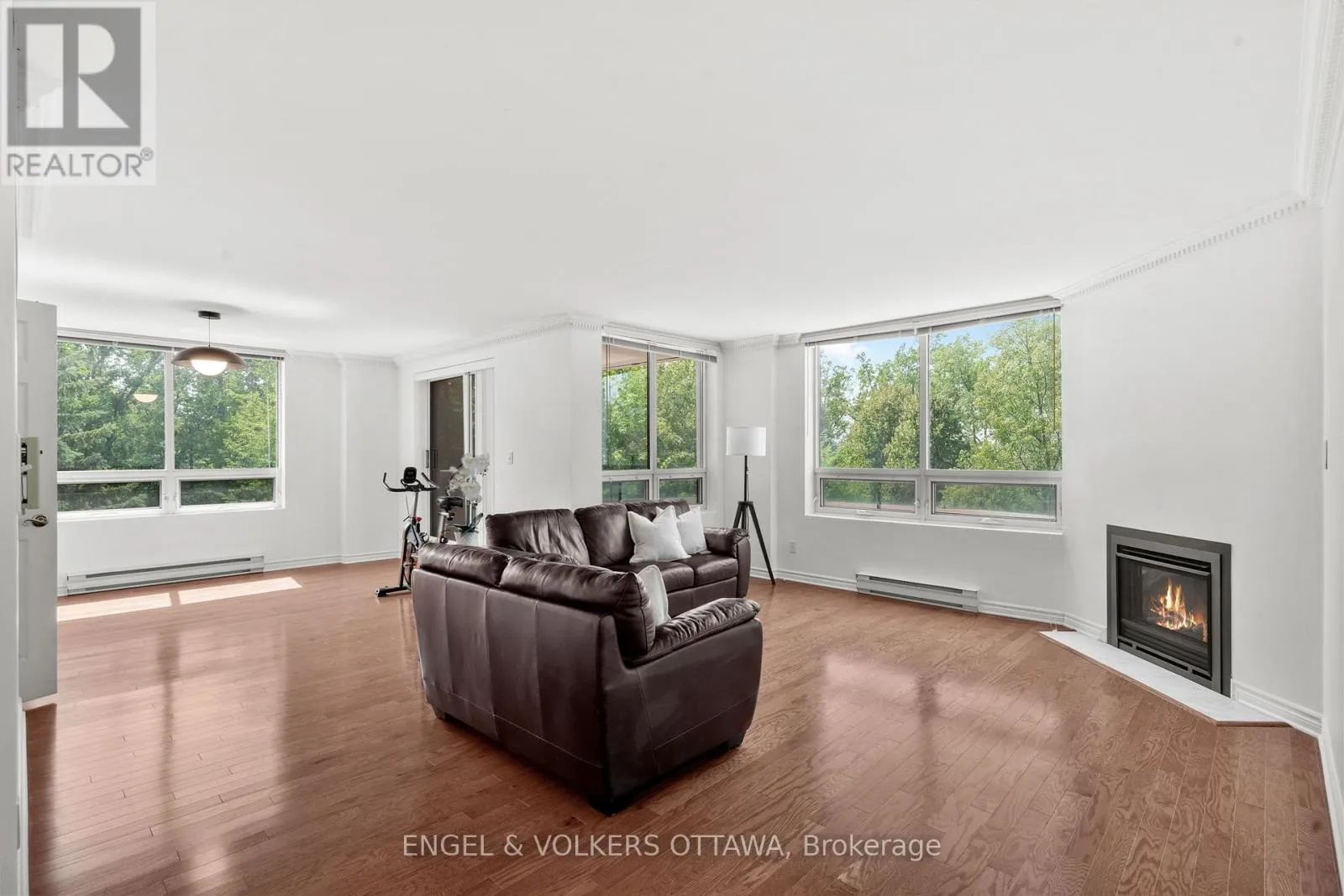 Cross Streets: Bayshore Dr & Carling Ave. ** Directions: Head northwest on Bayshore Dr, then turn left onto Carling Ave. This bright and generously sized 3-bedroom, 2-bathroom condo offers approximately 1,671 square feet of thoughtfully designed living space. Freshly painted and hardwood flooring throughout, complement the natural light that fills each room. The gas fireplace heats the main living area (gas included in condo fee) and central air conditioning keep the condo very comfortable in the summer. The condo has in-unit laundry. Step outside to a rare double-sized balcony ideal for entertaining or enjoying peaceful outdoor moments overlooking treed greenspace. Building amenities include an indoor pool, sauna, gym, bicycle room, and party room with kitchen. Superintendent lives on-site. The location is unbeatable, just minutes from DND, Bayshore, Andrew Haydon Park, the Nepean Sailing Club, Britannia Yacht Club, and the Ottawa River Pathway for cycling and cross-country skiing. With TWO parking spaces and an impressive layout, this home offers the perfect blend of space, style, and convenience in one of Ottawa's most desirable waterfront neighbourhoods. Book your viewing today! 24 hours irrevocable on all offers. (id:27476)