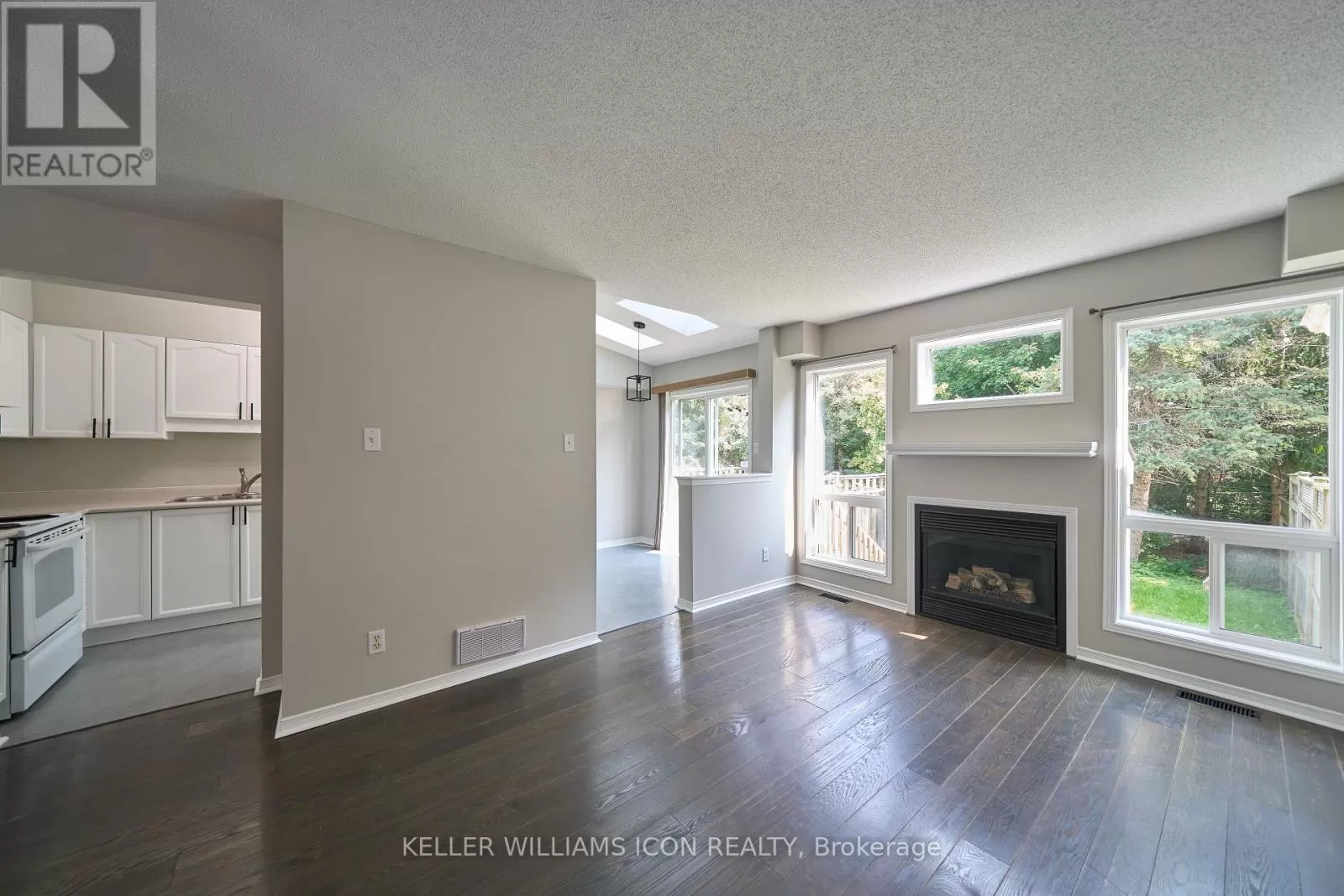 Cross Streets: Hemlo Crescent. ** Directions: HWY 417 Exit Kanata Ave towards Goldridge Dr. Turn left at Goldridge Dr then left at Hemlo Crescent. No rear neighbours & Prime Kanata Lakes Location!! Walk to Kanata Centrum Shopping Centre, enjoy quick highway access, and live within a top-rated school district. This rarely offered 3-bedroom townhome with NO rear neighbours backs onto a scenic trail, offering a peaceful and private setting while being minutes from all amenities. The main level boasts a bright, newly renovated eat-in kitchen with skylight and modern accents, along with an open-concept living and dining area with a gas fireplace. Upstairs, enjoy a spacious primary bedroom with a walk-in closet, plus two additional well-sized bedrooms and ample storage. The home also features a fully finished basement, perfect as a family room, home office, or gym, and a fully fenced backyard backing onto green space, ideal for relaxation and outdoor living. With a large single garage and two-car driveway (3 private parking spaces total), this home combines comfort, convenience, and tranquillity in one of Ottawa's most desirable neighbourhoods. (id:27476)