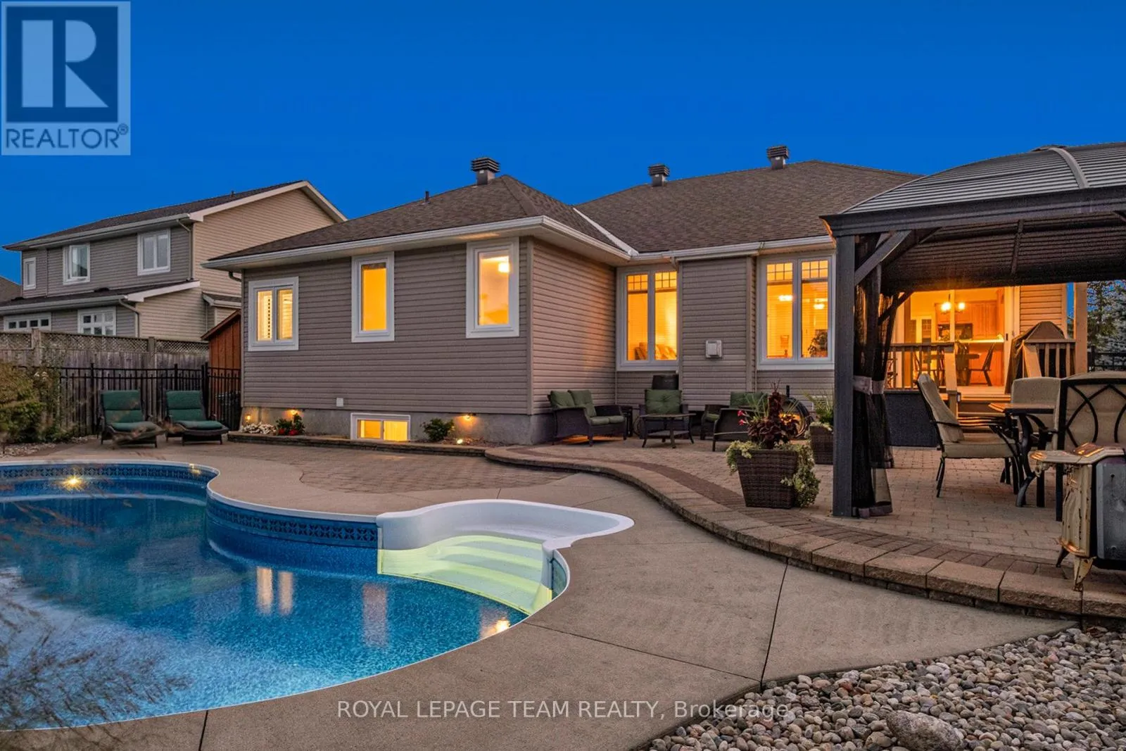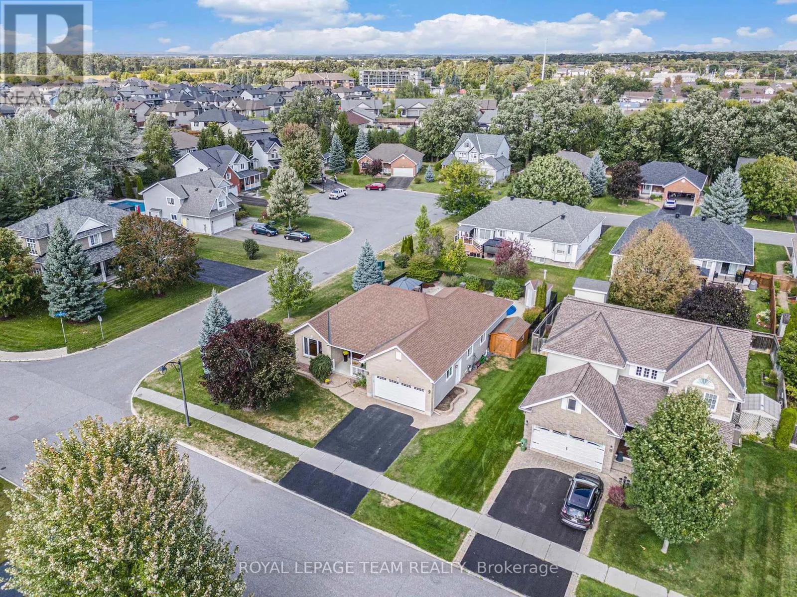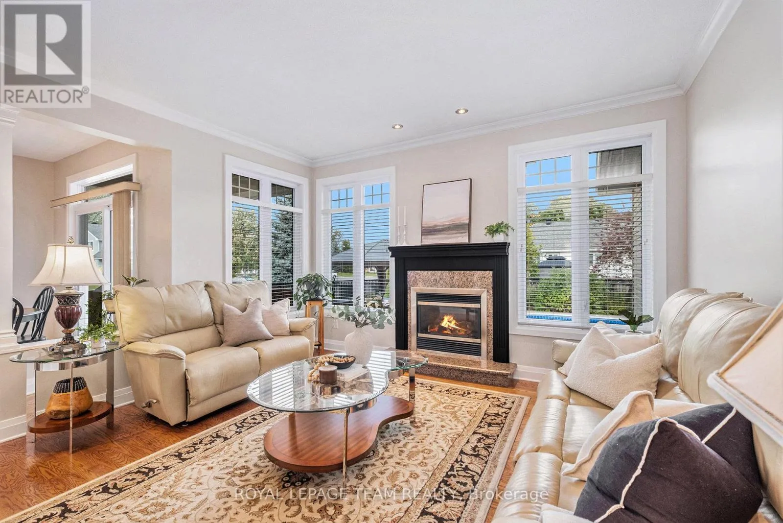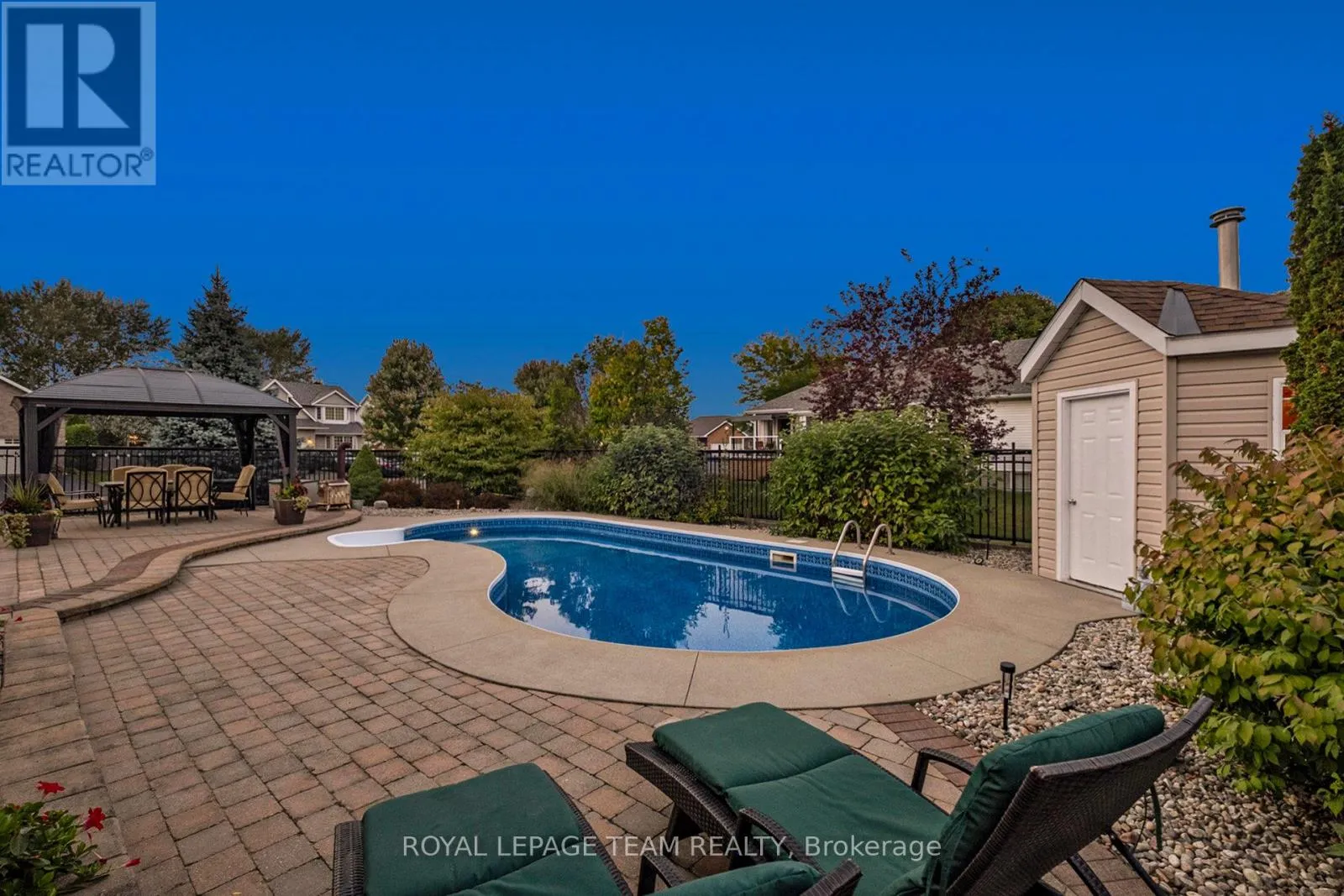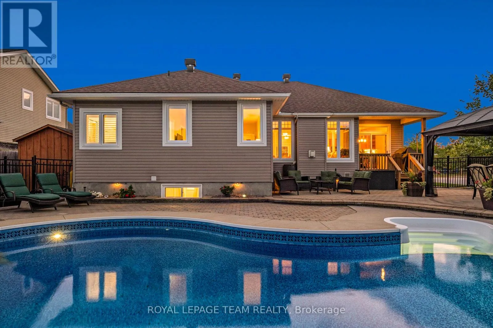 Cross Streets: Perth St. ** Directions: From Eagleson, right on Perth St., through village, right on Rochelle. Welcome to this beautifully maintained home nestled on a spacious 80'x114' corner lot in the peaceful Richmond Oaks neighborhood. Built by Cedarstone Homes, the Richmond floor plan offers a thoughtfully designed layout with over 1700 sq ft on the main level, complemented by a fully finished lower level. The residence features three comfortable bedrooms upstairs, including a large primary suite with double-door entry, a generous walk-in closet, and a luxurious ensuite bathroom renovated in 2019, complete with a walk-in shower, clawfoot tub and granite vanity. An additional bedroom, along with a sizable family room, a 3pc bathroom with a walk-in shower, and a laundry area, are located in the lower level, providing ample space for family and guests. The main floor boasts an inviting living room with a gas fireplace, oversized windows filling the space with natural light, site-finished hardwood flooring, crown molding and decorative columns that add elegance. The large open eat-in kitchen features granite countertops, perfect for family meals and entertaining, with direct access to a covered back patio through patio doors. The front of the home is adorned with full brick, a welcoming covered porch and attractive interlock walkways and driveway borders. Enjoy outdoor leisure in the professionally landscaped yard, which includes a stunning 2012 inground heated swimming pool with a new 2024 pool heater, black iron fencing, pool shed, side shed & multiple sitting areas, including a charming gazebo ideal for relaxing or hosting gatherings. The backyard's covered area offers additional outdoor living space. The property also benefits from a 2-car heated and insulated garage with inside access to the mudroom and exterior door leading to the side yard. Located just across the street from Richmond Oaks Park, this home combines comfort, style and convenience in a quiet, family. Additional info & videos are available by visiting the property website. (id:27476)
