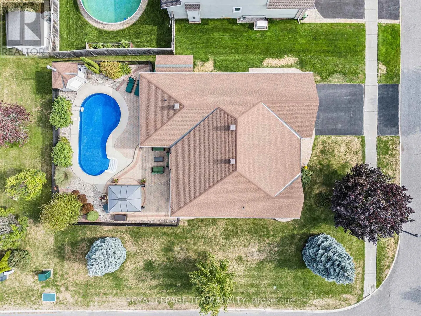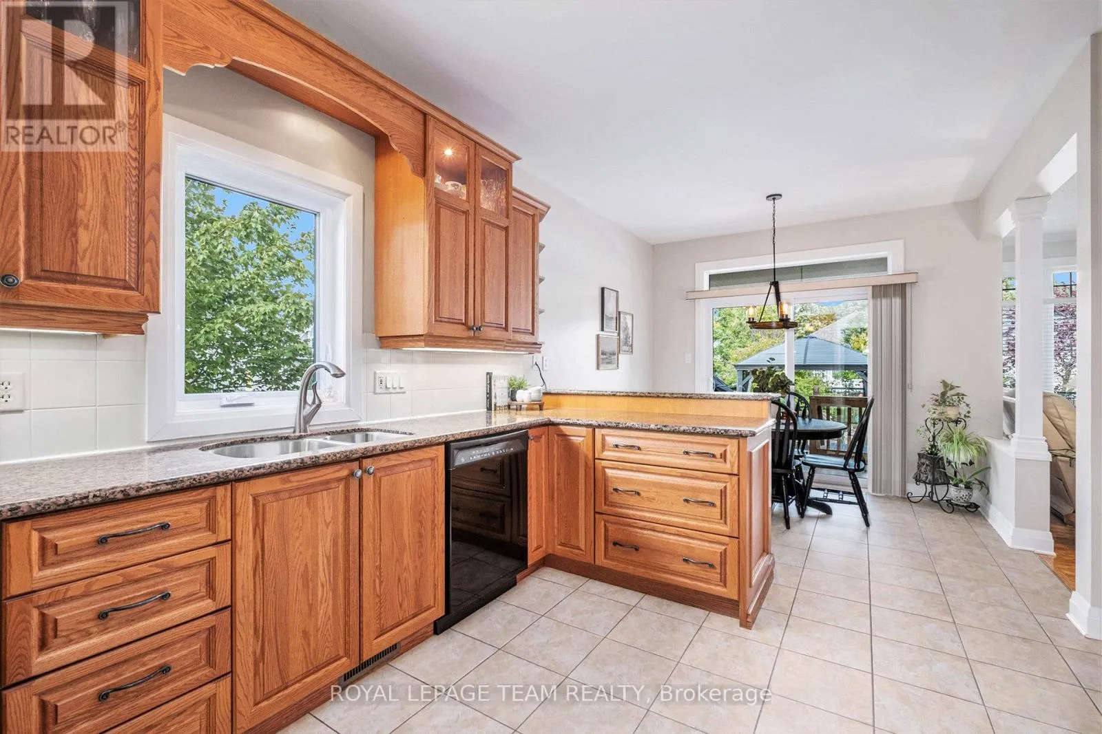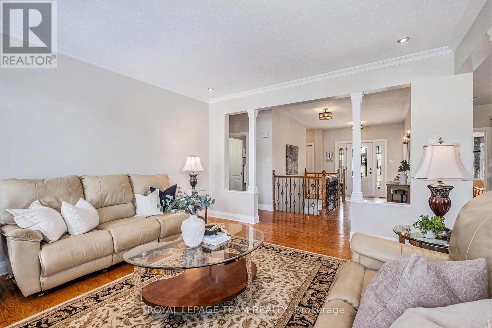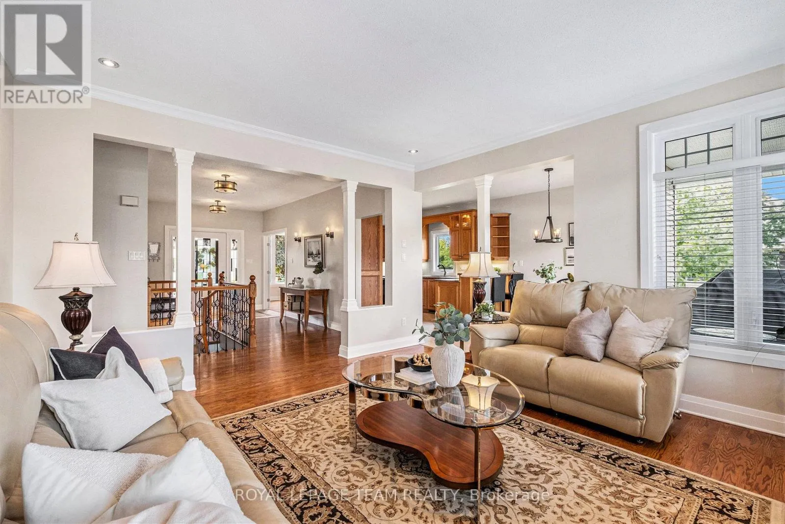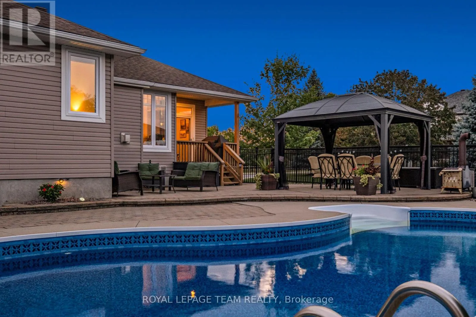 Cross Streets: Perth St. ** Directions: From Eagleson, right on Perth St., through village, right on Rochelle. Welcome to this beautifully maintained home nestled on a spacious 80'x114' corner lot in the peaceful Richmond Oaks neighborhood. Built by Cedarstone Homes, the Richmond floor plan offers a thoughtfully designed layout with over 1700 sq ft on the main level, complemented by a fully finished lower level. The residence features three comfortable bedrooms upstairs, including a large primary suite with double-door entry, a generous walk-in closet, and a luxurious ensuite bathroom renovated in 2019, complete with a walk-in shower, clawfoot tub and granite vanity. An additional bedroom, along with a sizable family room, a 3pc bathroom with a walk-in shower, and a laundry area, are located in the lower level, providing ample space for family and guests. The main floor boasts an inviting living room with a gas fireplace, oversized windows filling the space with natural light, site-finished hardwood flooring, crown molding and decorative columns that add elegance. The large open eat-in kitchen features granite countertops, perfect for family meals and entertaining, with direct access to a covered back patio through patio doors. The front of the home is adorned with full brick, a welcoming covered porch and attractive interlock walkways and driveway borders. Enjoy outdoor leisure in the professionally landscaped yard, which includes a stunning 2012 inground heated swimming pool with a new 2024 pool heater, black iron fencing, pool shed, side shed & multiple sitting areas, including a charming gazebo ideal for relaxing or hosting gatherings. The backyard's covered area offers additional outdoor living space. The property also benefits from a 2-car heated and insulated garage with inside access to the mudroom and exterior door leading to the side yard. Located just across the street from Richmond Oaks Park, this home combines comfort, style and convenience in a quiet, family. Additional info & videos are available by visiting the property website. (id:27476)