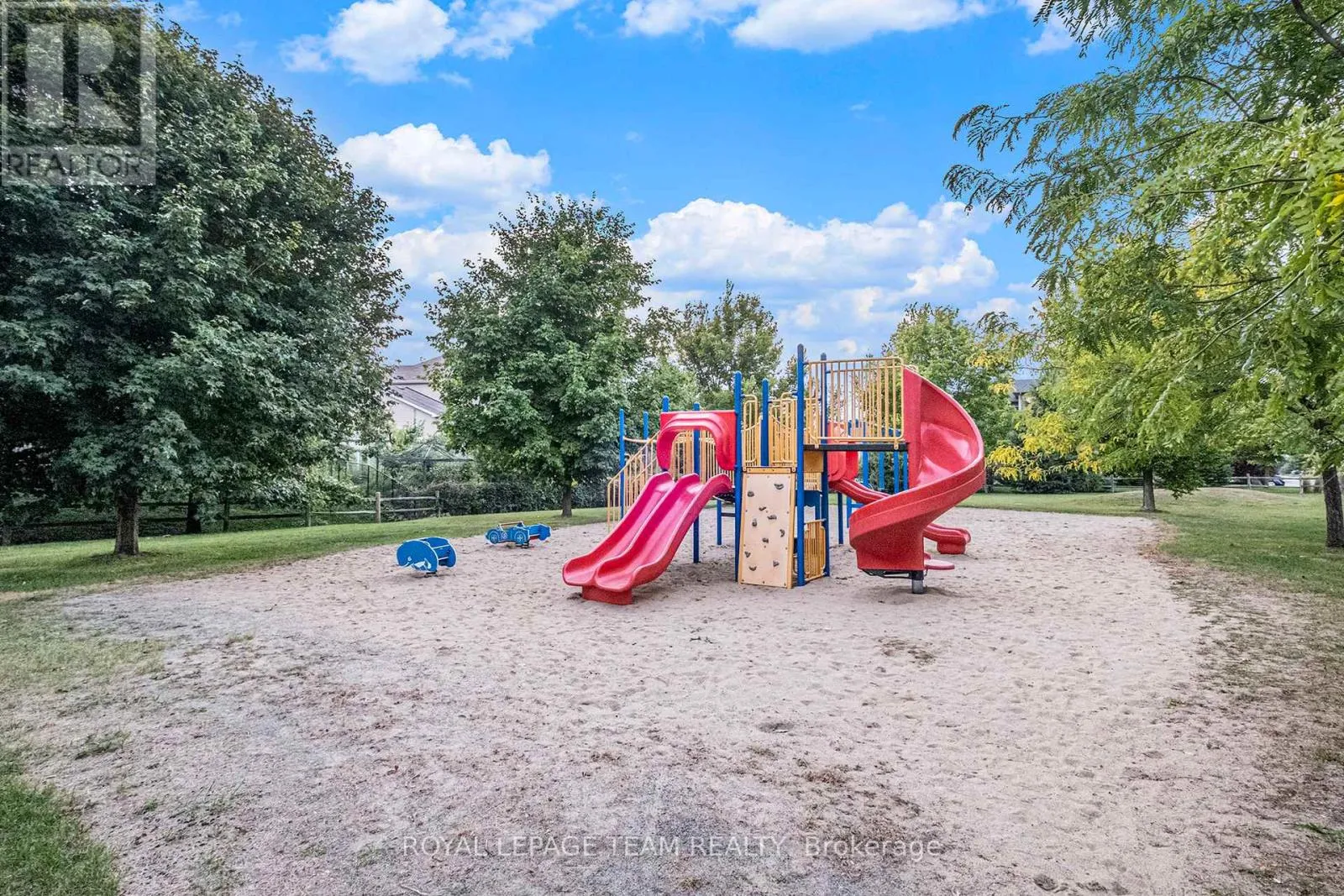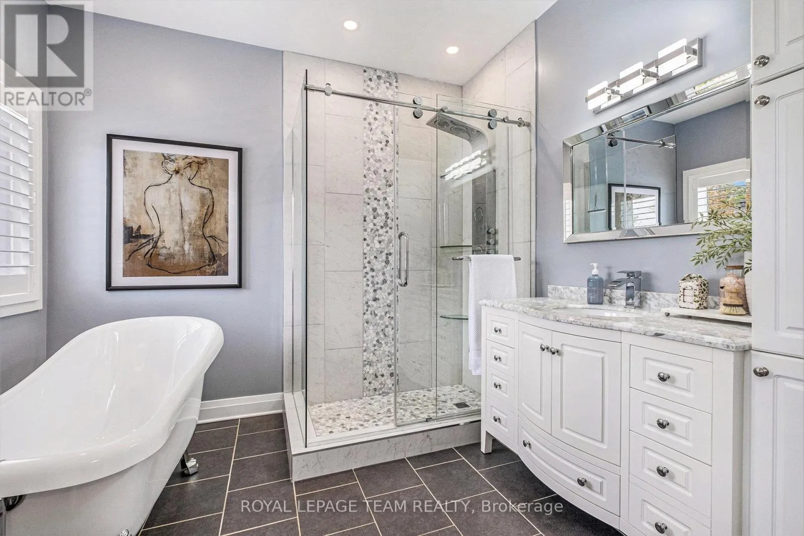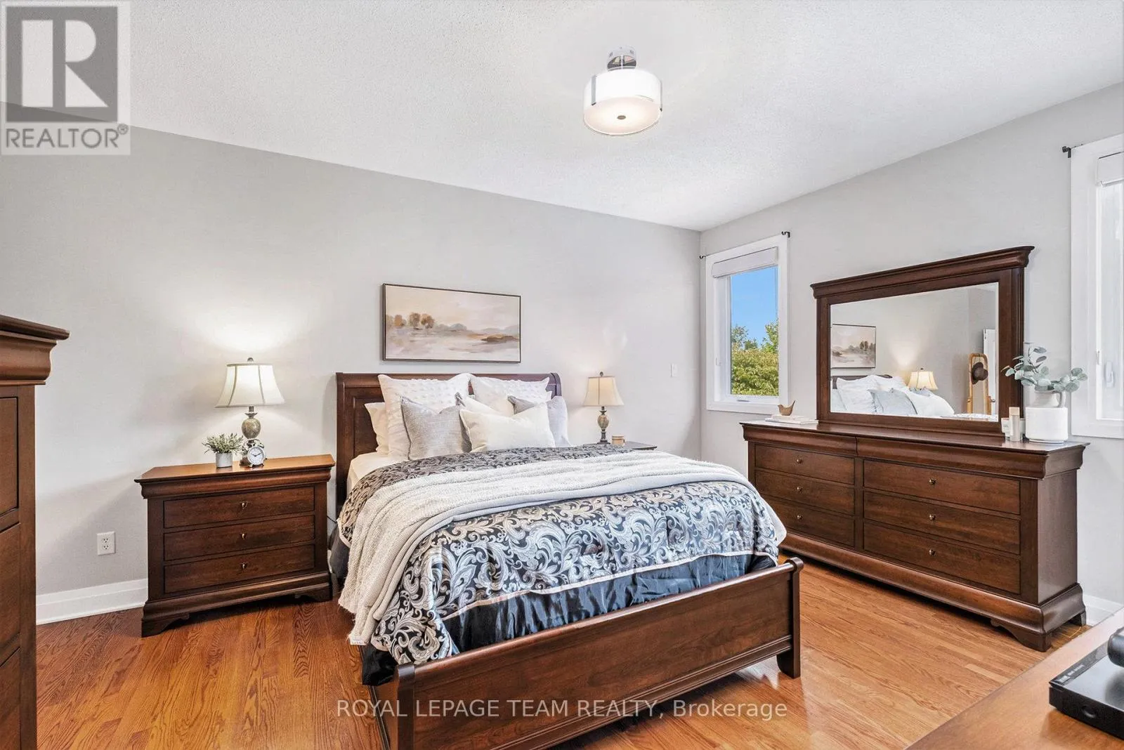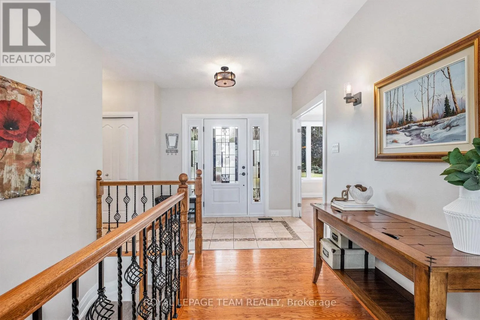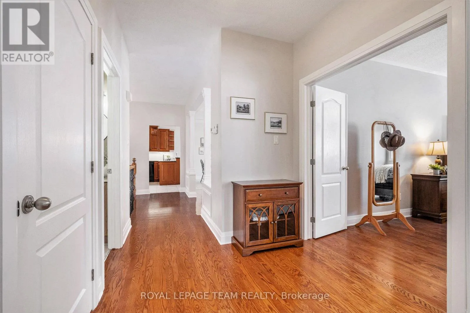 Cross Streets: Perth St. ** Directions: From Eagleson, right on Perth St., through village, right on Rochelle. Welcome to this beautifully maintained home nestled on a spacious 80'x114' corner lot in the peaceful Richmond Oaks neighborhood. Built by Cedarstone Homes, the Richmond floor plan offers a thoughtfully designed layout with over 1700 sq ft on the main level, complemented by a fully finished lower level. The residence features three comfortable bedrooms upstairs, including a large primary suite with double-door entry, a generous walk-in closet, and a luxurious ensuite bathroom renovated in 2019, complete with a walk-in shower, clawfoot tub and granite vanity. An additional bedroom, along with a sizable family room, a 3pc bathroom with a walk-in shower, and a laundry area, are located in the lower level, providing ample space for family and guests. The main floor boasts an inviting living room with a gas fireplace, oversized windows filling the space with natural light, site-finished hardwood flooring, crown molding and decorative columns that add elegance. The large open eat-in kitchen features granite countertops, perfect for family meals and entertaining, with direct access to a covered back patio through patio doors. The front of the home is adorned with full brick, a welcoming covered porch and attractive interlock walkways and driveway borders. Enjoy outdoor leisure in the professionally landscaped yard, which includes a stunning 2012 inground heated swimming pool with a new 2024 pool heater, black iron fencing, pool shed, side shed & multiple sitting areas, including a charming gazebo ideal for relaxing or hosting gatherings. The backyard's covered area offers additional outdoor living space. The property also benefits from a 2-car heated and insulated garage with inside access to the mudroom and exterior door leading to the side yard. Located just across the street from Richmond Oaks Park, this home combines comfort, style and convenience in a quiet, family. Additional info & videos are available by visiting the property website. (id:27476)