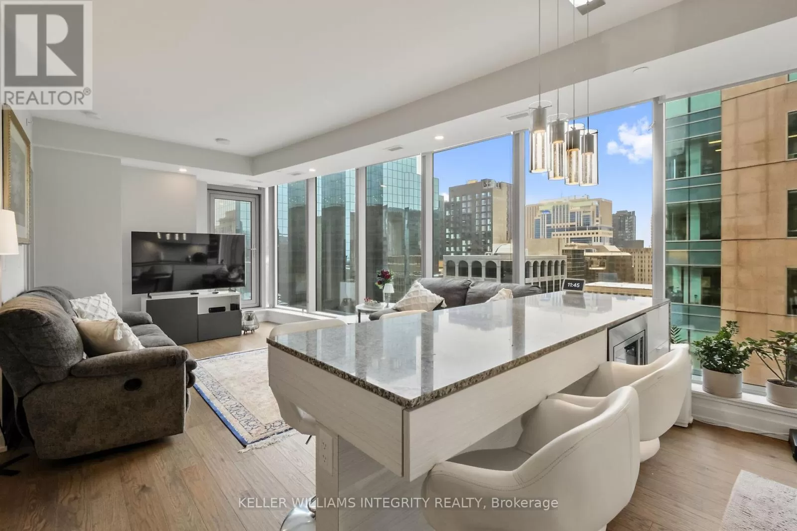 Cross Streets: Queen Street & OConnor Street. ** Directions: Take Alta vista Dr, Regional Rd 72 and Metcalfe St, Regional Rd 89 to Queen Street than turn left , destination will be on the right. Welcome to 1209-101 Queen Street, where luxury meets convenience in the heart of downtown Ottawa. This elegant 2-bedroom, 2-bathroom condo features 9-foot ceilings, an open-concept layout, and expansive windows that fill the space with natural light. The modern kitchen boasts quartz countertops, a sleek breakfast bar, and high-end finishes perfect for entertaining.Enjoy top-tier amenities, including a state-of-the-art fitness center, sauna, sky lounge, and 24/7 concierge service. Nestled in a highly desirable location, you're just steps from fine dining, shopping, the LRT, and Parliament Hill. (id:27476)