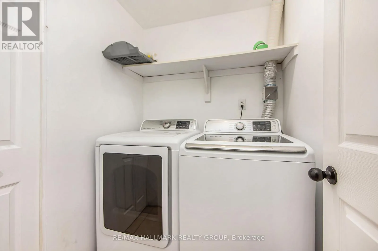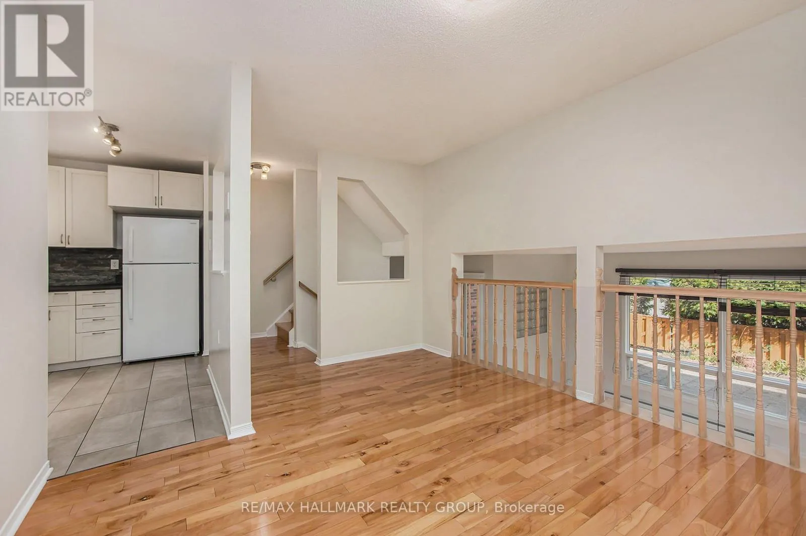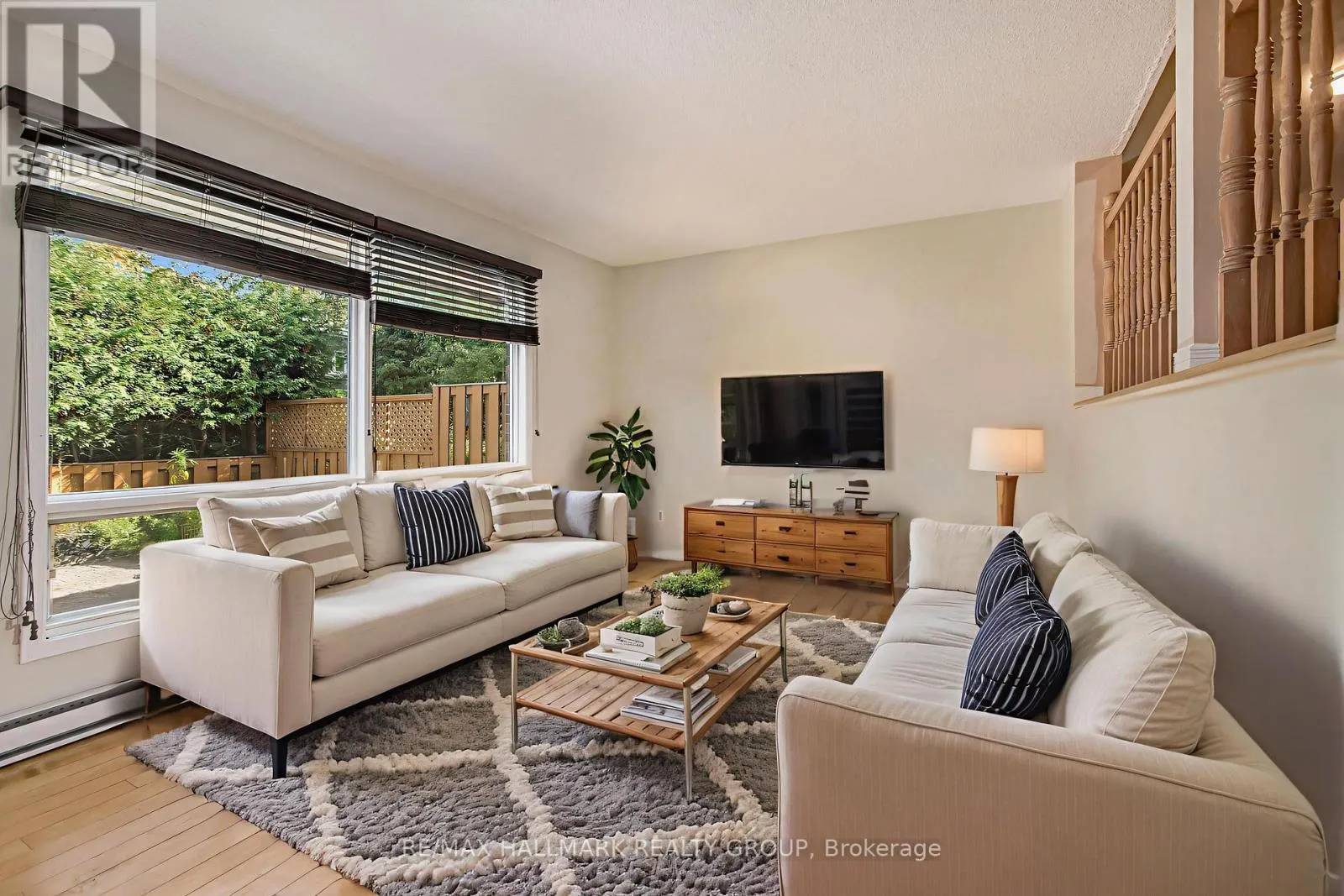 HUNT CLUB RD TO PAUL ANKA RD TO UPLANDS Beautifully renovated 3-bedroom freehold townhome with 2 baths and 2 parking spaces in a quiet, family-friendly neighborhood beside a large park and community centre. Walking trails, transit, and shopping are all nearby for ultimate convenience. Inside, enjoy hardwood flooring on the main, staircase, and upper levels, plus a finished basement with ceramic tile. Recent updates include: fresh paint (2022), roof (2021), renovated upper bath (2020), modern kitchen with appliances (2019), and a newly landscaped front yard (2025). Association fee of $195.75/month covers snow removal, private road repairs, and lawn maintenance. A rare opportunity to own a freehold home at an affordable price.move-in ready and waiting for you! (id:27476)