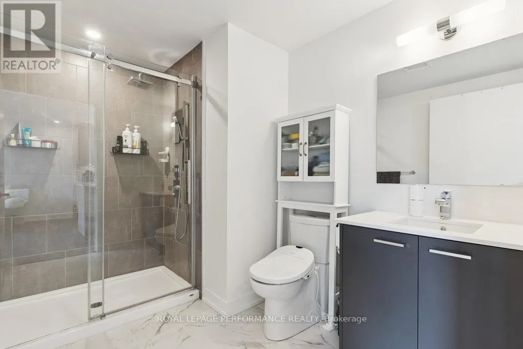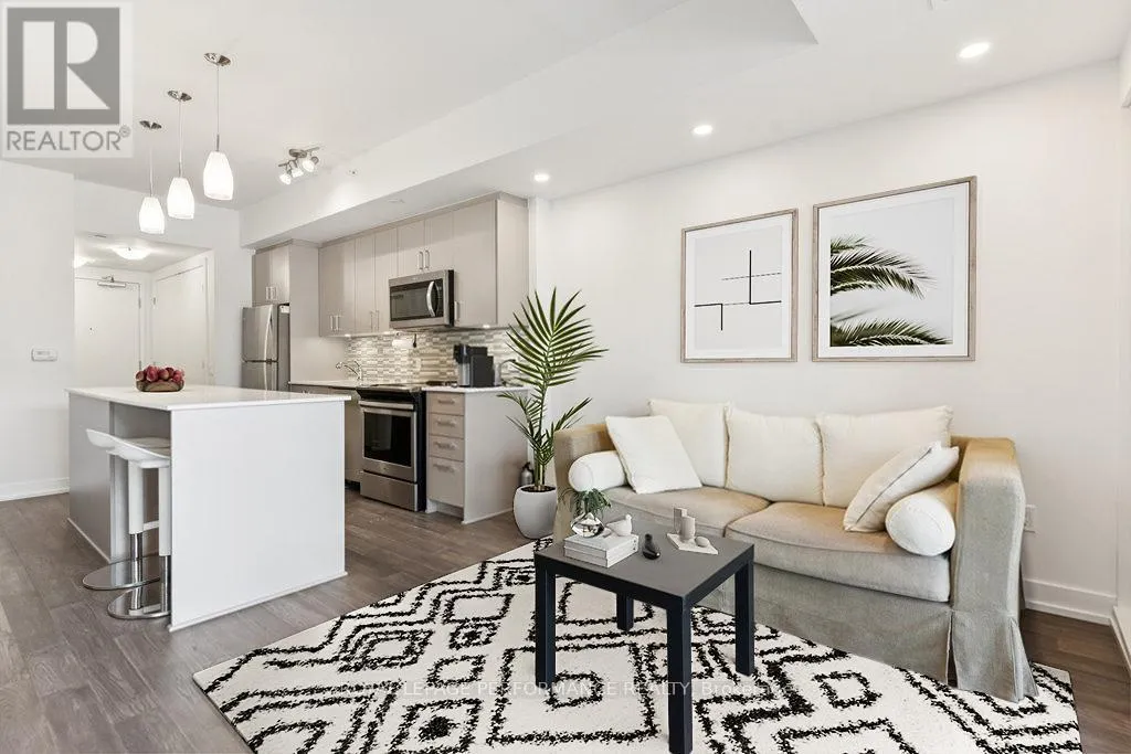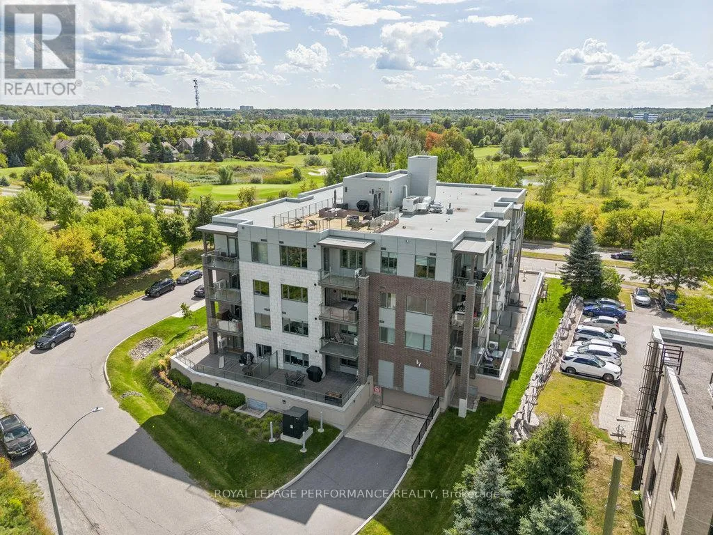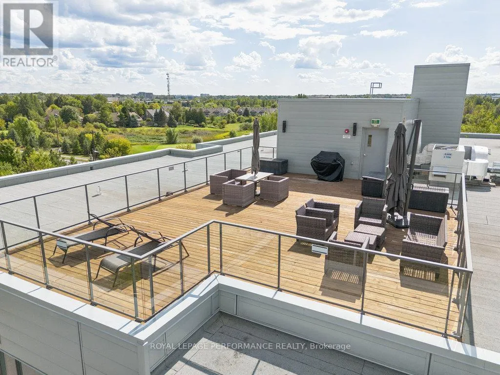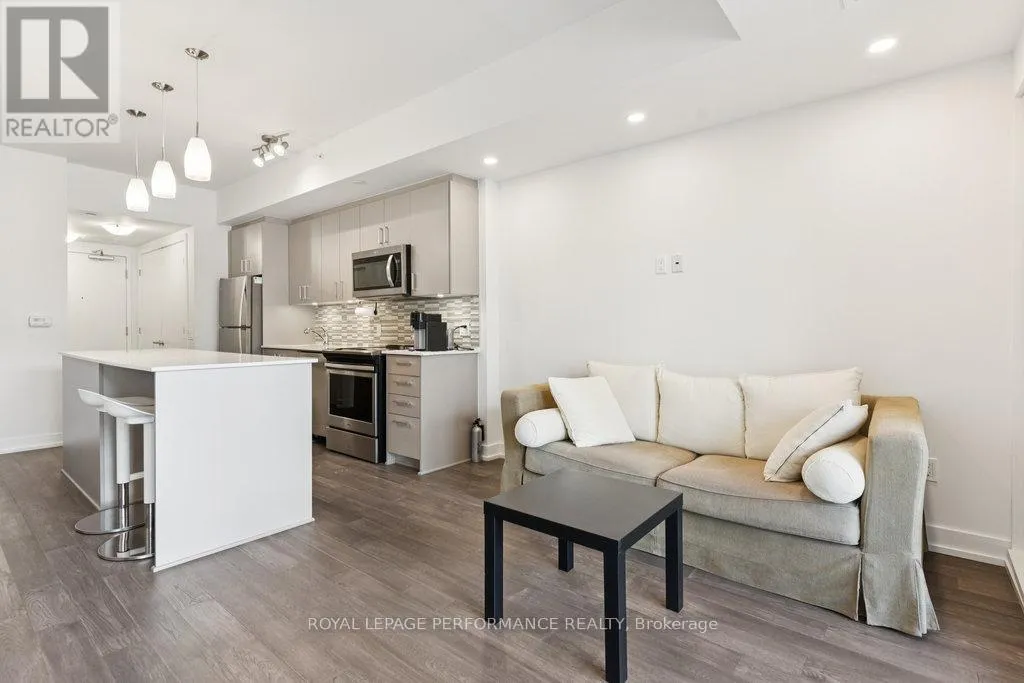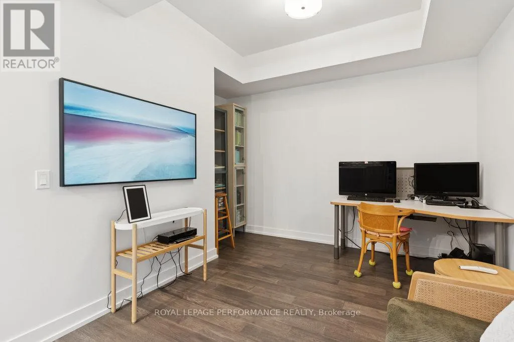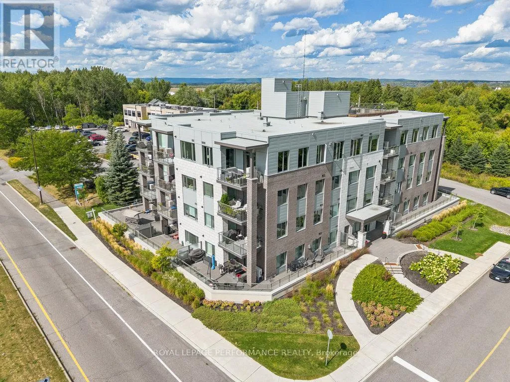 Cross Streets: Terry Fox Dr and Herzberg Rd. ** Directions: From March Rd to Herzberg Road. Welcome to 104-280 Herzberg! This stylish ground-level 1-bedroom plus den condo in The Serenity offers 729 sq. ft. of thoughtfully designed living space with premium finishes throughout. Step inside to discover 9' ceilings, wide-plank hardwood flooring, and a modern neutral palette that creates an airy, inviting atmosphere. The open-concept kitchen boasts sleek grey cabinetry, quartz countertops, stainless steel appliances, and a large island with seating that also serves as extra prep space. The versatile den is perfect for a home office or additional living area, while the spa-inspired bathroom features a glass shower with rain head, porcelain tile, and a quartz vanity. A true highlight is the spacious private terrace, ideal for entertaining, outdoor dining, or simply relaxing in a tranquil setting backing onto NCC green space. Additional conveniences include in-unit laundry, heated underground parking, and a storage locker. Residents of Serenity Condos also enjoy access to a rooftop terrace with forest views, a fitness centre, bike storage, and more. Perfectly located near golf at The Marshes, scenic trails (including a 4 km trail just steps from your door), as well as shopping and dining, this home offers the ideal blend of comfort, style, and convenience. Find floor plans, the status certificate, and more details at nickfundytus.ca. (id:27476)