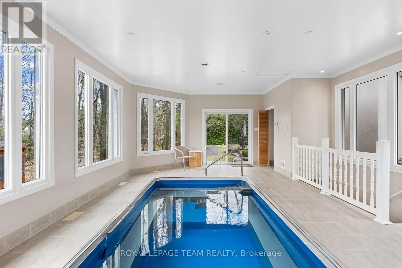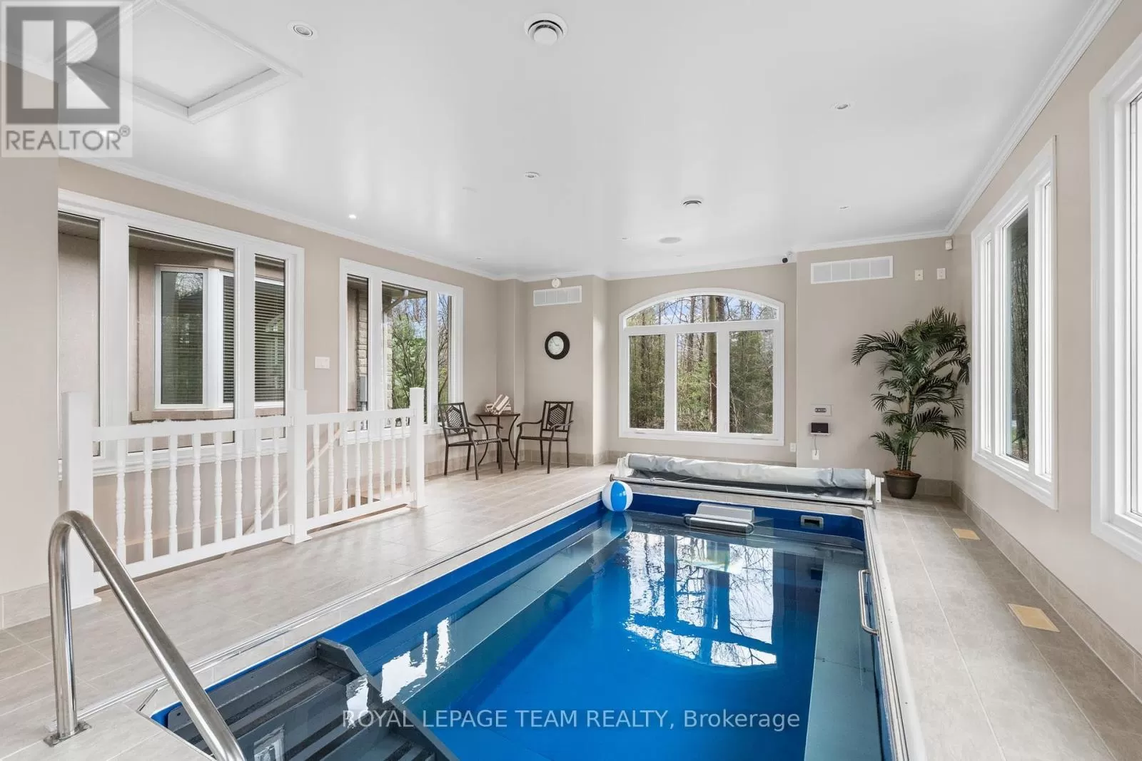 Cross Streets: Dozois Rd. ** Directions: From Dozois Rd, turn onto Gough Rd. Turn right onto Earlscourt Crescent. Gated country estate, Rockcrest Manor. Easy access to downtown and the airport. Situated on a 2.11-acre estate lot in Manotick's Rideau Forest, this exceptional property embodies refined living. Enveloped by mature trees and thoughtfully landscaped grounds, it offers a rare blend of privacy, elegance, and natural beauty. The home's bright and expansive interior features timeless architectural details, including soaring ceilings, clerestory windows, hardwood floors, recessed lighting, and crown mouldings. The flowing layout on the main level is perfect for both family living and entertaining, with large windows that invite natural light. On the second level, four generously sized bedrooms include a distinguished primary suite with dual walk-in closets and a luxurious ensuite. The finished lower level offers additional living space to enjoy. The dedicated indoor pool has sealed access from the main home. Enjoy year round for aqua fitness, hydro therapy, relaxation and family fun. The exterior is equally impressive, blending landscaping and hardscaping within a peaceful woodland setting. Interlock stone walkways and patios provide elegant outdoor spaces for relaxation and entertaining, while meandering paths lead to a tranquil stone-edged pond, gardens, gazebos, and a greenhouse, creating a serene retreat. Additional features include a storage outbuilding, a detached garage that is ideal for a workshop, and an attached three-car garage. Located just moments from boutique shops, restaurants, and cafés of the charming village of Manotick, this remarkable property strikes the perfect balance of luxury and convenience. (id:27476)
