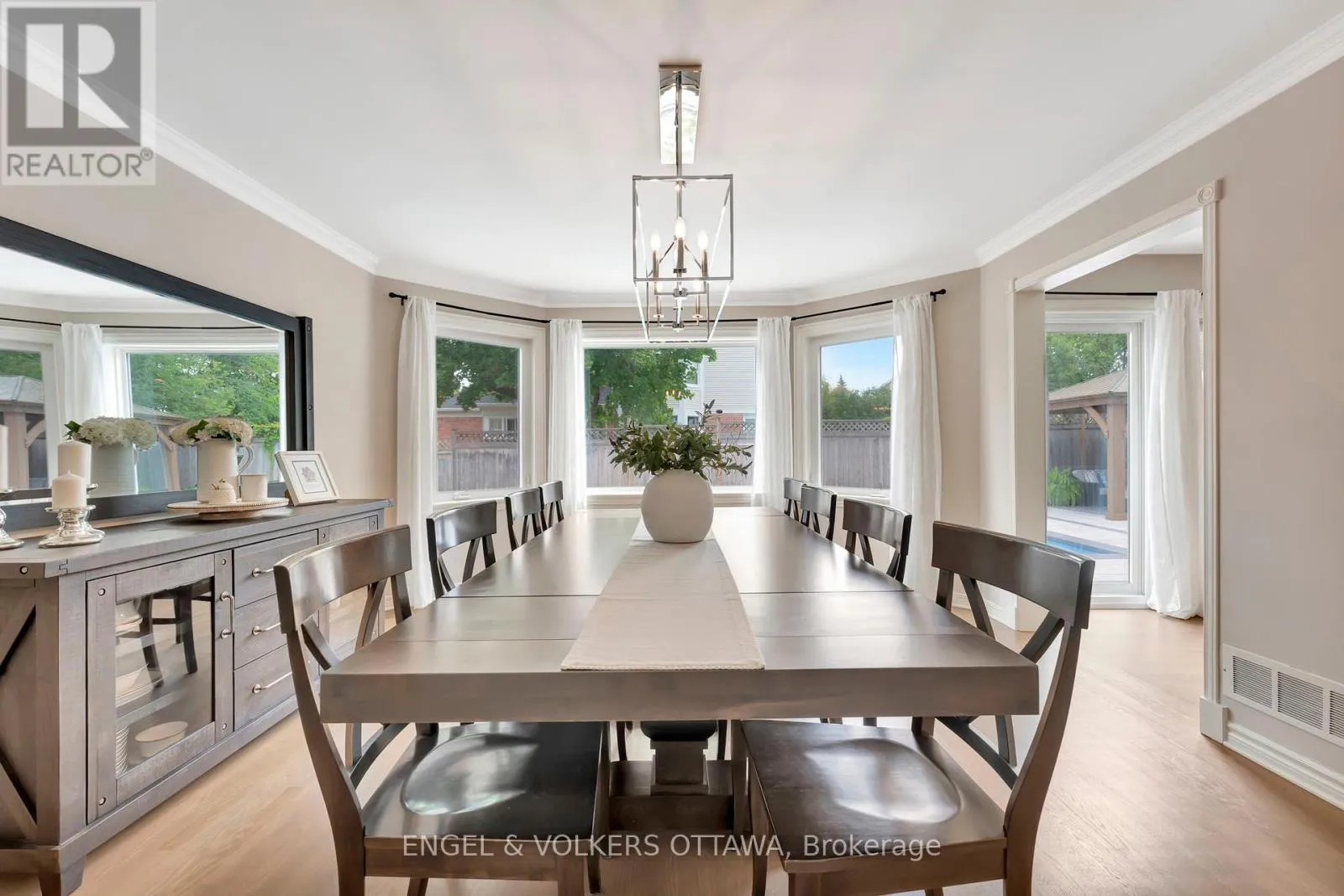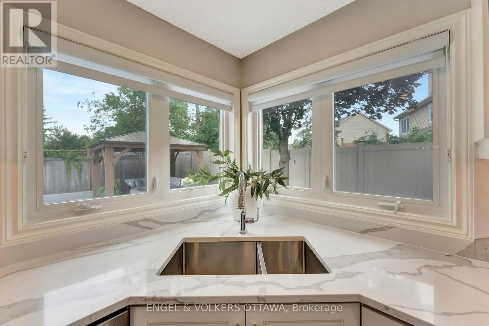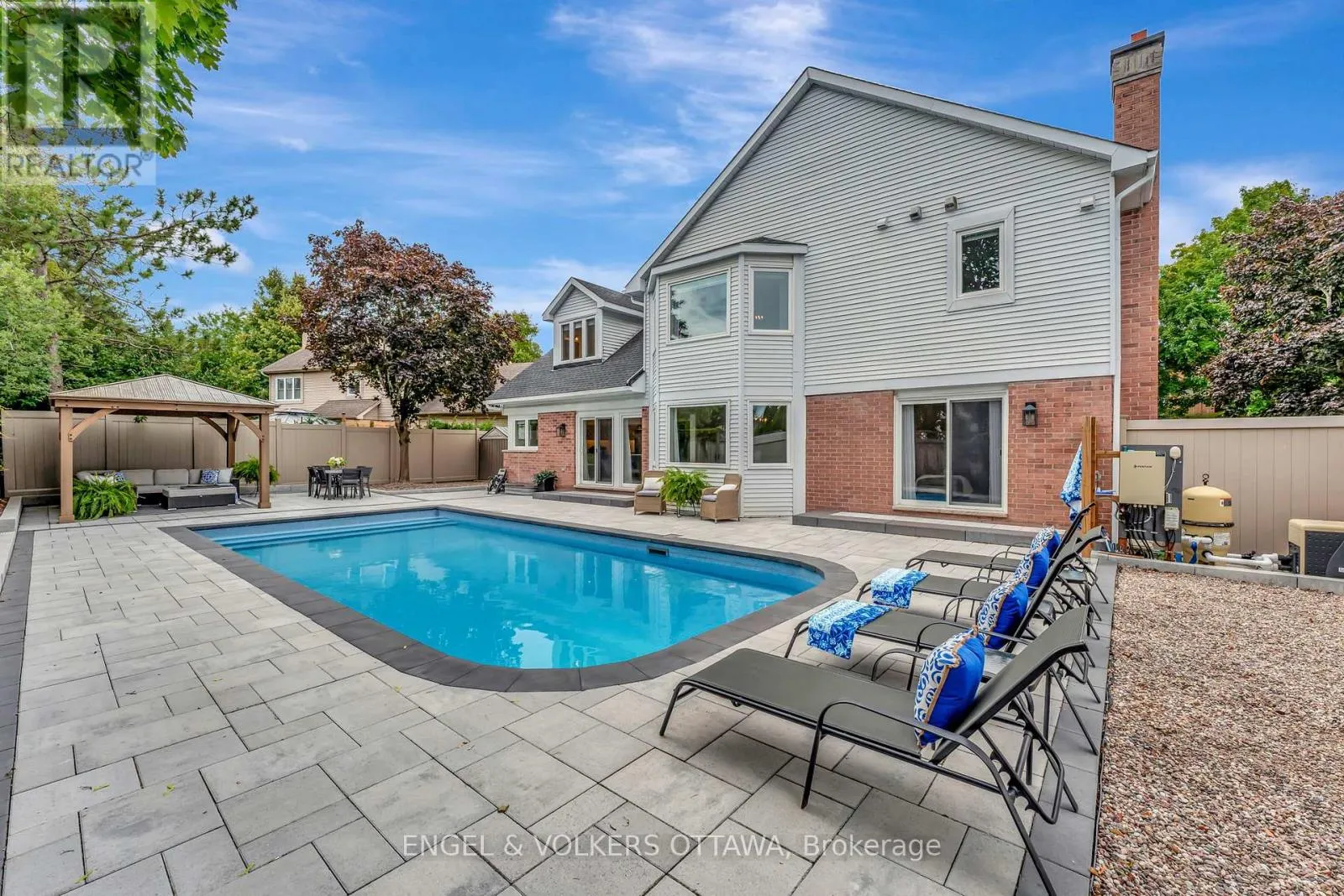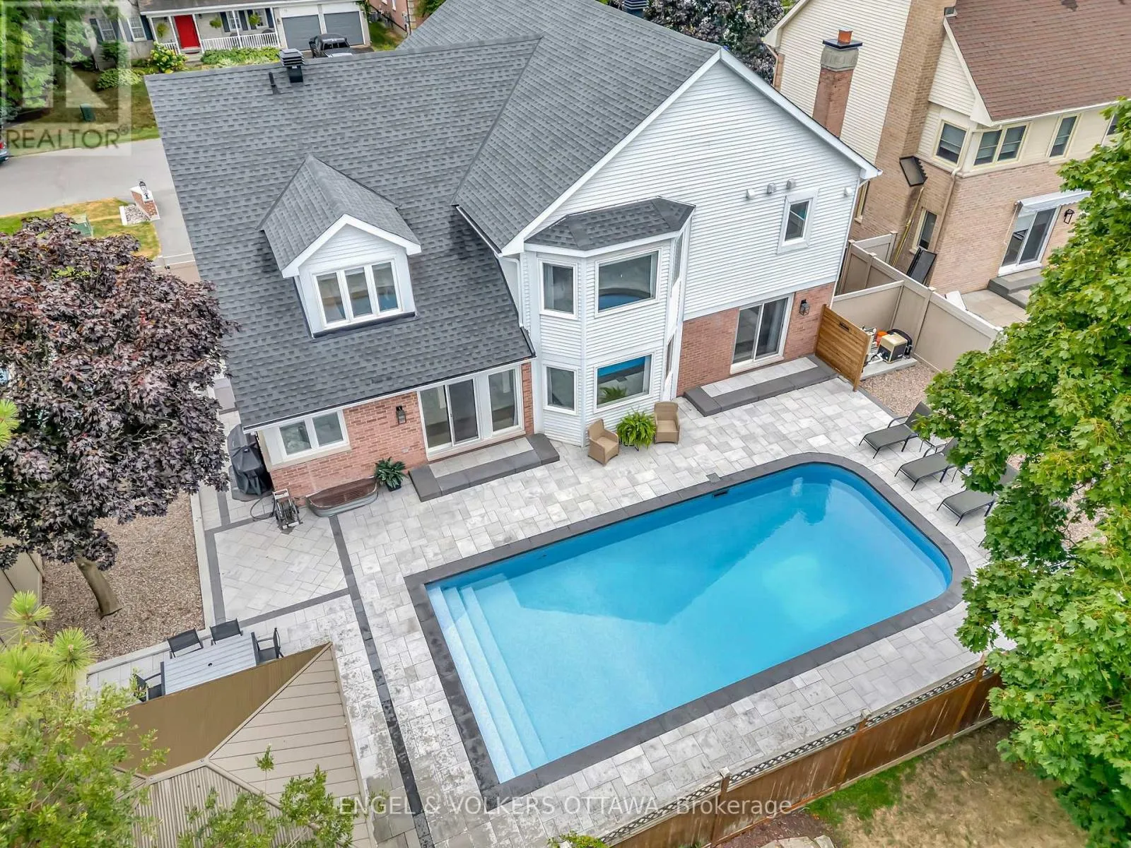 Northwest on Stittsville Main Street, left on Carp Road, left on Hobin Street, left on Belton Avenue A rare offering in prestigious Crossing Bridge, this 5 bdrm, 4 bath residence is a showcase of timeless craftsmanship, modern comfort, and over $550K in curated upgrades. Offering approx. 3,860 sq.ft. + fin. basement, this residence features a grand entrance opening to expansive great rm w/ 9-ft ceilings, elegant wainscoting, bespoke crown moldings & stately wood-burning fireplace, leading to landscaped priv. oasis w/ heated saltwater pool, new equipment (2024), new liner, steel steps & $140K in prof. landscaping + new driveway. Gourmet kitchen is a modern luxury showpiece w/ 9-ft island, quartz counters, state-of-the-art appliances, custom cabinetry & striking corner windows, complemented by refinished hardwood, new staircase w/ wrought iron details, pot lights & new laundry rm w/ built-ins & stacked washer/dryer. Formal dining rm exudes sophistication, ideal for unforgettable gatherings. Upstairs, opulent primary retreat offers a custom walk-in closet & spa-inspired ensuite with heated floors, oversized shower, double vanity and refined finishes. Additional sprawling guest suite features its own 4-piece en-suite, while additional bedrooms are generous in size, each updated with hardwood and oversize closets. Main bath fully renovated with double vanity, tub, plumbing and electrical for modern comfort. Finished basement designed for relaxation and entertainment, boasting a custom media unit, shiplap, Napoleon fireplace, pool table and new egress window. Additional highlights include a new front door, security cameras, smooth ceilings, updated lighting, blown-in attic insulation, professional painting, custom window coverings, window cleaning & duct cleaning. Recent essentials: HWT (2022), Furnace (2020), Roof (2018), AC (2018), Central Vac & Sump Pump. This home offers exceptional value for the level of craftsmanship and thoughtful upgrades throughout. A true MUST-SEE for those seeking Luxury, Comfort, and timeless Elegance. (id:27476)