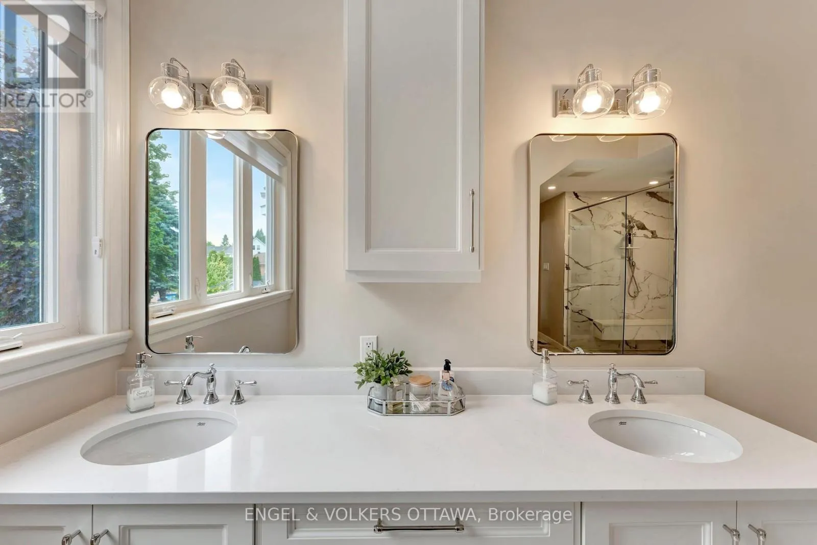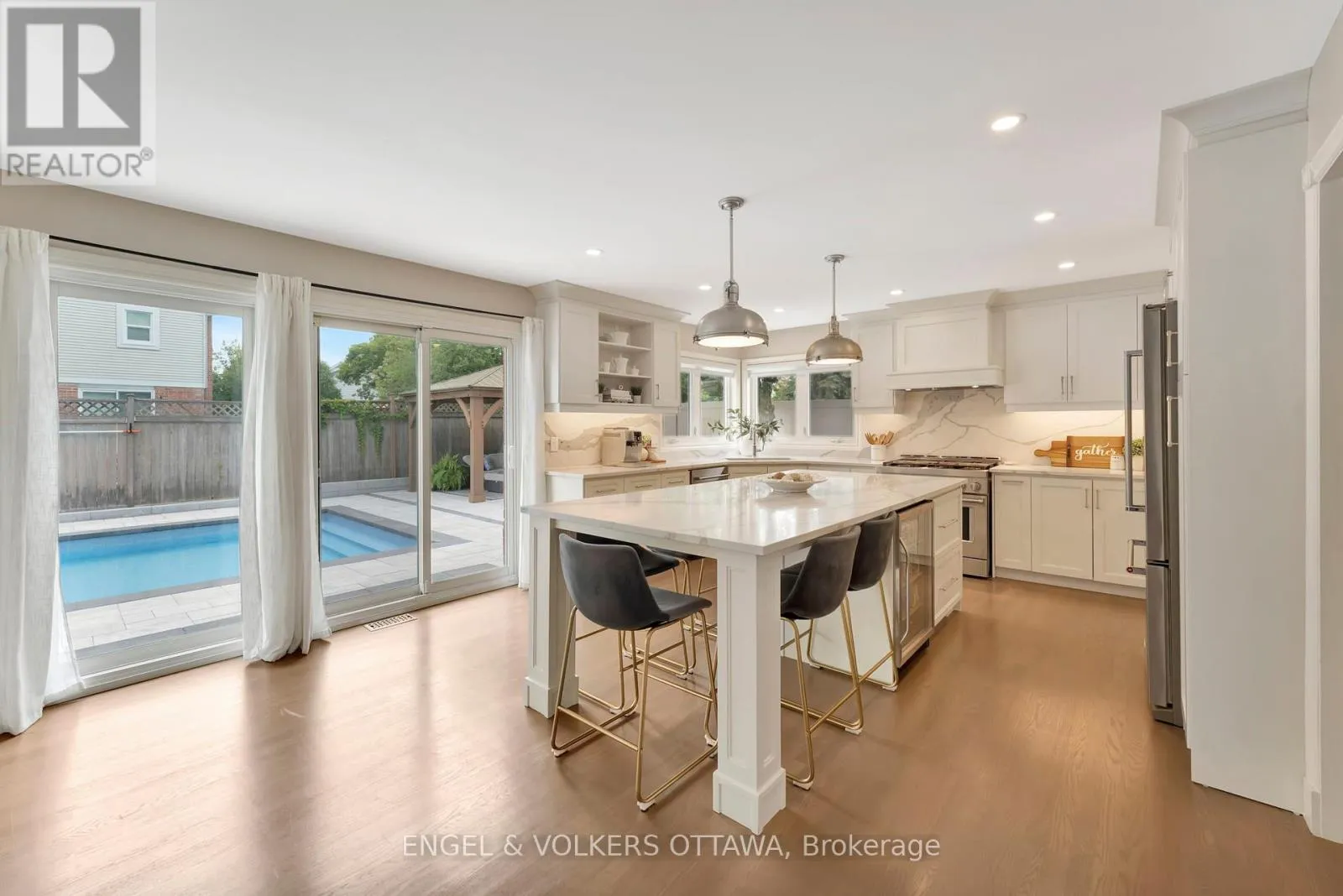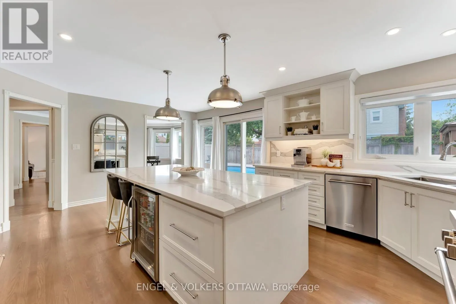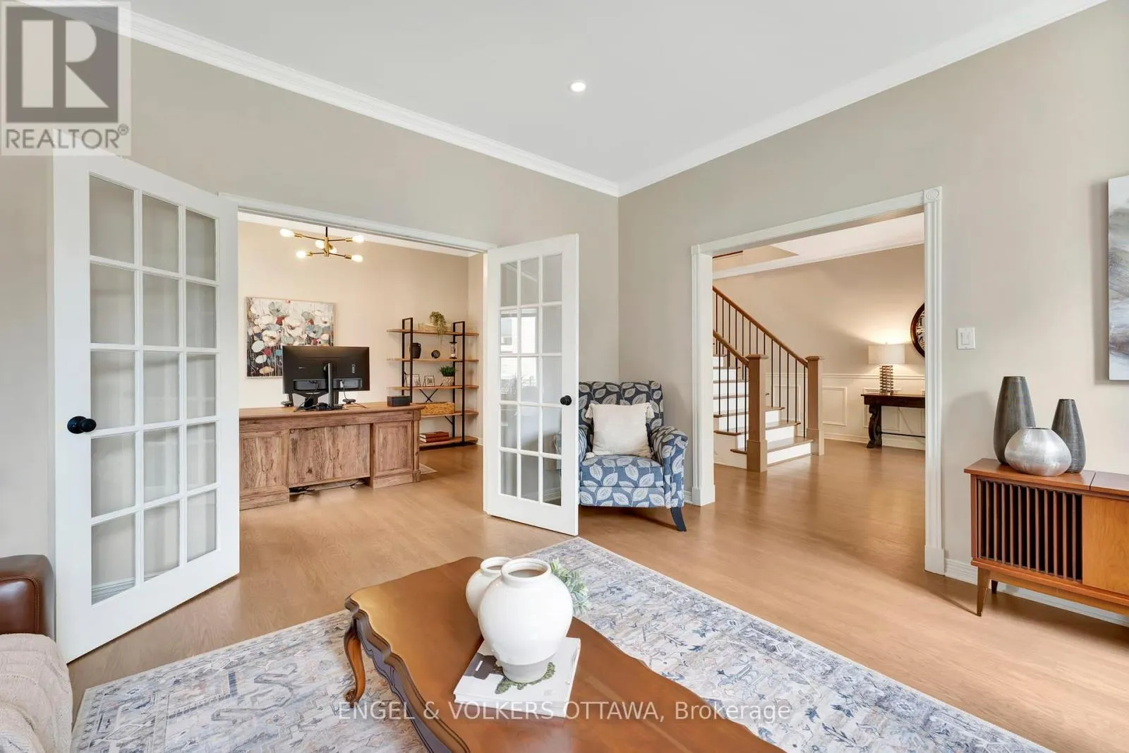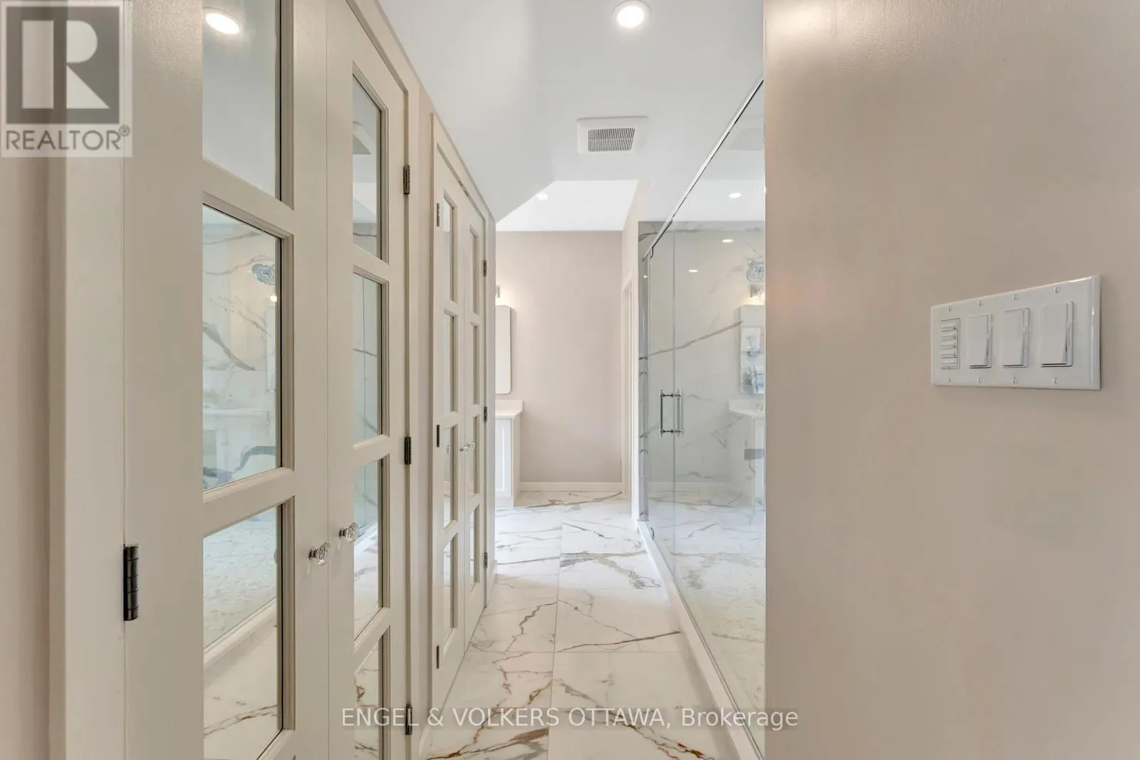 Northwest on Stittsville Main Street, left on Carp Road, left on Hobin Street, left on Belton Avenue A rare offering in prestigious Crossing Bridge, this 5 bdrm, 4 bath residence is a showcase of timeless craftsmanship, modern comfort, and over $550K in curated upgrades. Offering approx. 3,860 sq.ft. + fin. basement, this residence features a grand entrance opening to expansive great rm w/ 9-ft ceilings, elegant wainscoting, bespoke crown moldings & stately wood-burning fireplace, leading to landscaped priv. oasis w/ heated saltwater pool, new equipment (2024), new liner, steel steps & $140K in prof. landscaping + new driveway. Gourmet kitchen is a modern luxury showpiece w/ 9-ft island, quartz counters, state-of-the-art appliances, custom cabinetry & striking corner windows, complemented by refinished hardwood, new staircase w/ wrought iron details, pot lights & new laundry rm w/ built-ins & stacked washer/dryer. Formal dining rm exudes sophistication, ideal for unforgettable gatherings. Upstairs, opulent primary retreat offers a custom walk-in closet & spa-inspired ensuite with heated floors, oversized shower, double vanity and refined finishes. Additional sprawling guest suite features its own 4-piece en-suite, while additional bedrooms are generous in size, each updated with hardwood and oversize closets. Main bath fully renovated with double vanity, tub, plumbing and electrical for modern comfort. Finished basement designed for relaxation and entertainment, boasting a custom media unit, shiplap, Napoleon fireplace, pool table and new egress window. Additional highlights include a new front door, security cameras, smooth ceilings, updated lighting, blown-in attic insulation, professional painting, custom window coverings, window cleaning & duct cleaning. Recent essentials: HWT (2022), Furnace (2020), Roof (2018), AC (2018), Central Vac & Sump Pump. This home offers exceptional value for the level of craftsmanship and thoughtful upgrades throughout. A true MUST-SEE for those seeking Luxury, Comfort, and timeless Elegance. (id:27476)