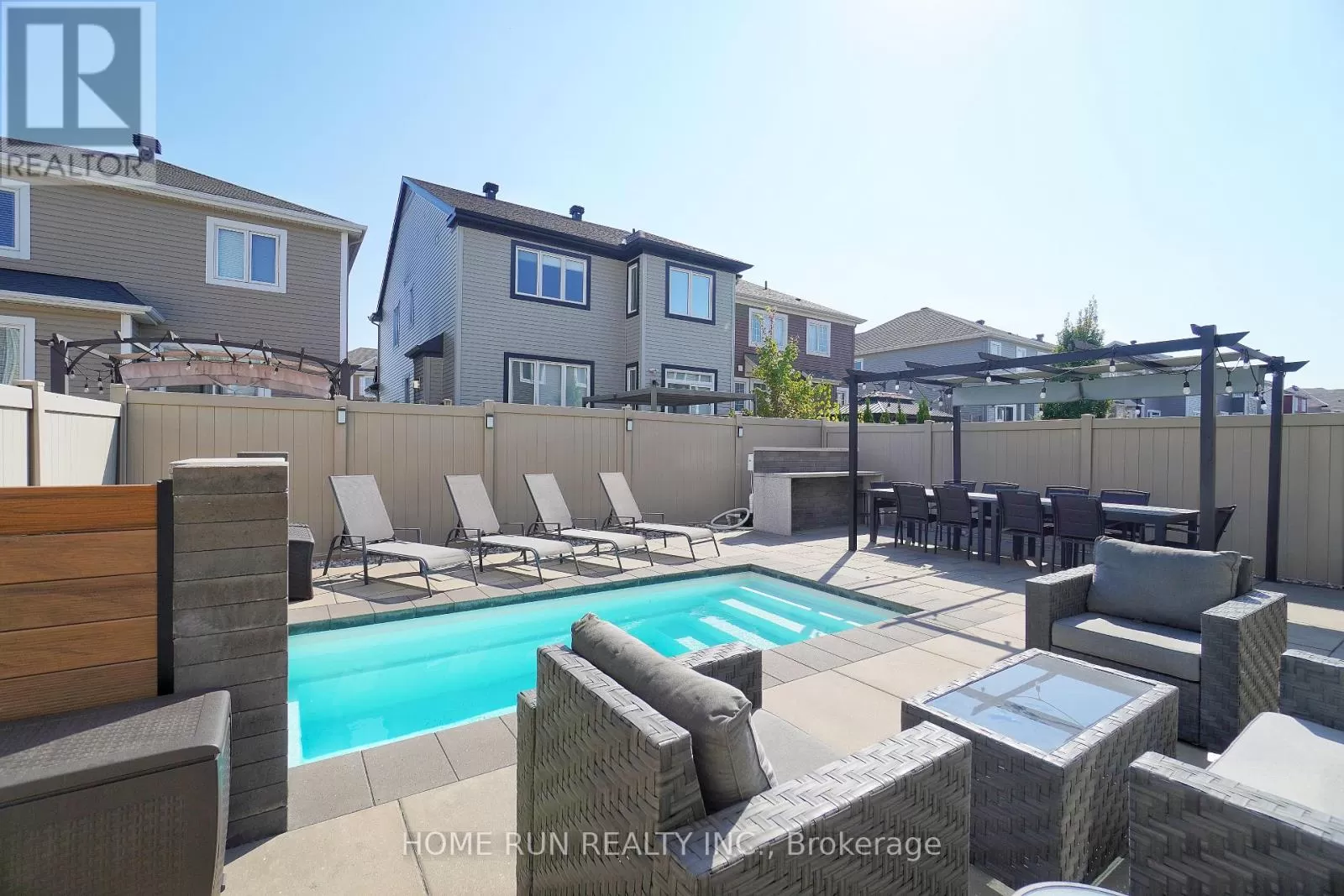 Devario and Fameflower Date Available: NOV 1, Luxurious Fully Landscaped Double Garage Single Home in Half Moon Bay. This ALL-SEASONS PARADISE has a fully fenced + interlocked Backyard Oasis, comes with an incredible Saltwater Pool with Waterfall and LED Lights, Outdoor bar, Stone patio and Pergola. Fully landscaped from front to back, interlocked driveway and front porch with in-ground lightings. Thoughtfully designed open concept floor plan, Hardwood Flooring throughout 2 levels, the main level comes with a welcoming foyer, access leading to the formal dining room and great room with stone wall fireplace. EPIC Kitchen with luxury finishes, rich millwork, quartz counters, built-in appliances (double oven and gas cooktop), oversized centre island, large pantry & breakfast area. Hardwood stairs to the impressive 2nd level, primary bedroom comes with an oversized walk-in closet and dressing room + luxury 4pc ensuite. 2 Proportional bedrooms + full bathroom + laundry room complete the 2nd level. Please include proof of income, credit report and photo ID with rental application. No Pets, No Smokers, No roommates. (id:27476)