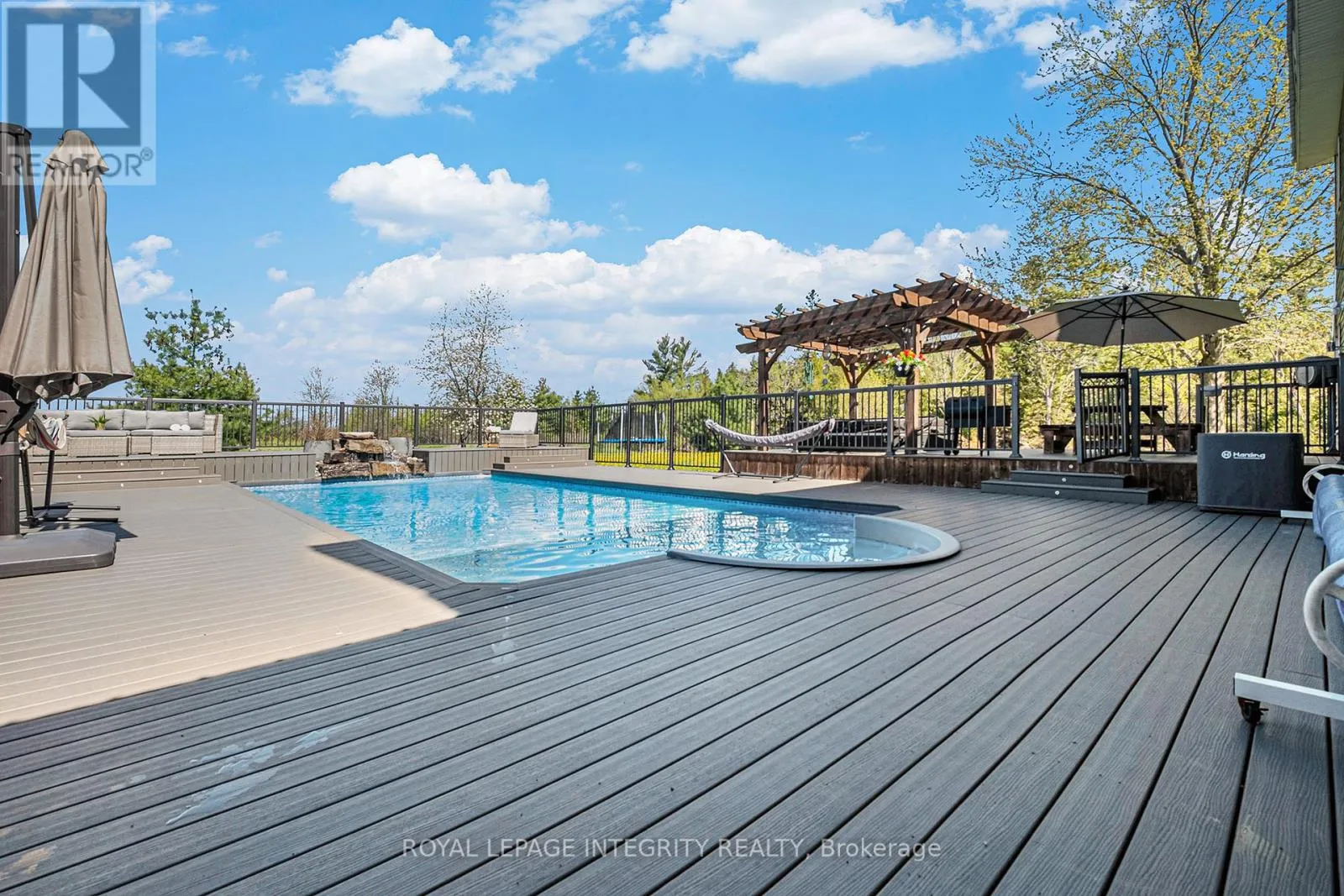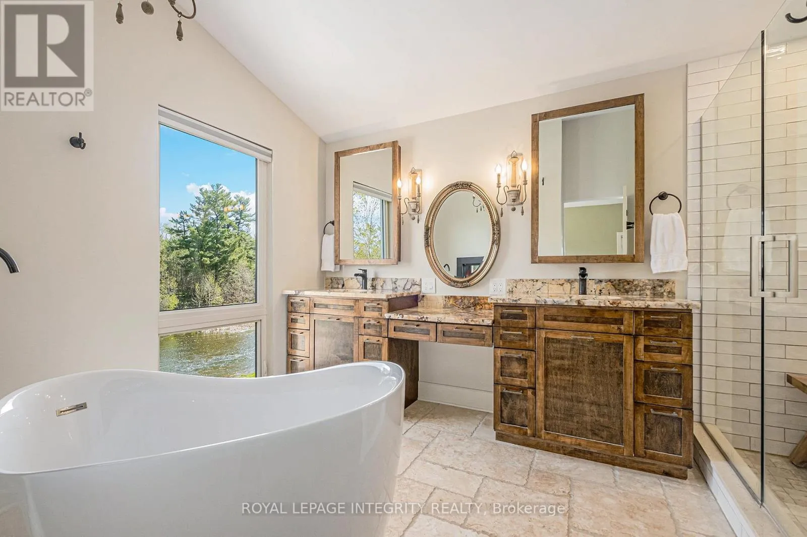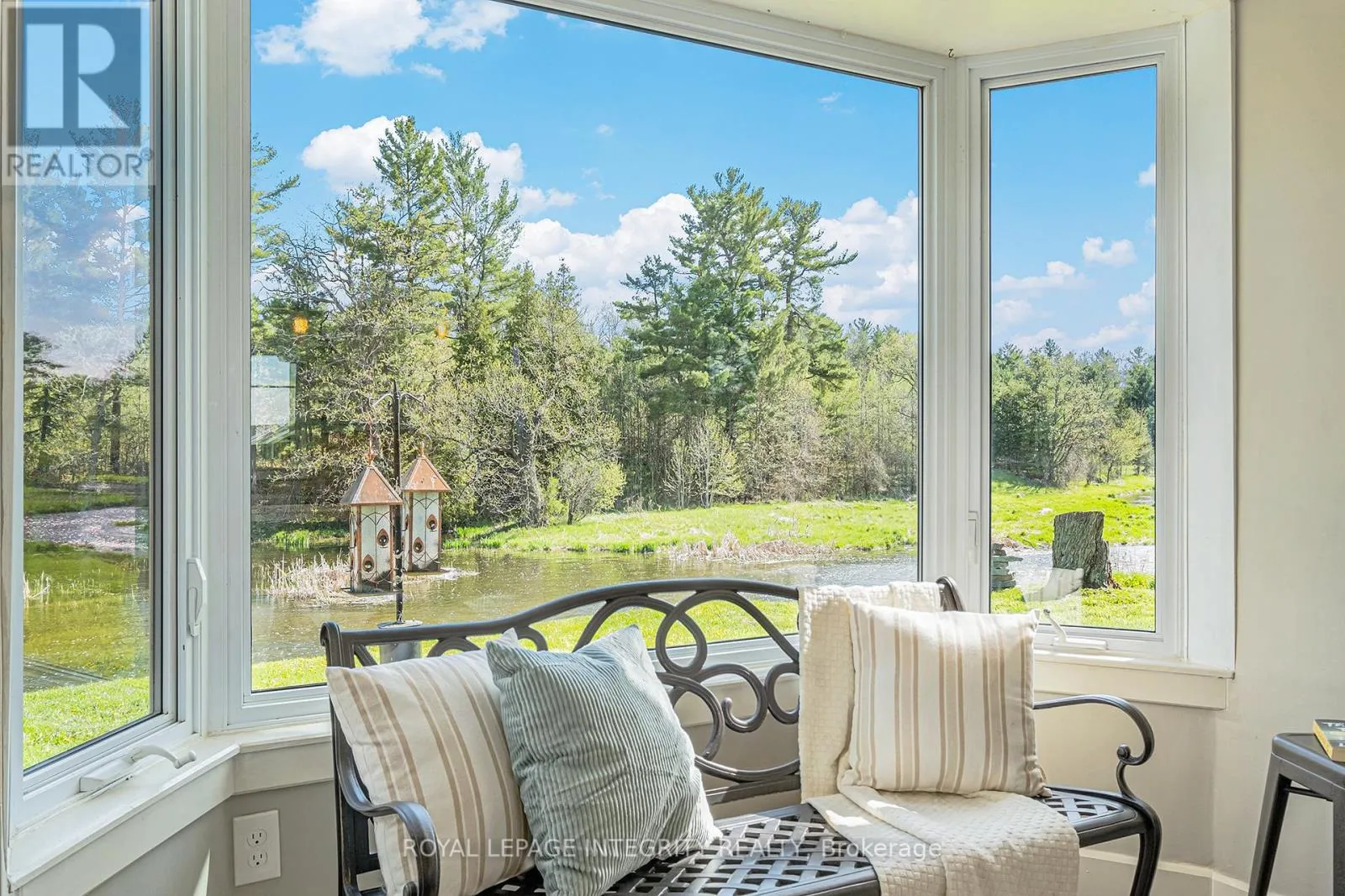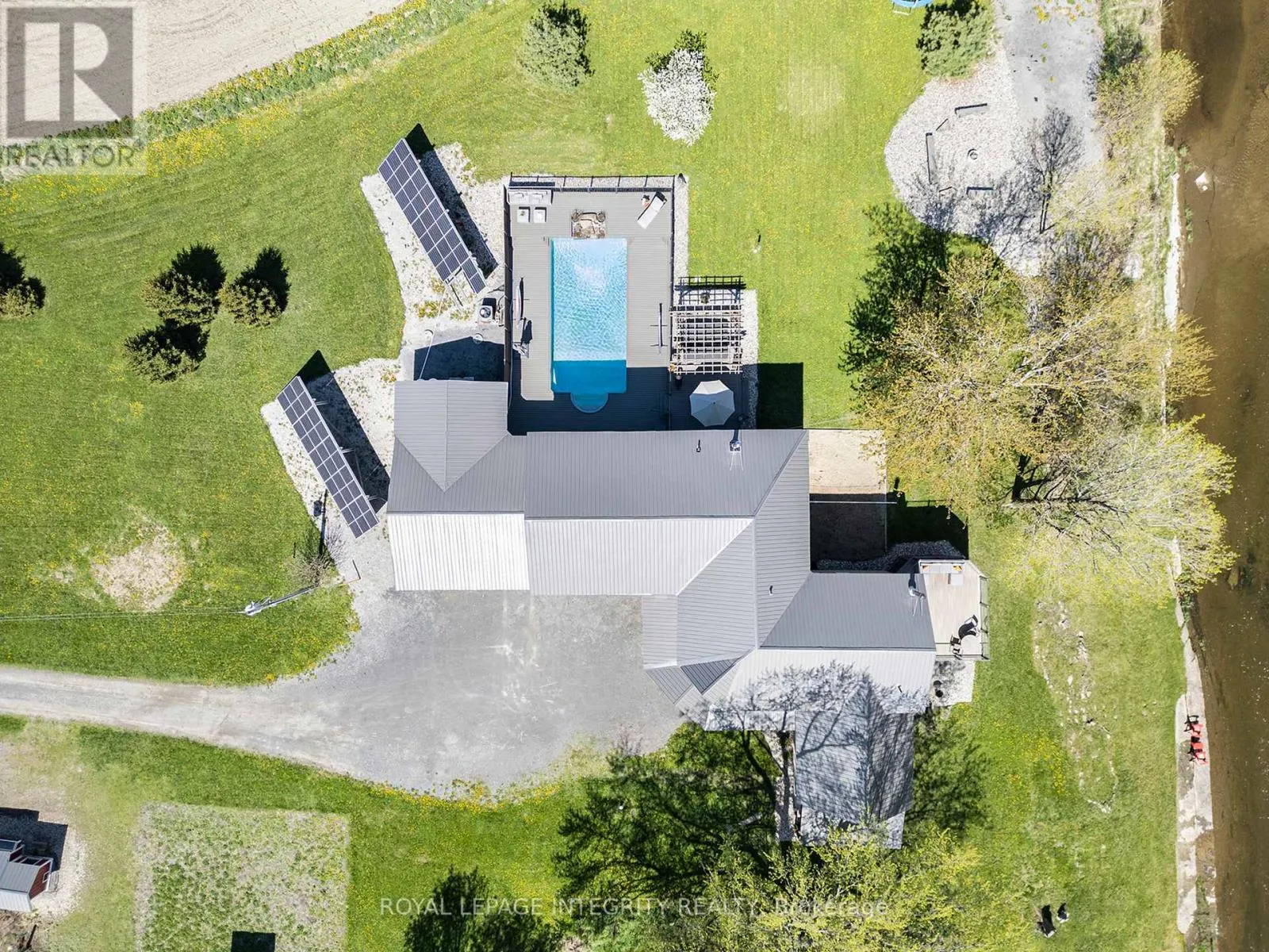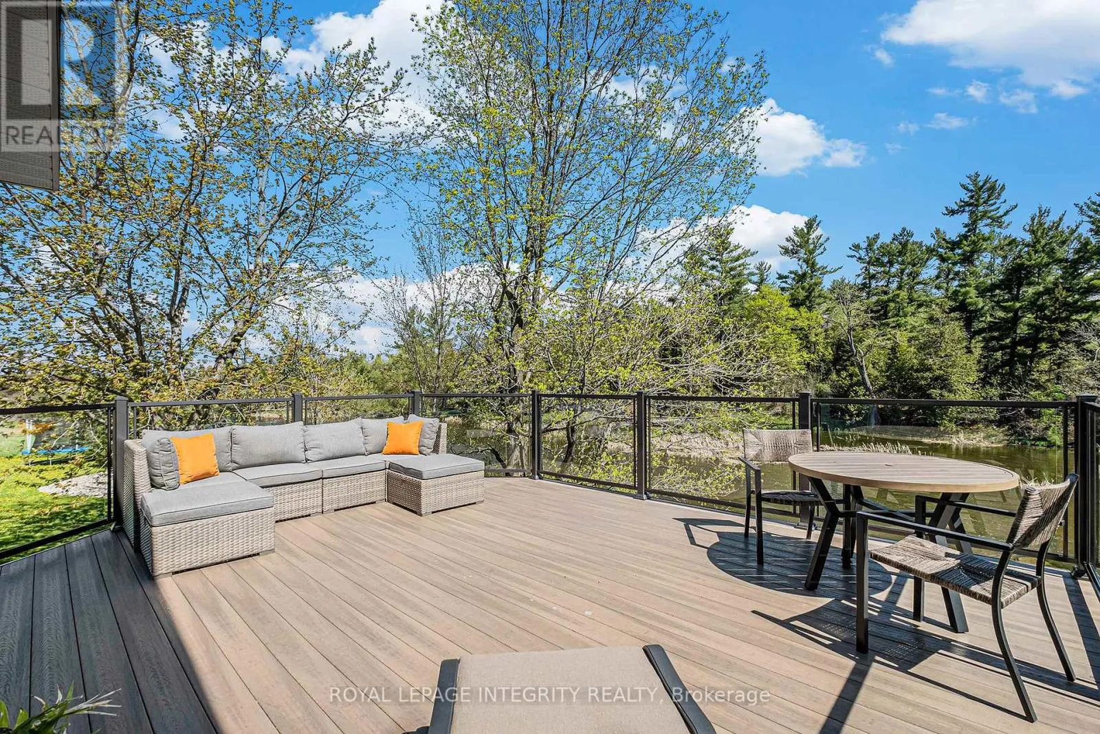 Cross Streets: Carp Road/Galetta Side Road. ** Directions: Heading West on the Trans-Canada/ON 417 W: Take exit 144 for Ottawa 5 toward Ch Carp Rd/Stittsville/Carp. Use the right lane to take the Ottawa 5N/Ch.Carp N/Carp Rd. N ramp to Carp. Merge onto Carp Rd/Route 5. Your perfect escape awaits! Rebuilt in 2021 and set on nearly 5 private acres, this custom-designed home offers the ideal balance of comfort and restorative natural beauty, designed for those who work hard and need a space to truly unwind. Inside, the heart of the home is a soaring, open-concept main level centered around a chefs kitchen with vaulted ceilings and a massive island - perfect for hosting friends or relaxing with a quiet coffee while gazing out over the river. Every space is designed to maximize views and connection to the outdoors, with oversized windows and seamless transitions between inside and out. Thoughtful details like a preserved wall from the original 100+ year-old farmhouse bring warmth and character to the modern design, grounding you in a sense of place and history. Step into the large screened-in porch and exhale, listen to birdsong, watch the heron drift by, or just enjoy the stillness. Outside, the in-ground pool and hot tub offer a spa-like experience, and the riverside firepit becomes the perfect evening ritual after a long day. Upstairs, six versatile bedrooms provide ample room for guests, home offices, or creative studios. The primary suite is a private retreat featuring a freestanding tub, walk-in glass shower, and its own patio with stunning river views - an ideal place to begin or end your day in peace. The finished basement extends your living space with a media room, home gym, and a fun, custom play area for children or visiting family. The triple-car garage and oversized mudroom keep life organized and efficient. Plus, owned solar panels help reduce your environmental footprint and your energy bills. If you've been craving a quiet, inspiring place to recharge this one-of-a-kind property offers the space, privacy, and calm you've been looking for. Just unpack and breathe. (id:27476)